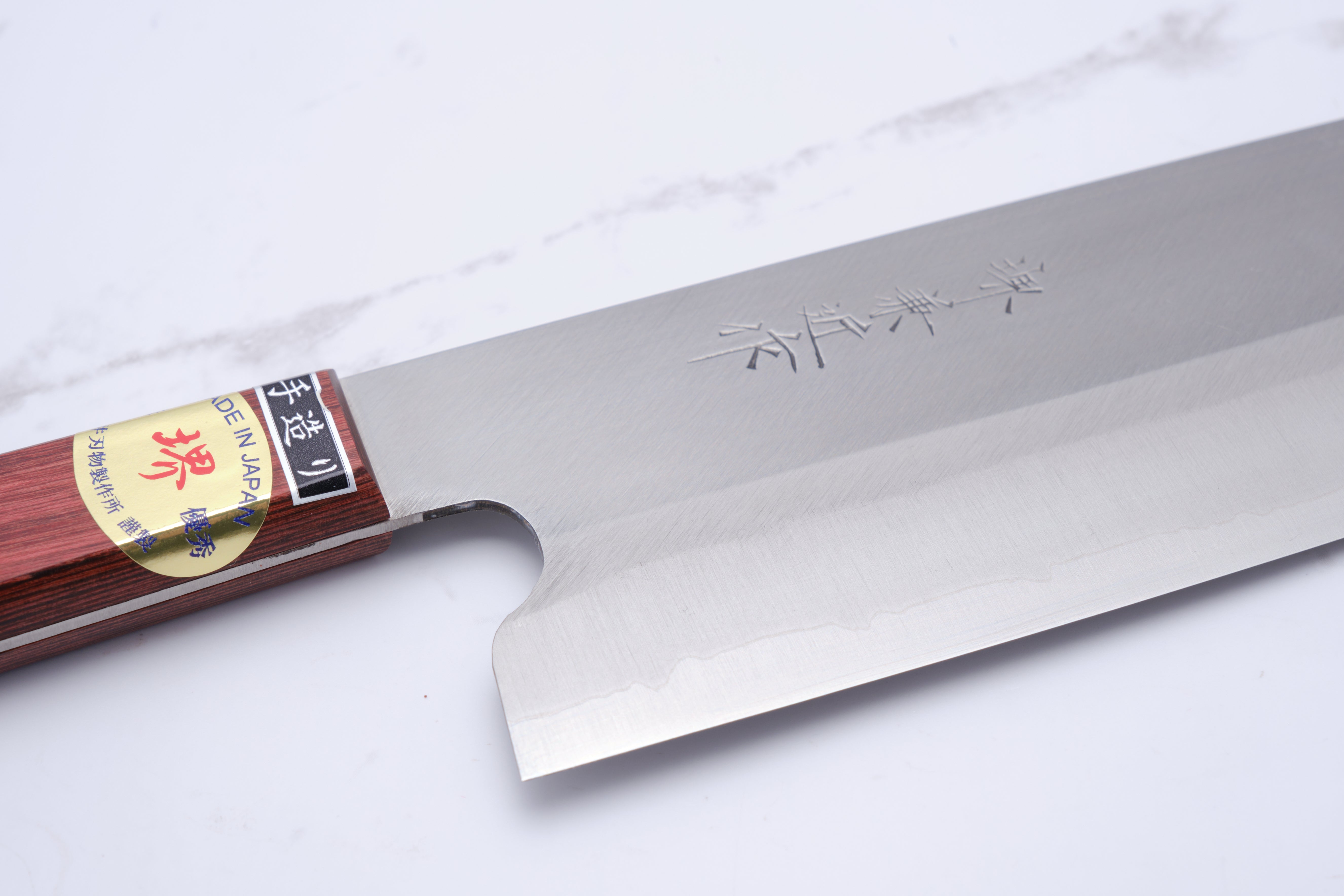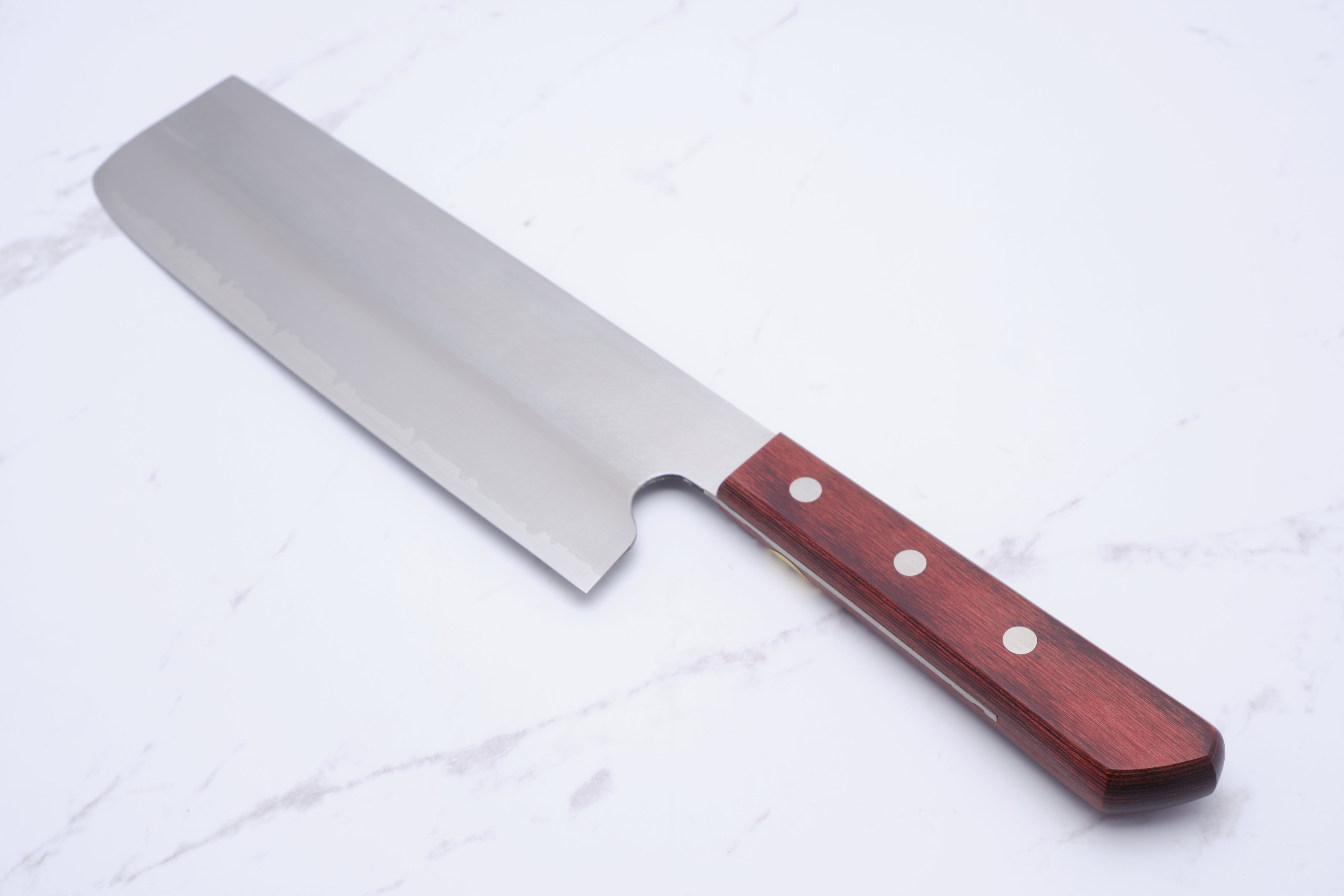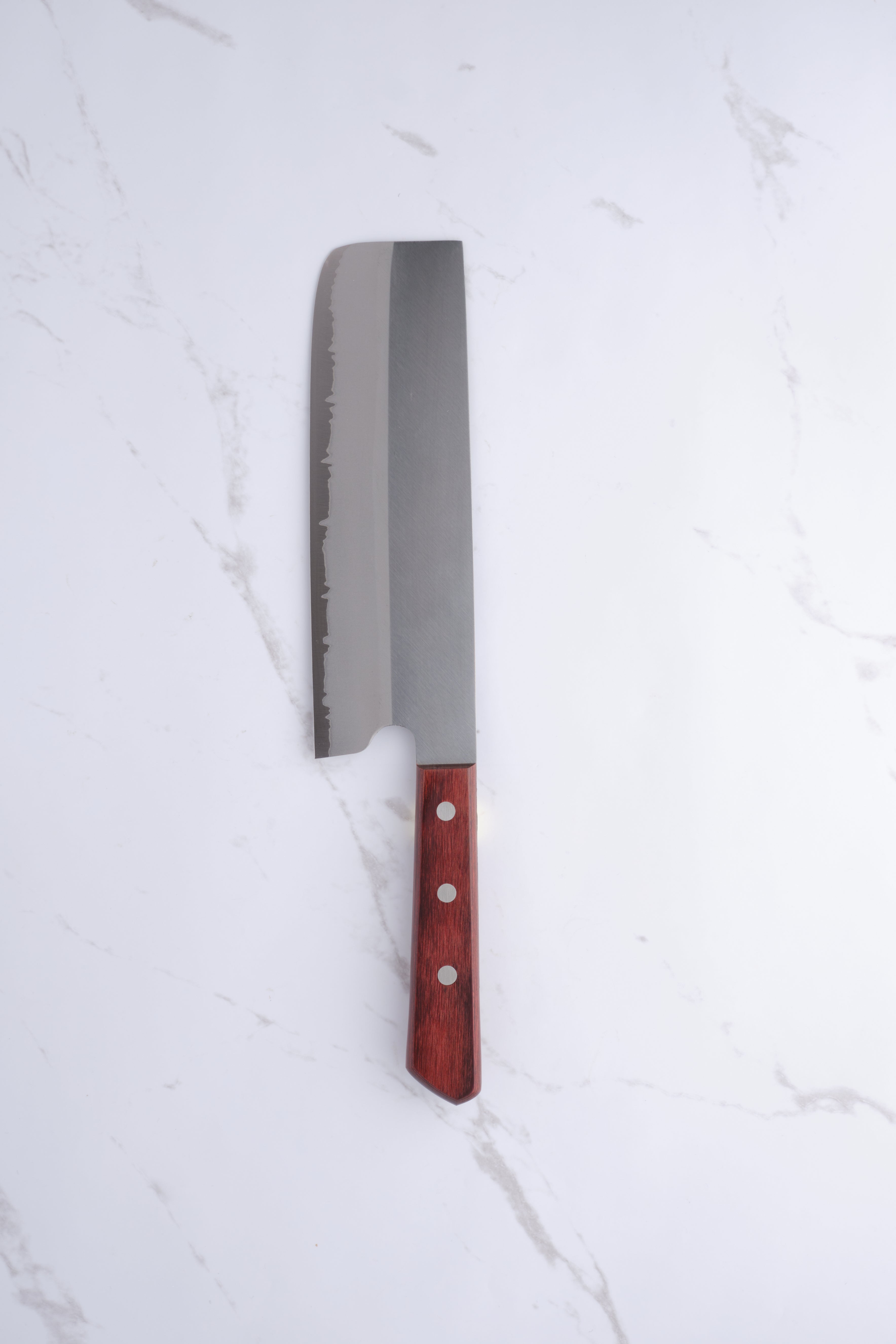 Fuji san calls this knife a Sobakiri, which is used to cut noodles. But due to the knife's thin grind, it can also be used as a nakiri.
