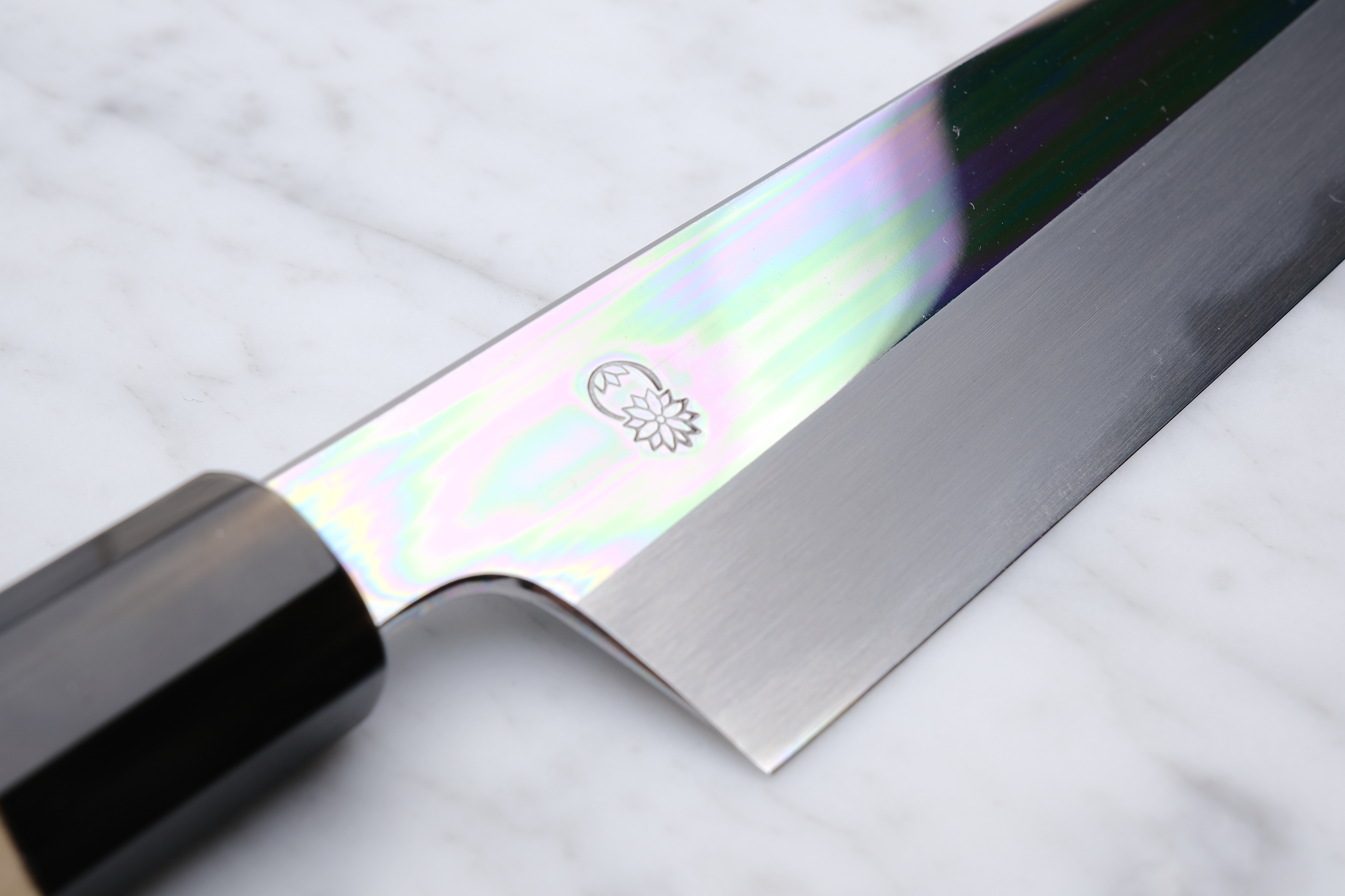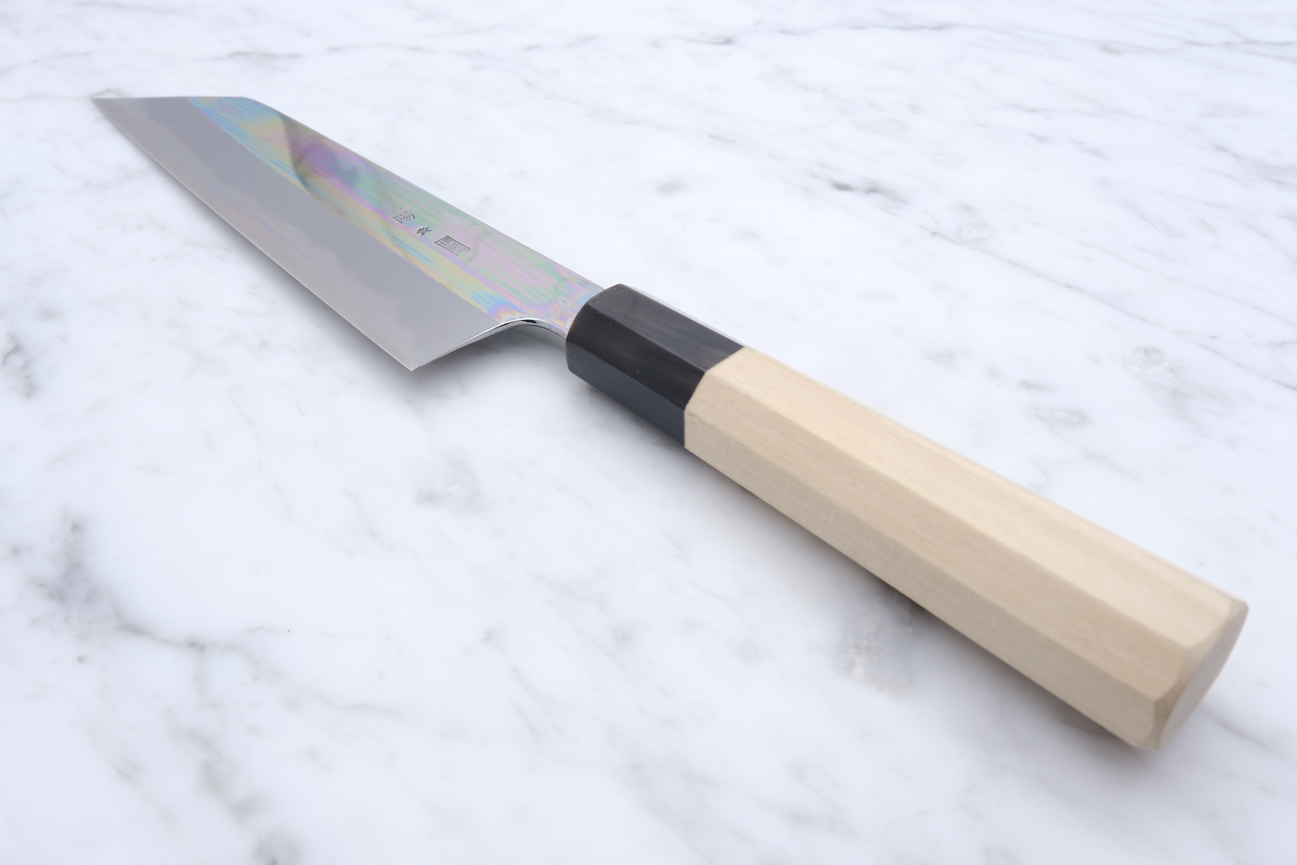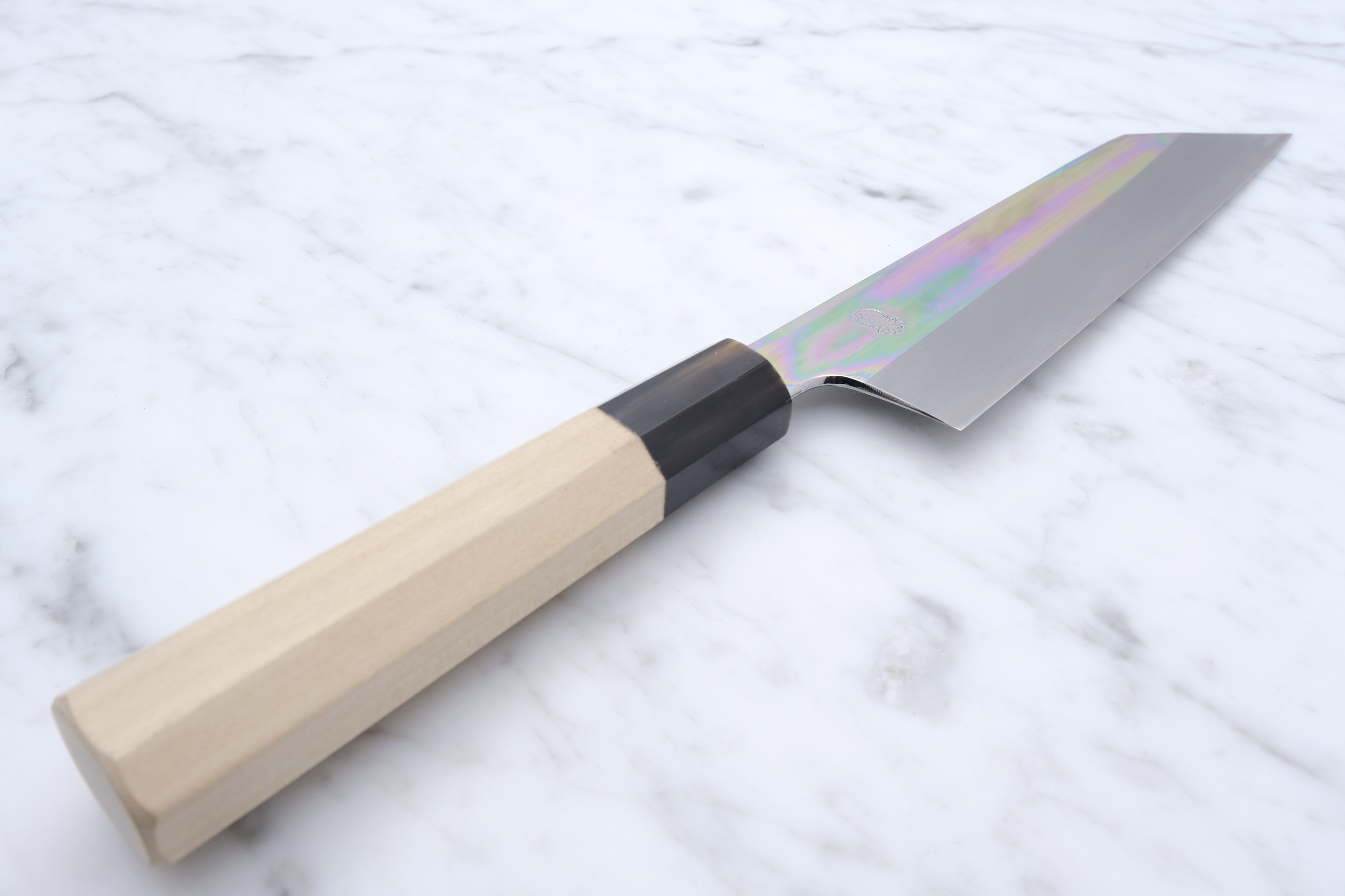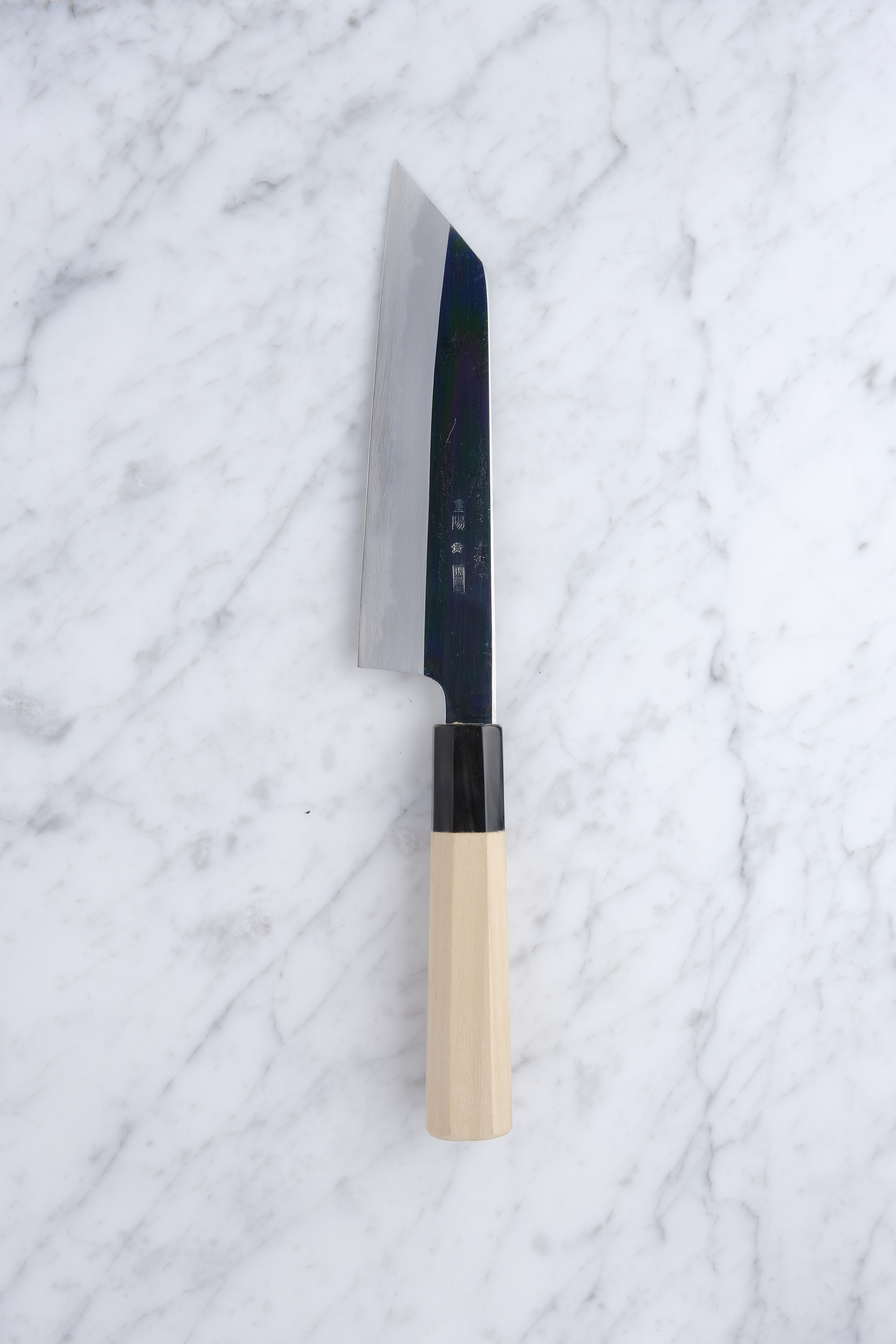 The Choyo series is forged by the legendary Yoshikazu Tanaka, and sharpened by the equally renowned sharpener, Morihiro. An iconic partnership that each brings something truly special to the table. An incredible hardening on the blade from the experienced blacksmith, and fantastic sharpening work from Morihiro-san. Morihiro-san makes the blade appear with a fantastic mirror polish on the top of the blade, and further down starts his characteristic Wide-bevel grind.