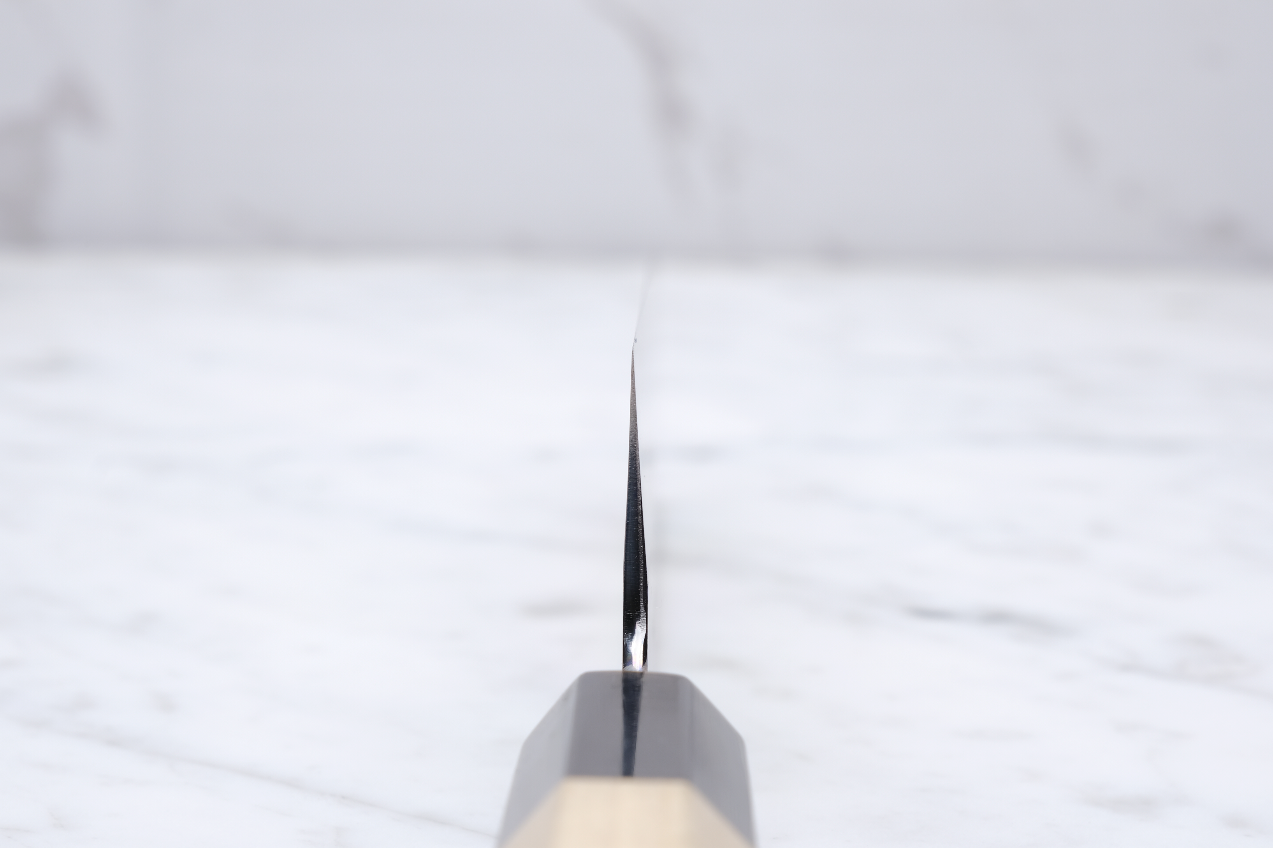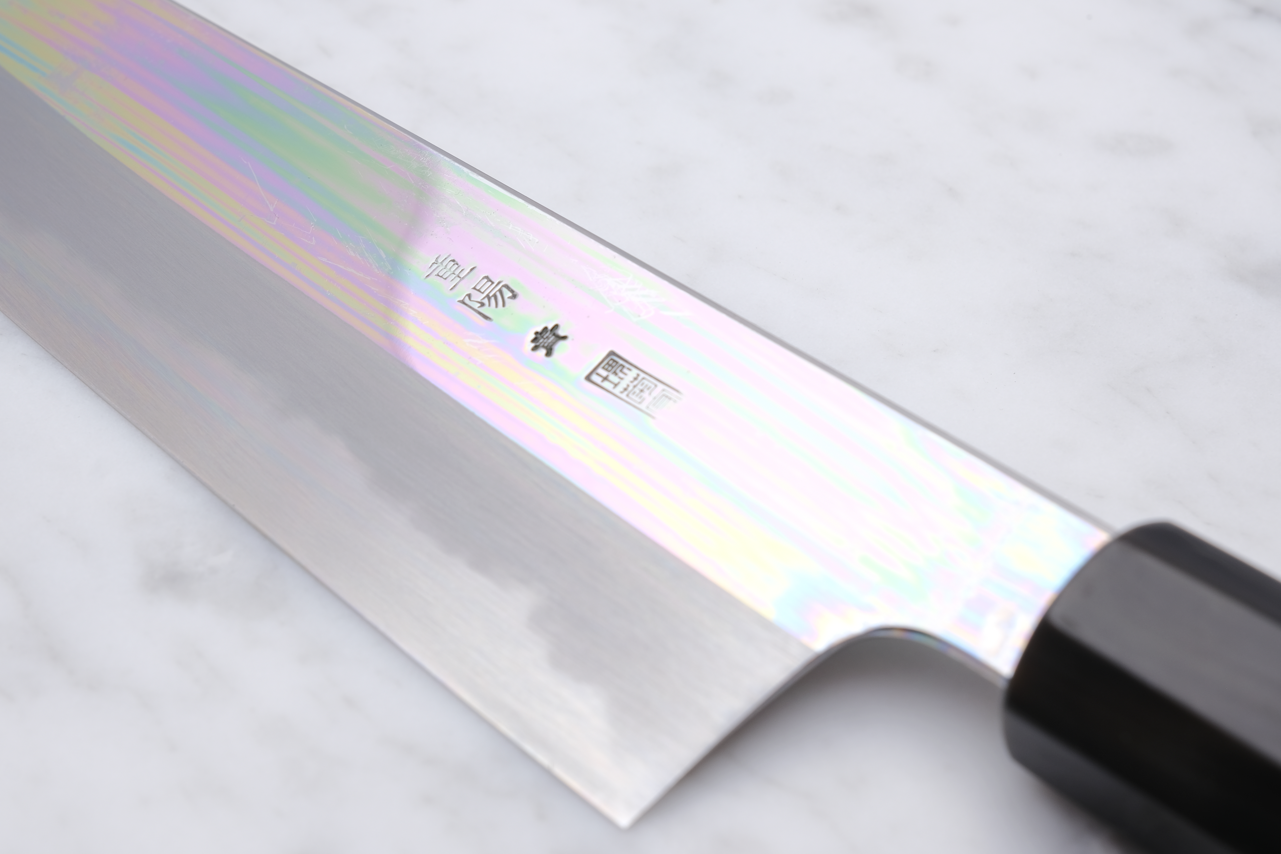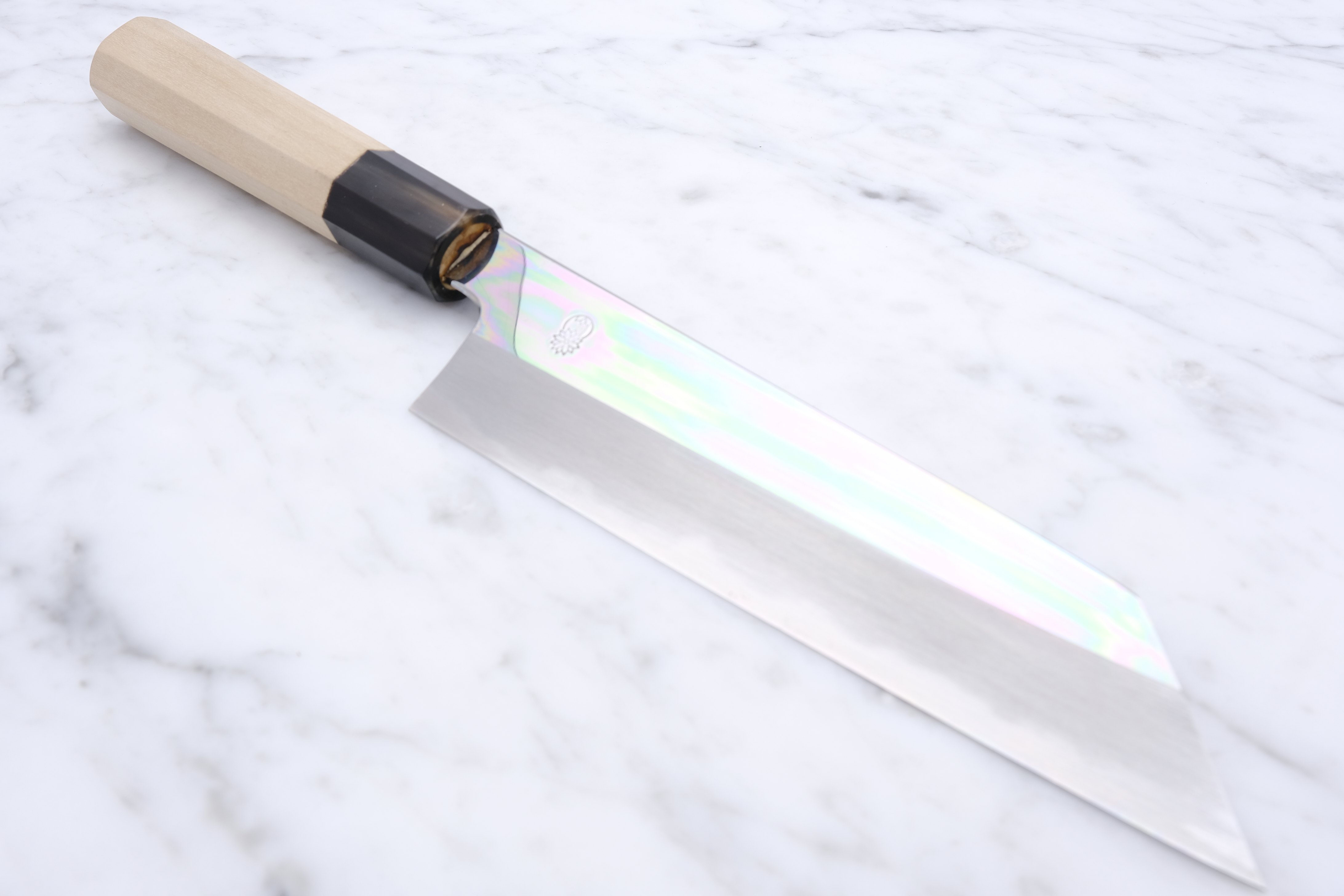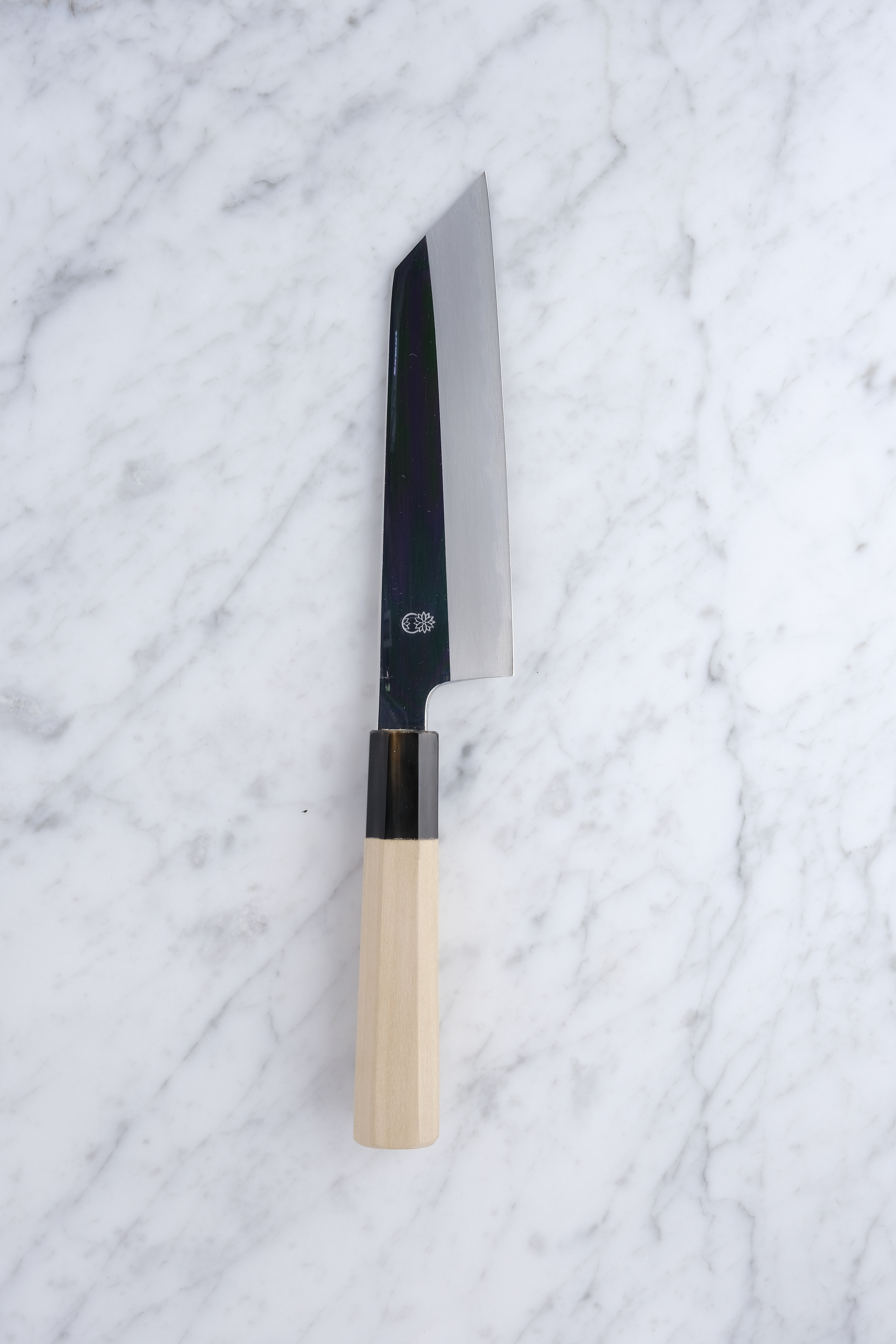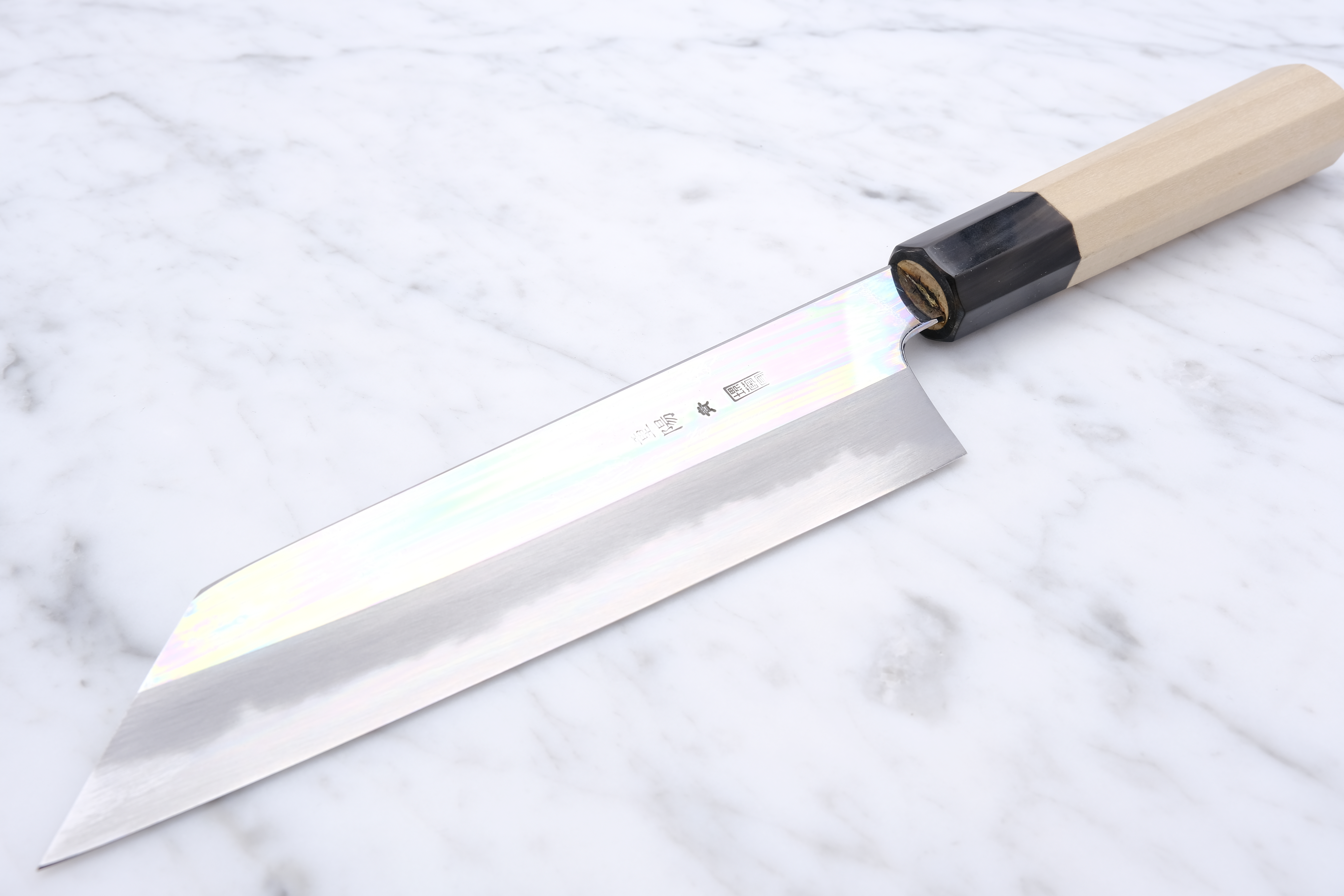The Choyo series is forged by the legendary Yoshikazu Tanaka, and sharpened by the equally renowned sharpener, Morihiro. An iconic partnership that each brings something truly special to the table. An incredible hardening on the blade from the experienced blacksmith, and fantastic sharpening work from Morihiro-san. Morihiro-san makes the blade appear with a fantastic mirror polish on the top of the blade, and further down starts his characteristic Wide-bevel grind.
