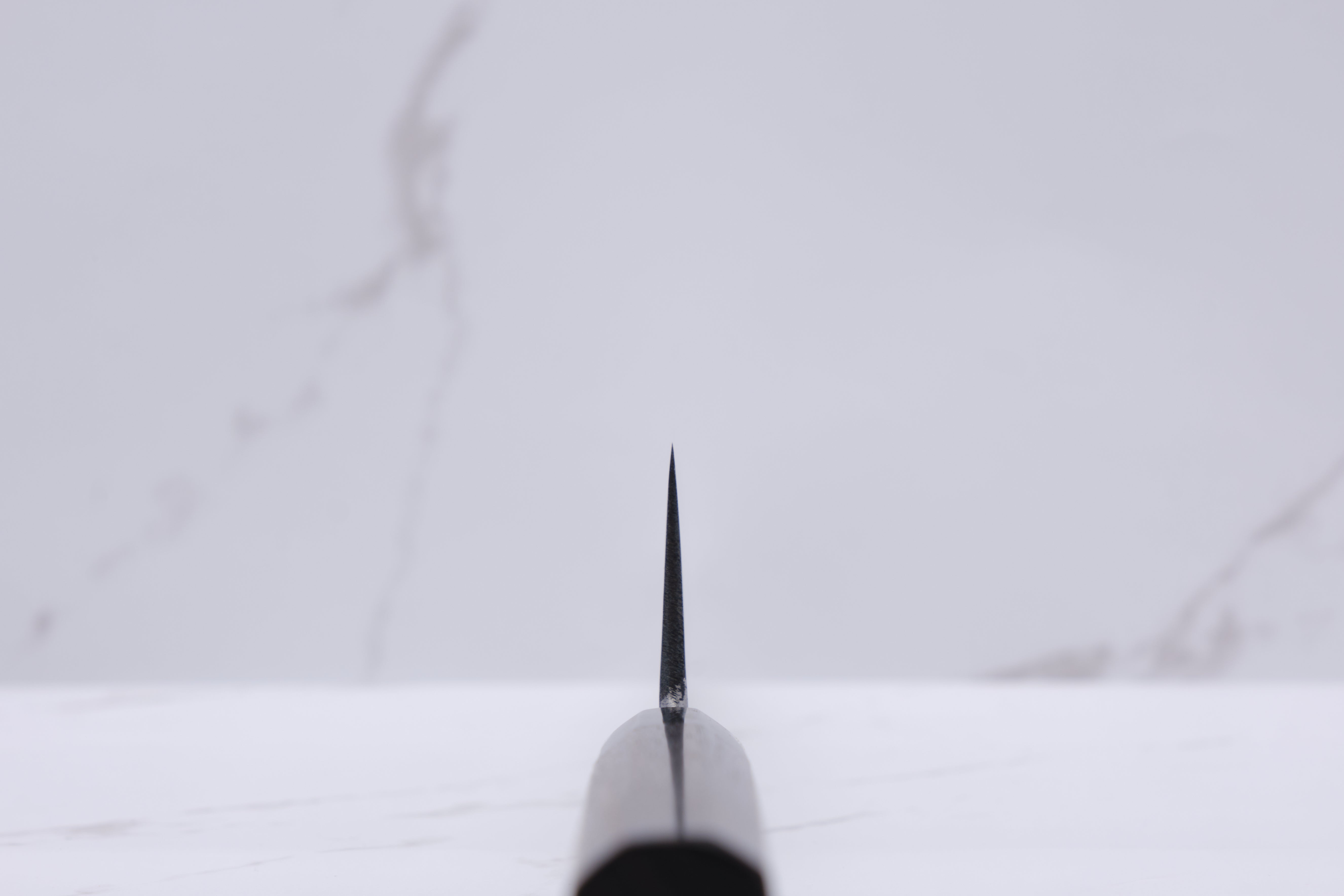 The Sasuke family has been making knives in Sakai since 1867, and are some of the most handmade you can get. In addition to making knives, he is also world-renowned for his bonsai scissors, and is among other things featured in the video on YouTube "Why Bonsai Scissors can cost 26,000 dollars". In the workshop, it is only Sasuske himself and his apprentice who are responsible for all the work. They laminate their own steel, forge it, grind it, and make handles. The sharpening of these knives is also completely unique, as they taper like a samurai sword, where they are thicker at the shinogi and thinner at the back. This gives them a fantastic cutting ability not found in many other knives.
