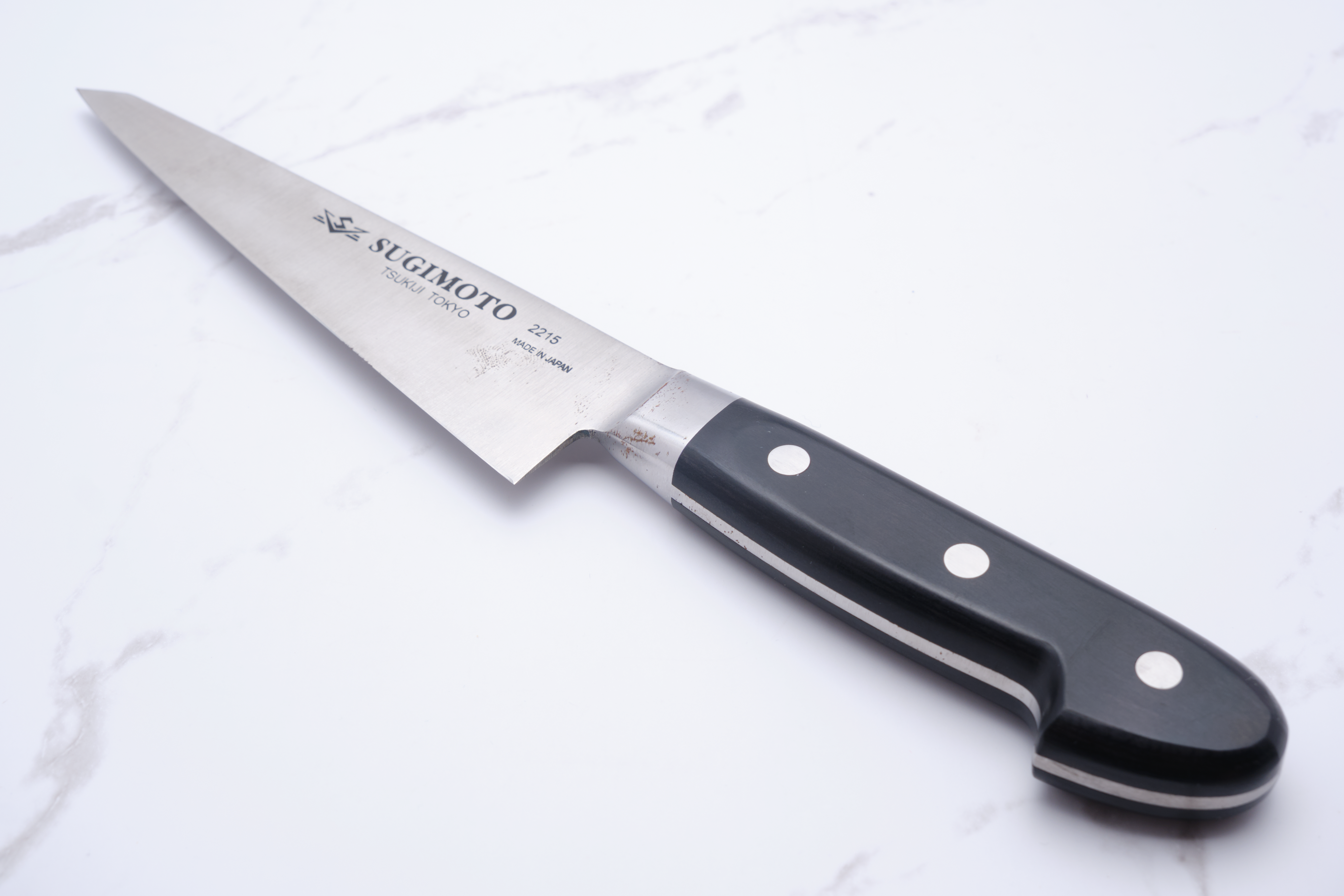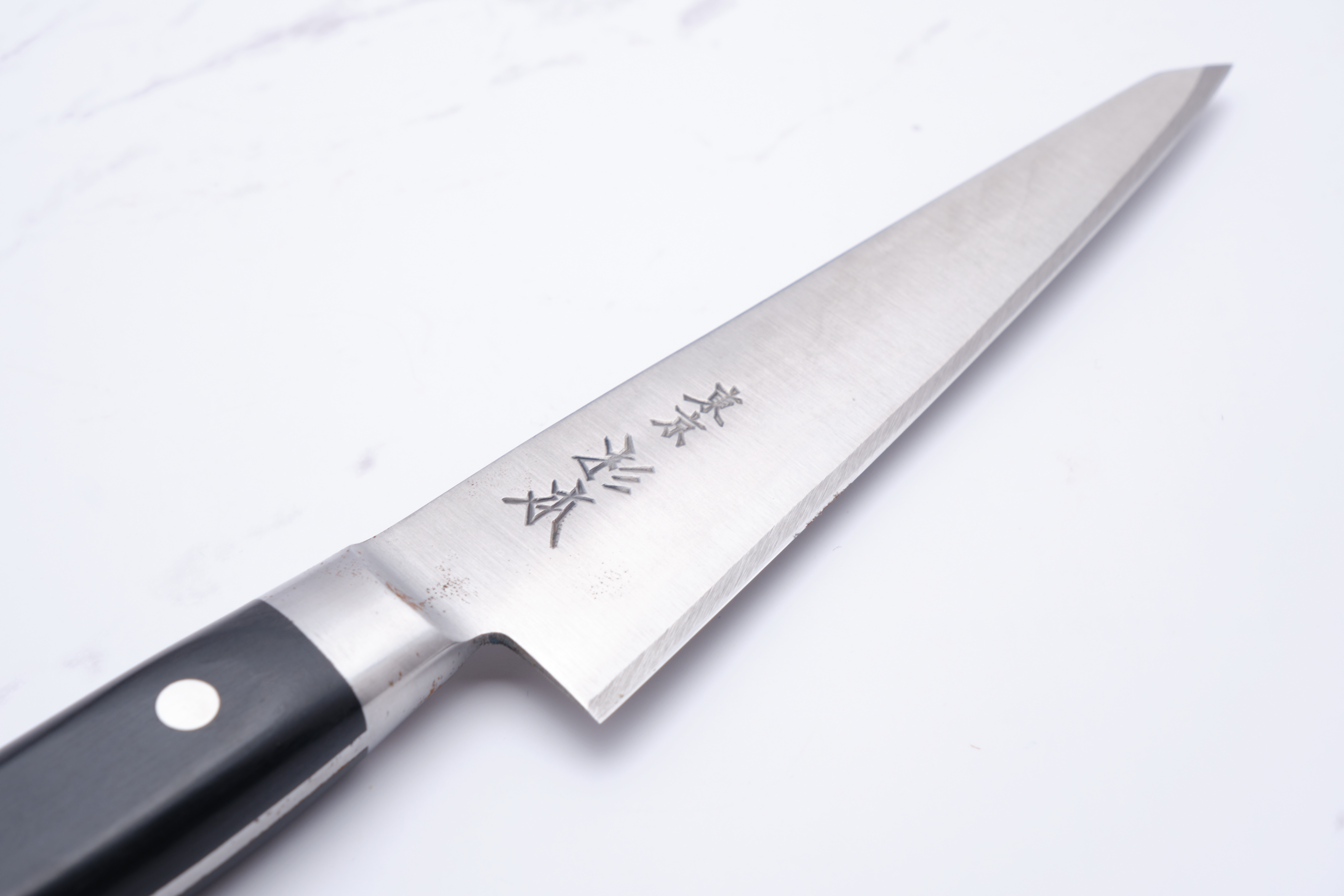 Sugimoto does not state the specific steel type of the HM series, but describes the steel as being of high purity and the consequent risk of rust - therefore expect a knife that behaves like the shirogami one. It is delicate and will patina very easily.