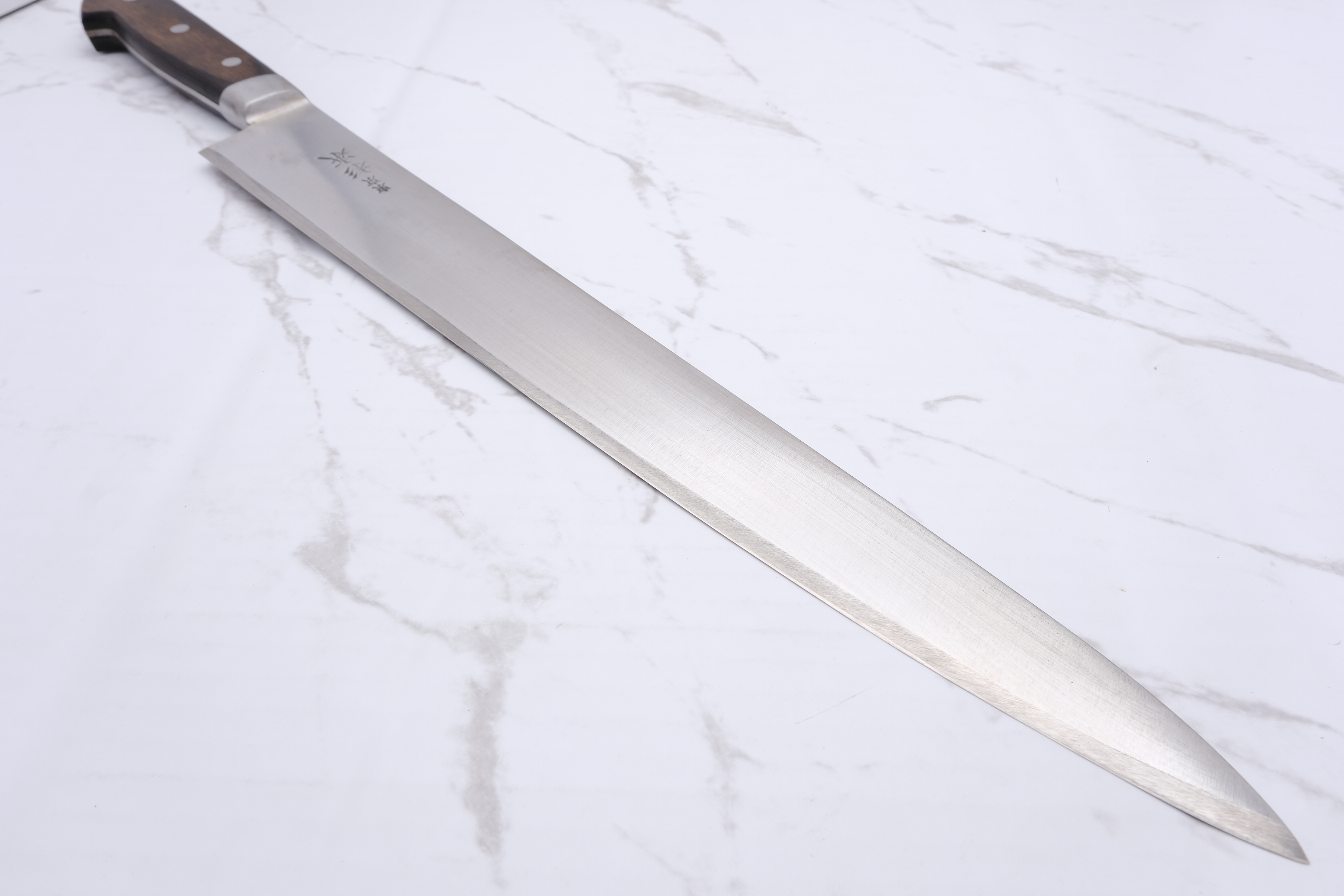 This knife is a slicer, which is also popularly just called a chef's knife. This is 36 cm, and it is used to cut the large roast for or for ham or smoked salmon.