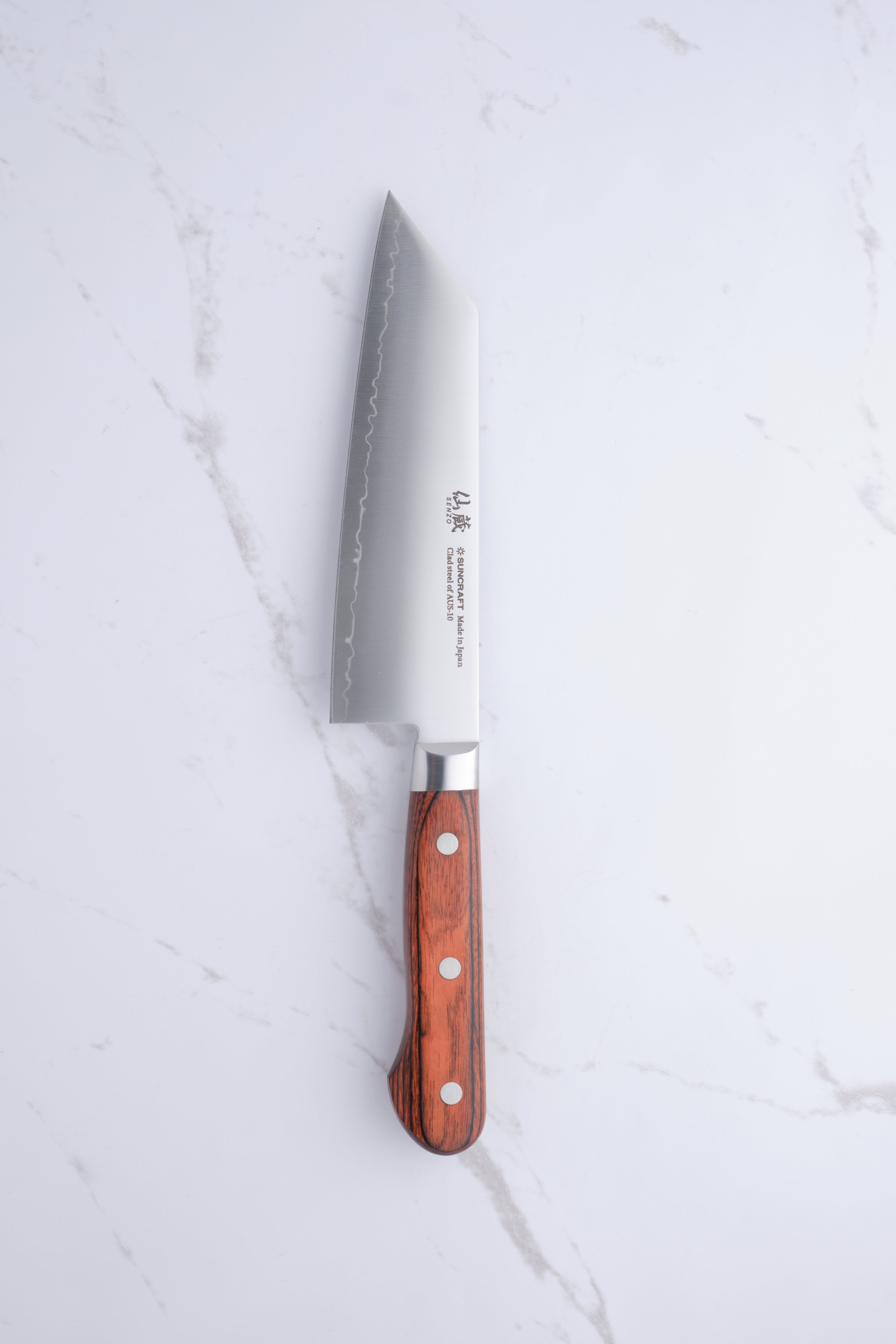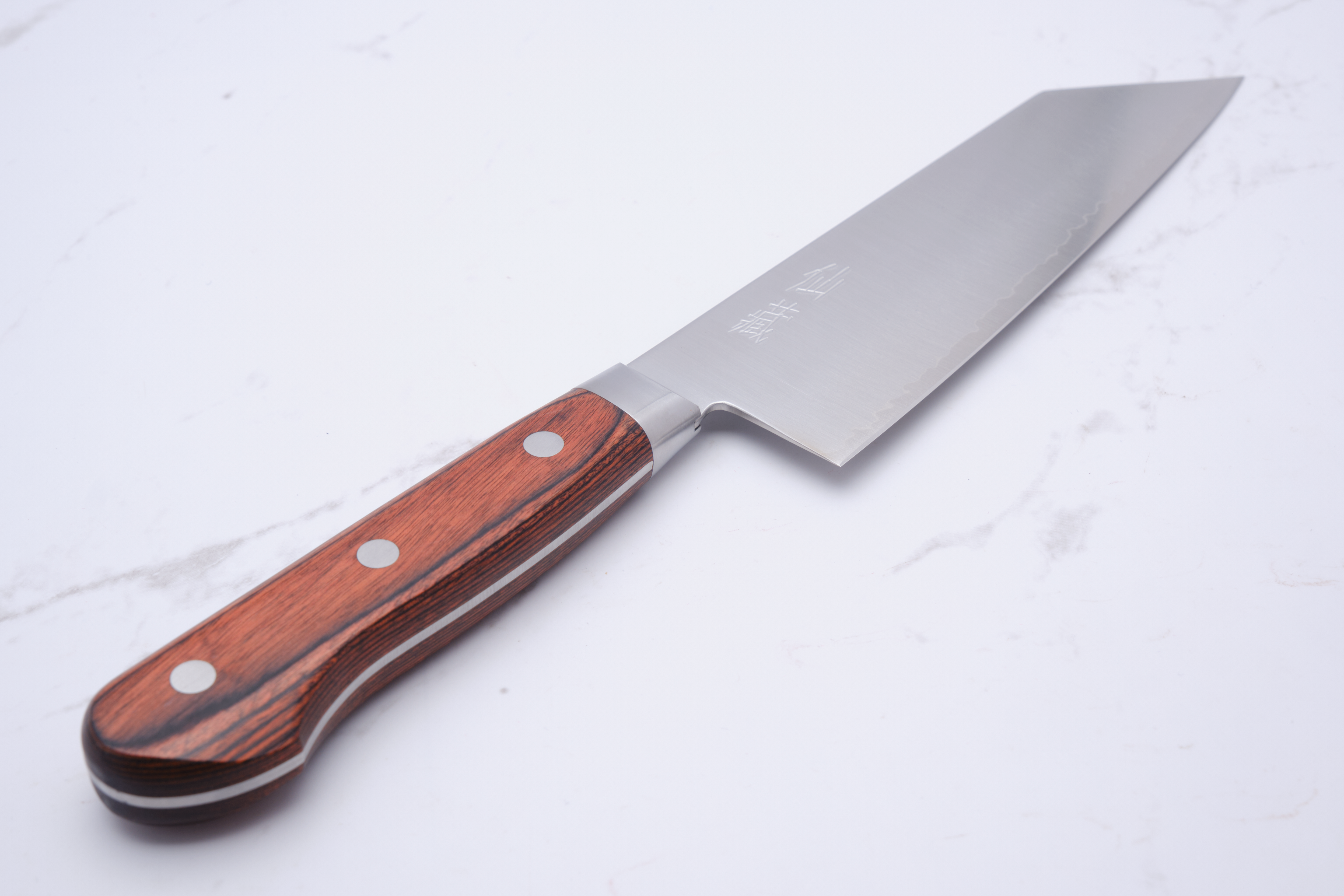 The knife here is a 165mm Bunka made in 3 layers, with respectively AUS 10 in the core and 2 stainless outer layers. AUS 10 is a good stainless steel type that has the characteristics of being easy to maintain, staying sharp for a long time, and easy to sharpen.