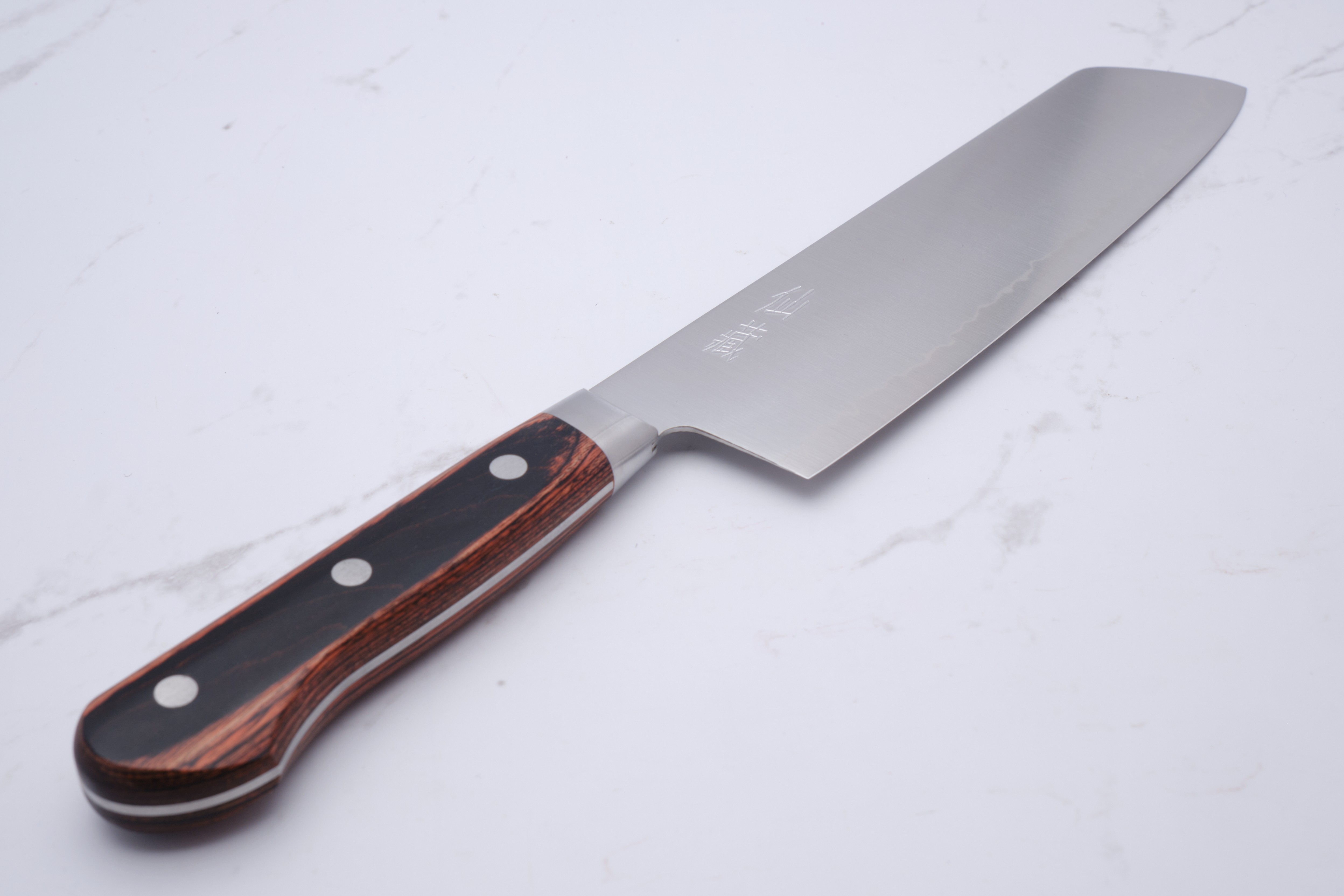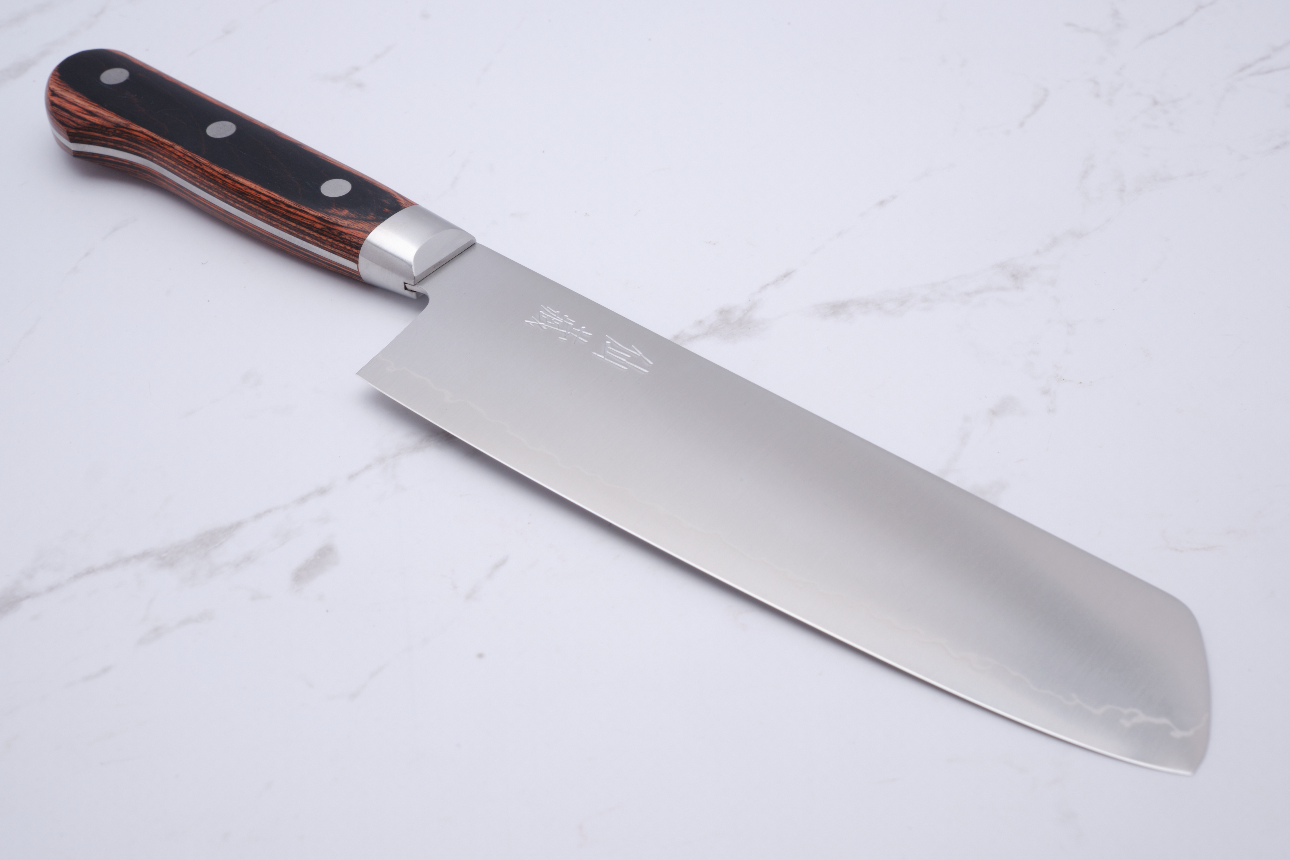 The knife here is a 180mm Nakiri made in 3 layers, with respectively AUS 10 in the core and 2 stainless outer layers. AUS 10 is a good stainless steel type that has the characteristics of being easy to maintain, staying sharp for a long time, and easy to sharpen.