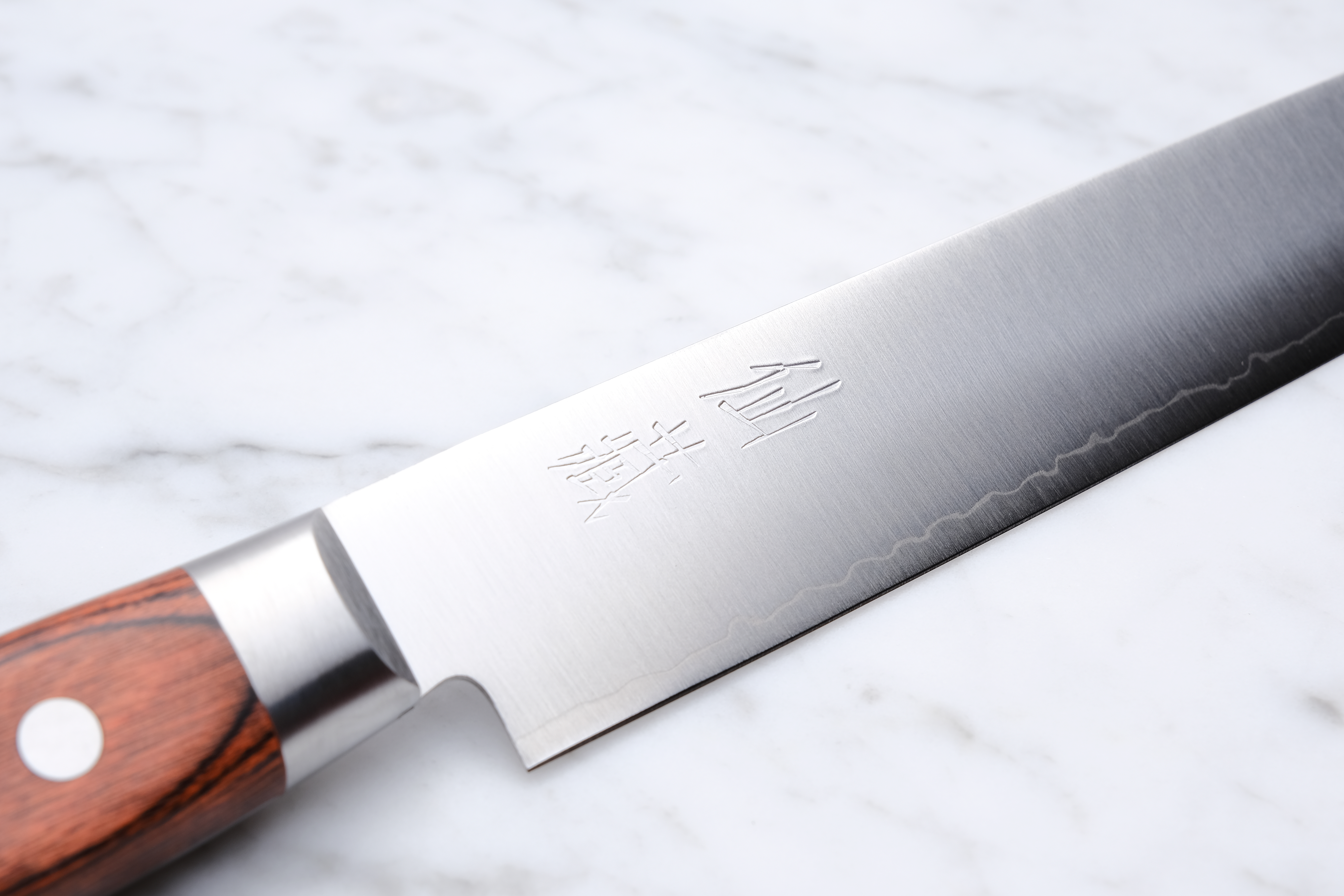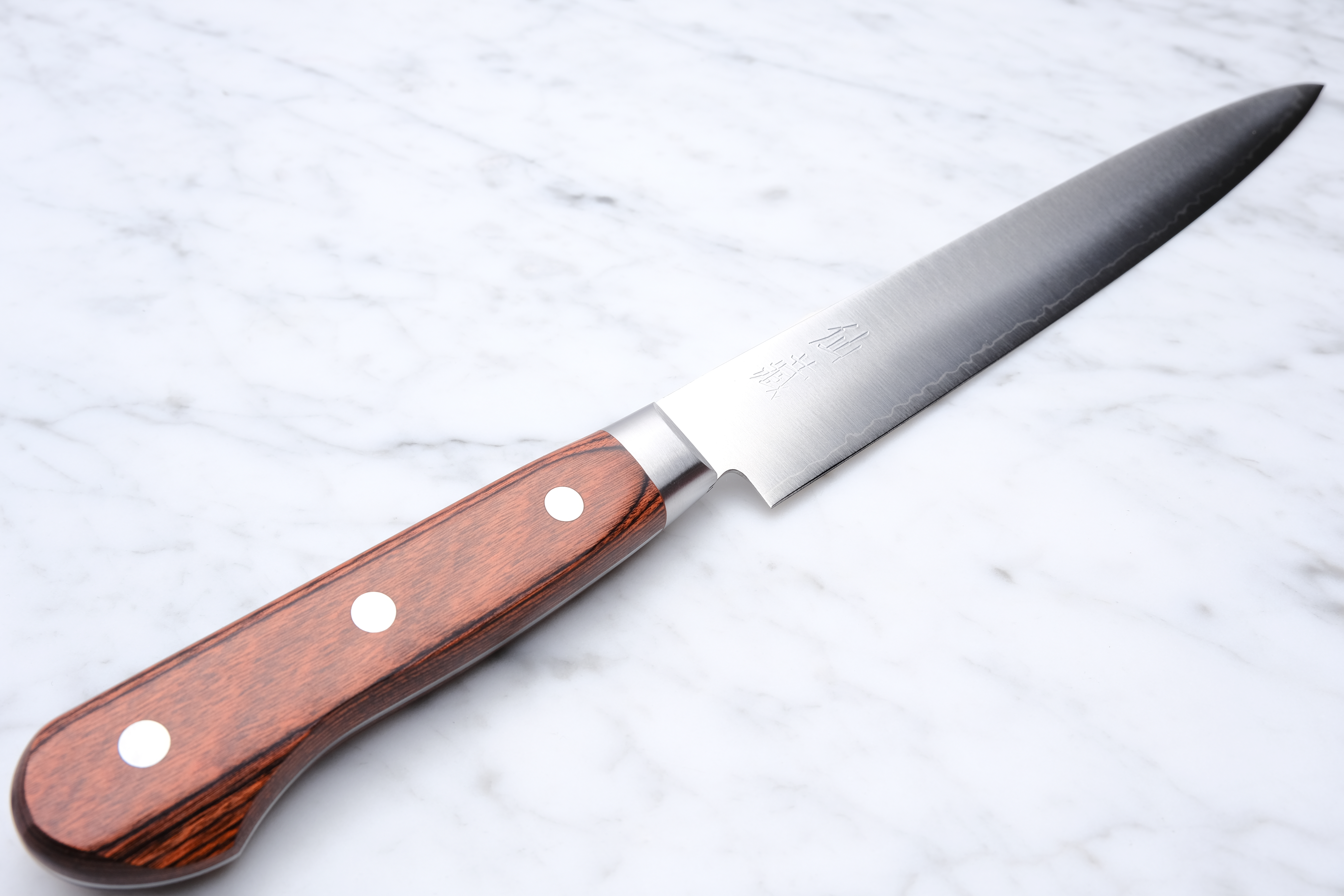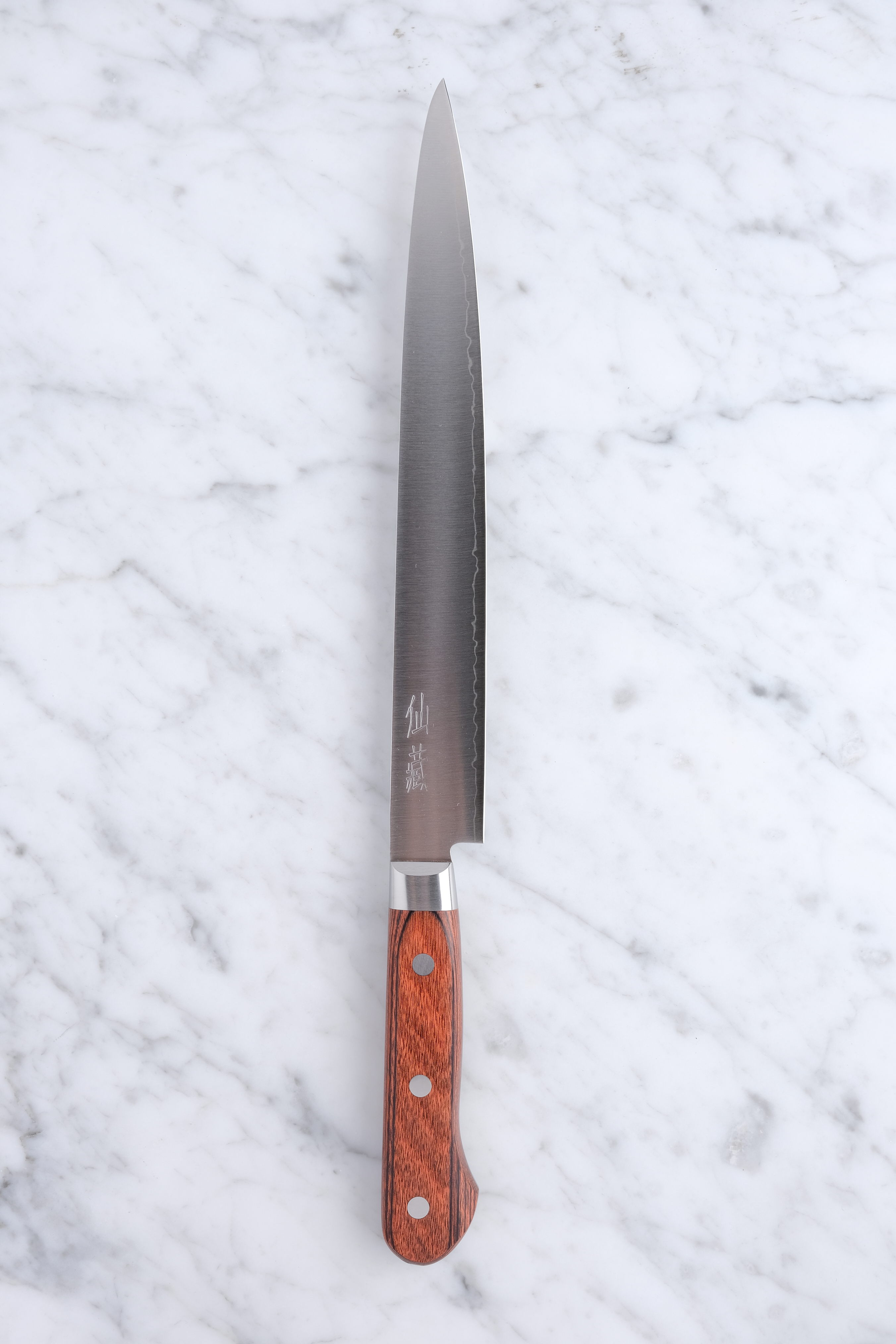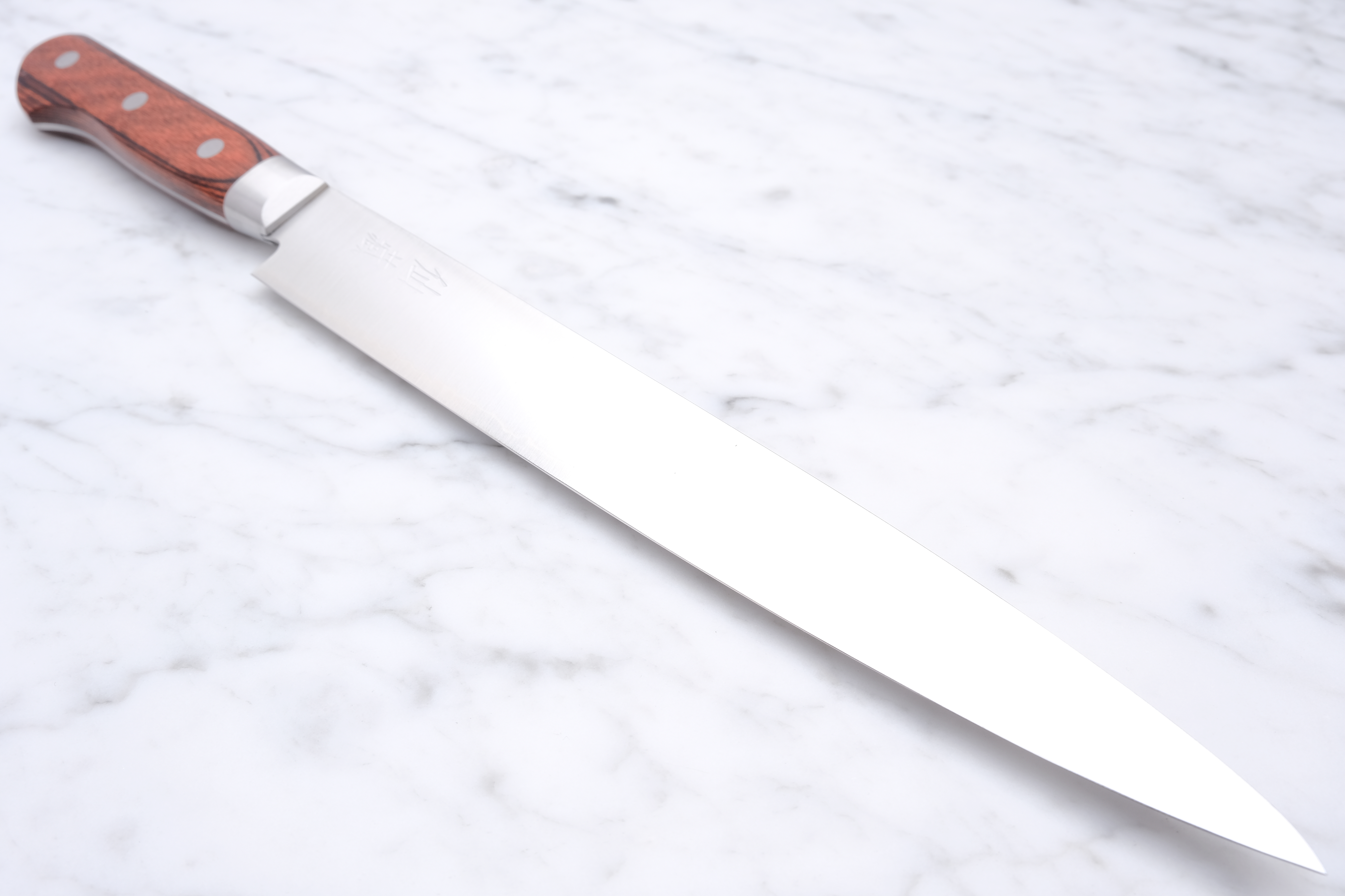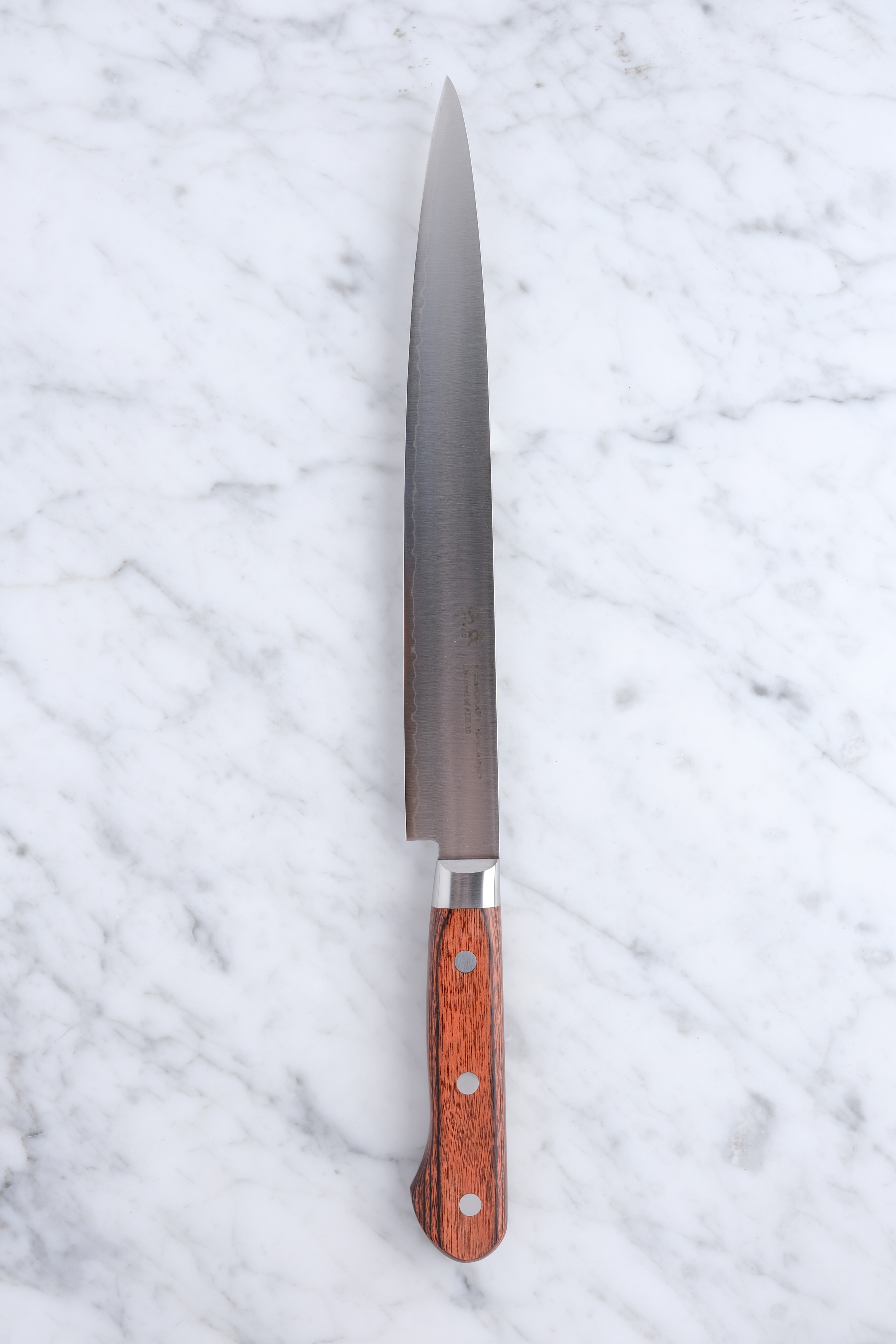 The knife here is a 240mm Slicer made in 1 layer AUS 10.