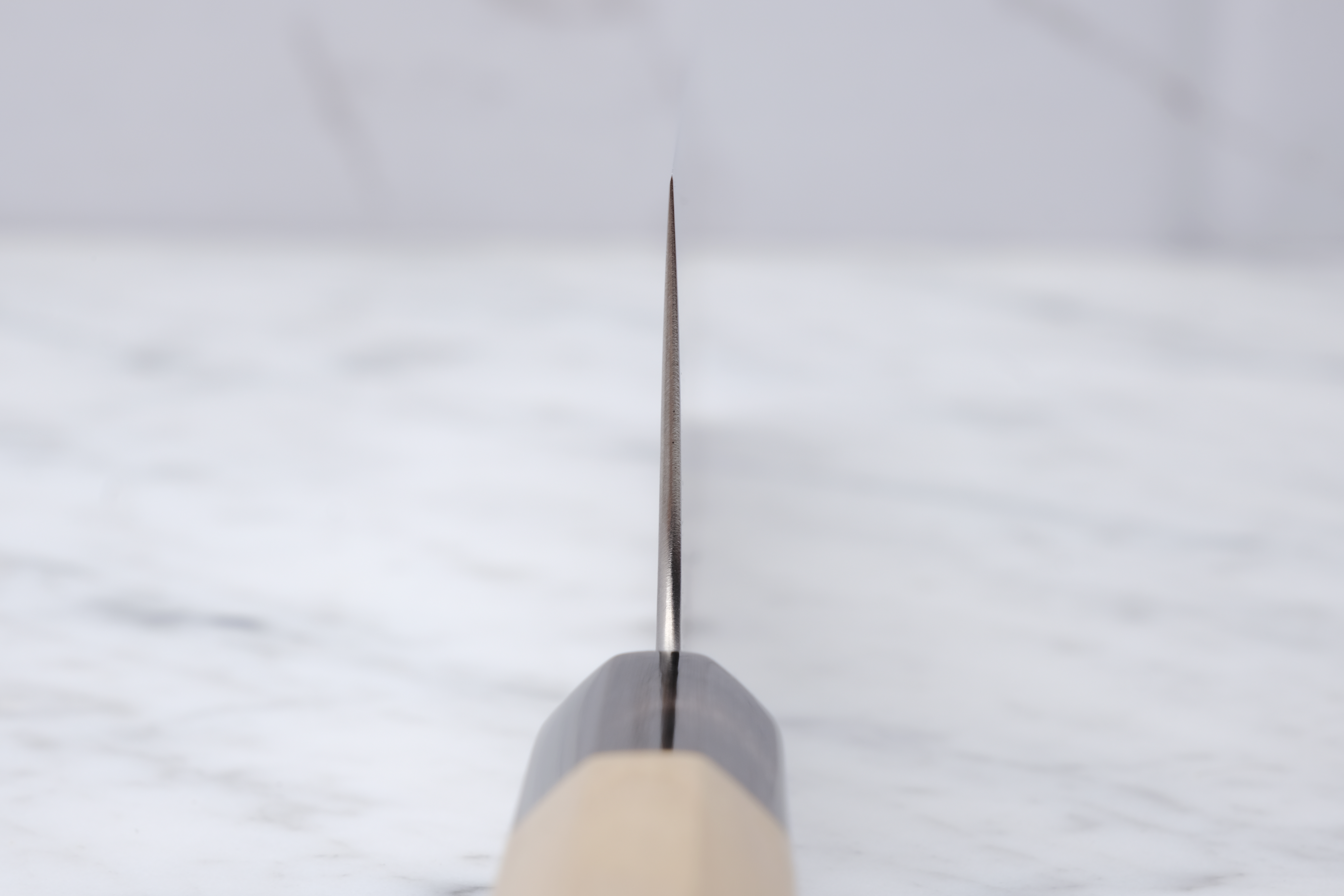 What makes these knives very special, however, is not the appearance, but the fact that they are slightly higher than what similar knives would typically be, while also being extremely thin. Additionally, the Tawa knives are sharpened all the way from the back down towards the edge at a very fine angle, which is why they cut impressively well.