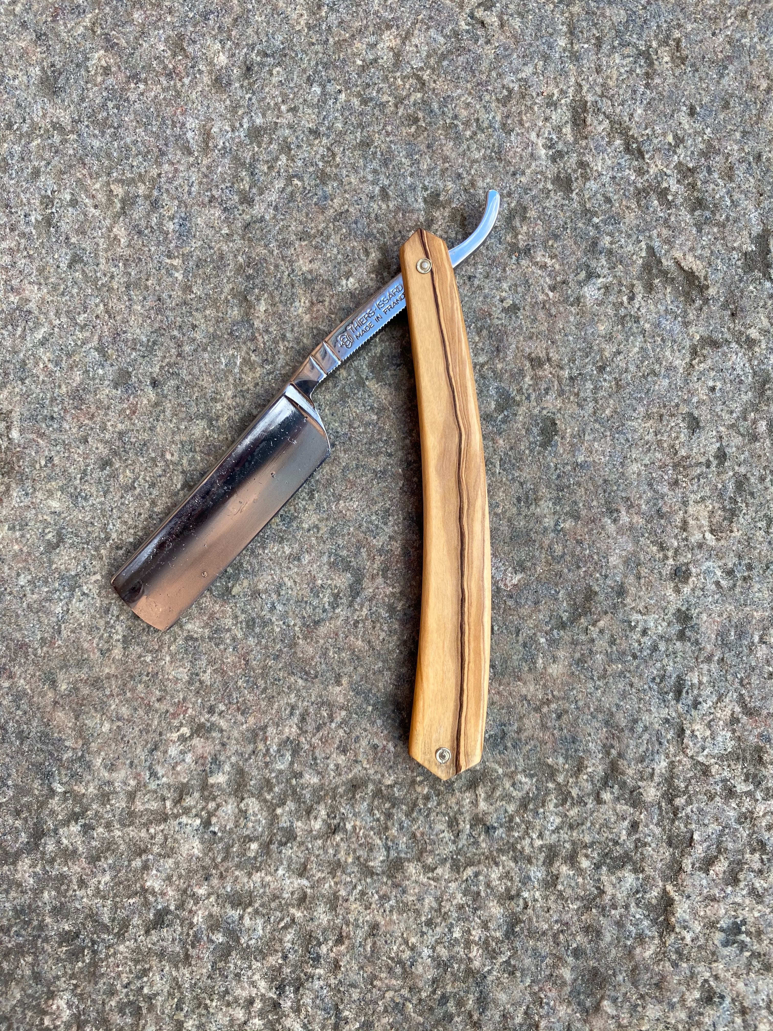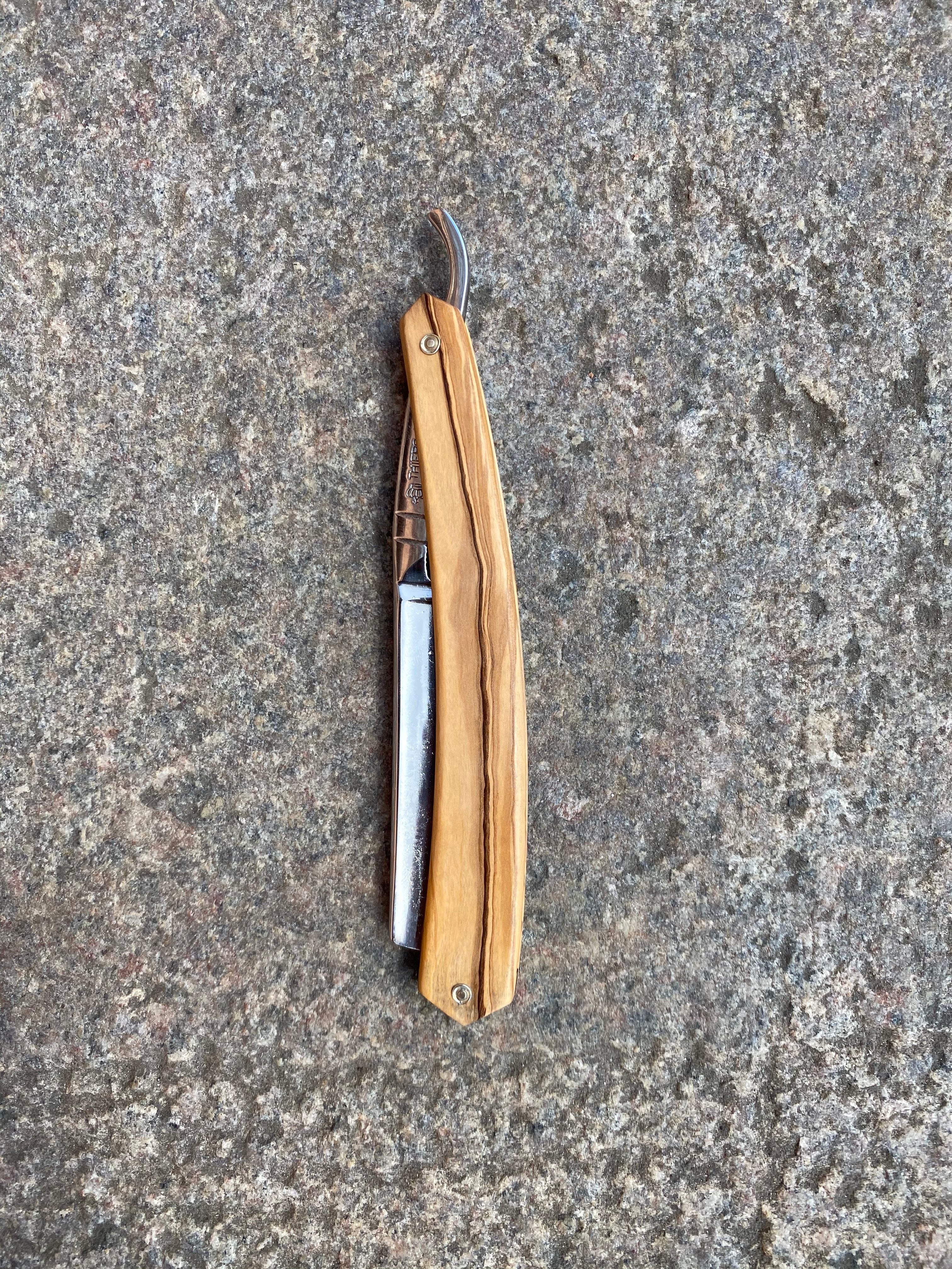 The Thiers-Issard Straight Razor - Olive - 6/8 is an excellent straight razor that combines traditional craftsmanship with modern precision. This blade is made from c135 carbon steel, ensuring exceptional sharpness and durability. With a beautiful Ironwood handle, this blade offers not only functionality but also an aesthetic appeal that makes it a must-have for any barber or grooming enthusiast.