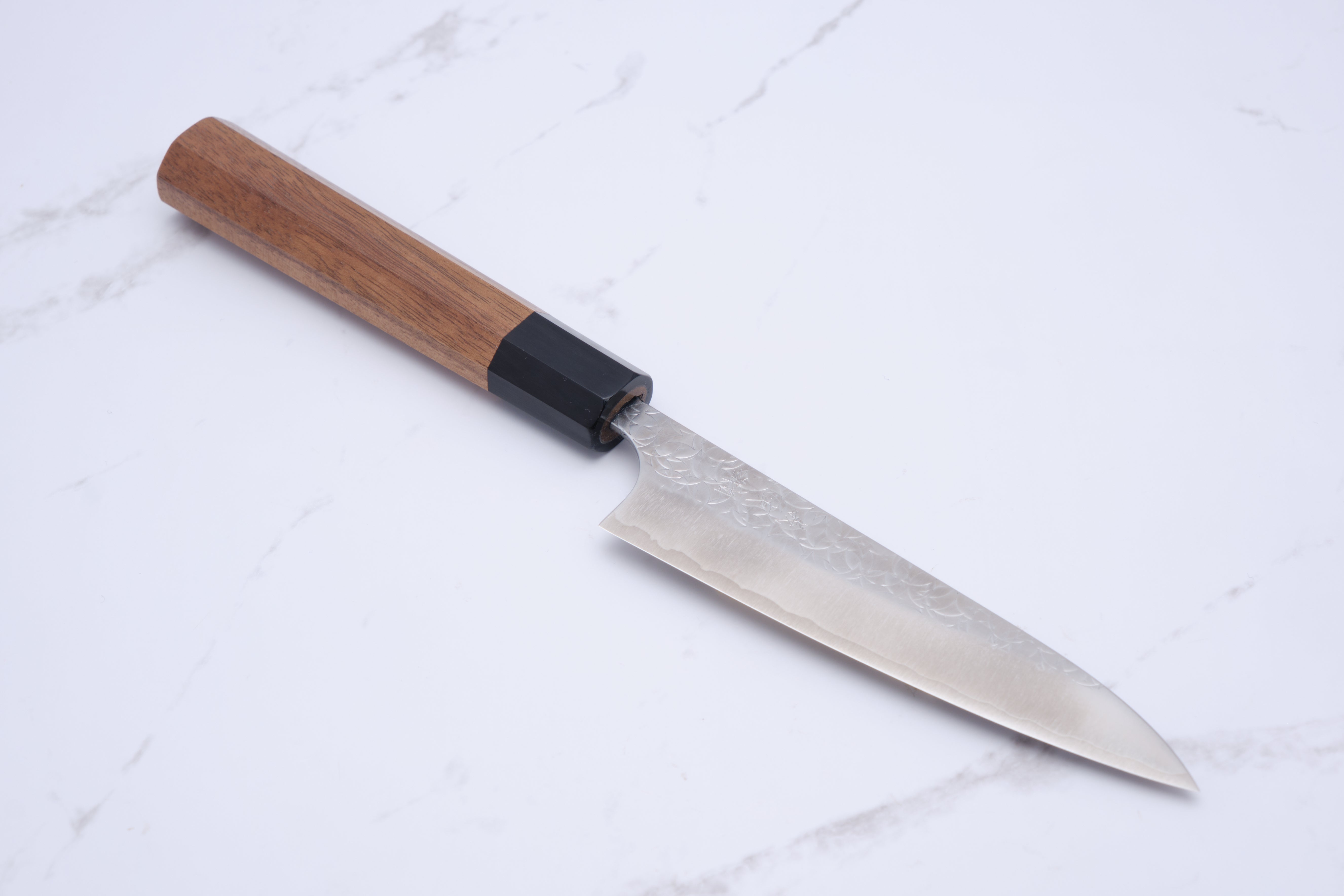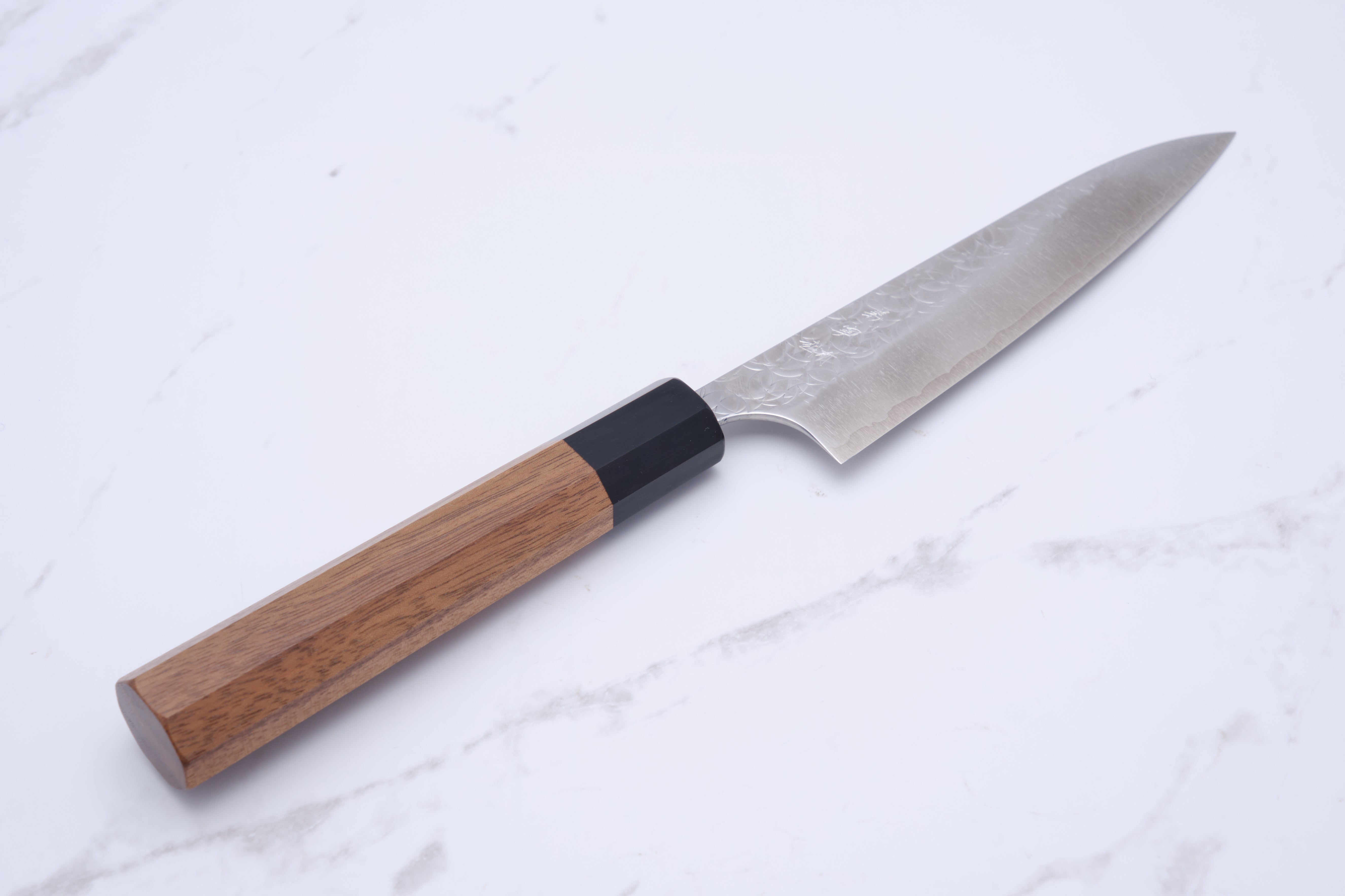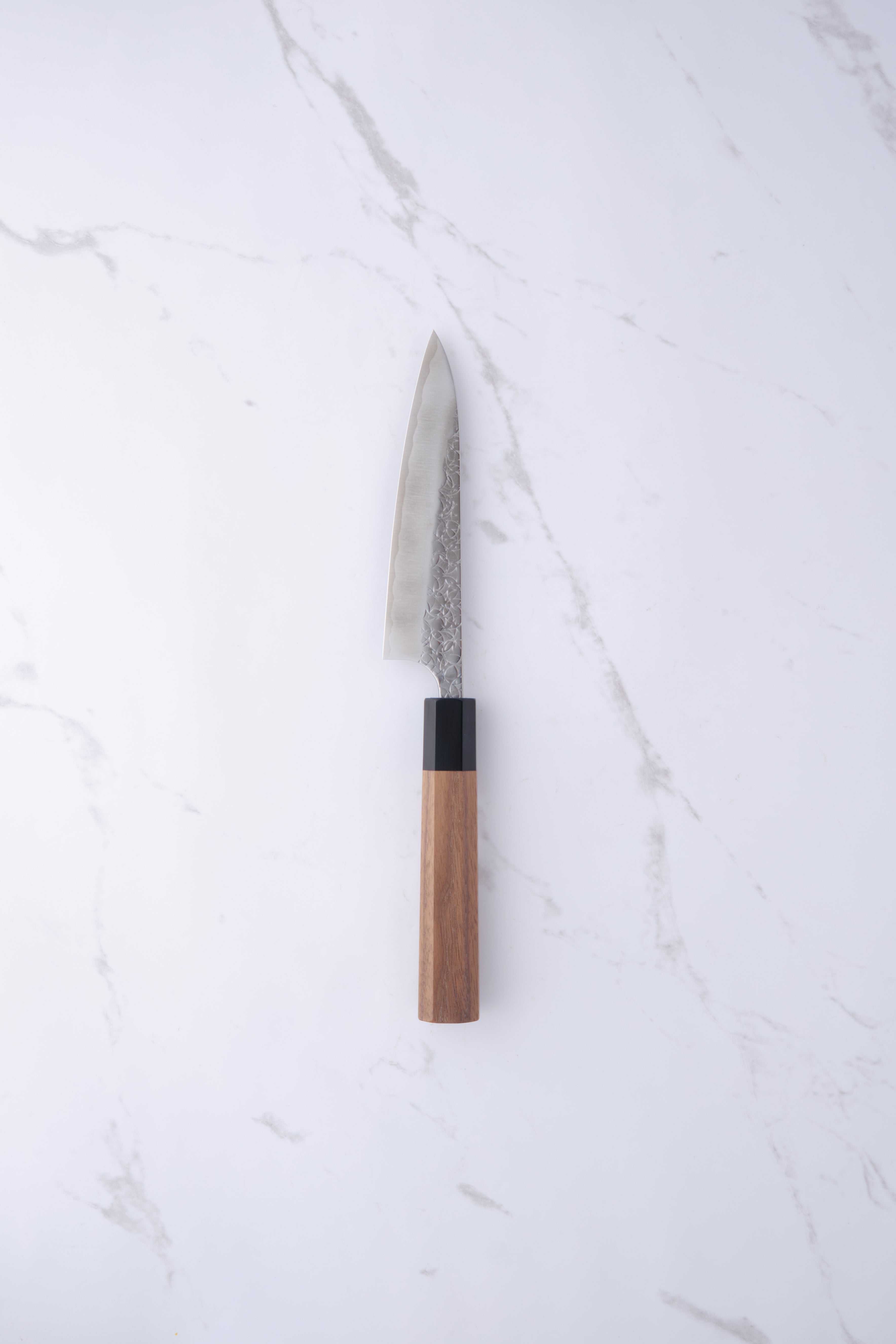 The knife is a petty of 120mm and is used for smaller precision tasks such as slicing smaller vegetables, as well as trimming meat etc.