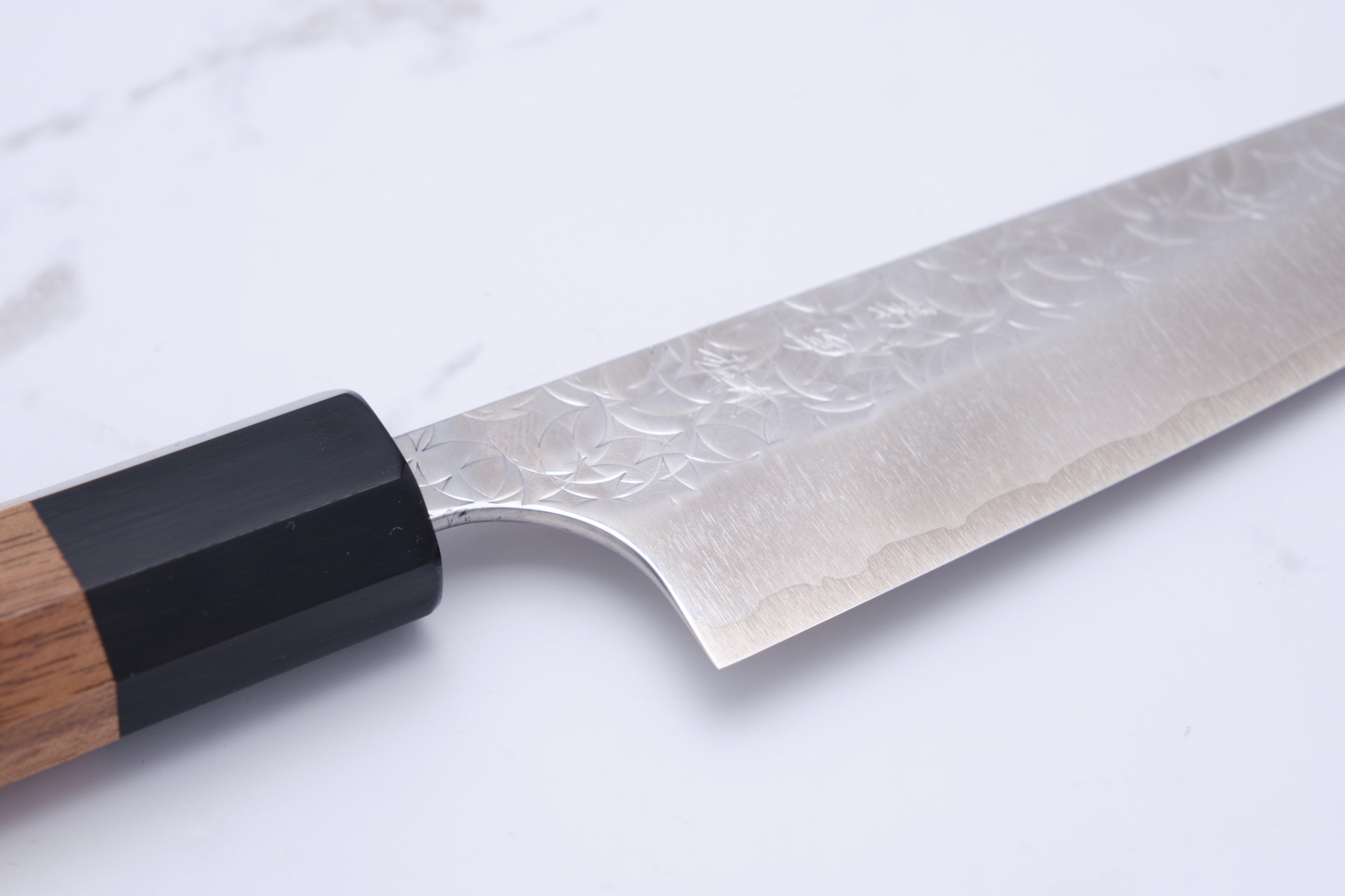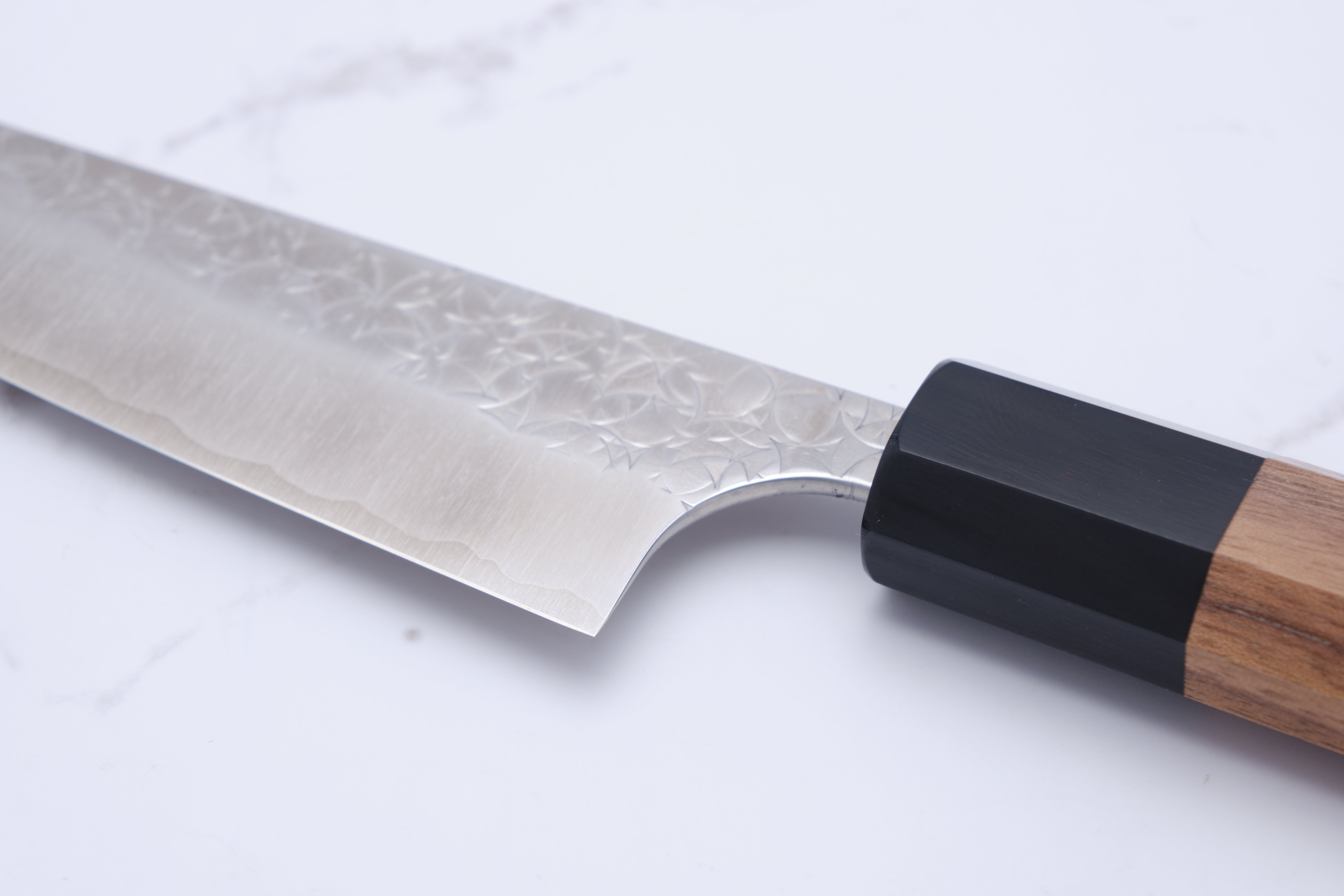 Yoshimi-san is known for hardening steel exceptionally well, and for his knives that are beyond the usual beautiful, especially his damask cladding, we think they are some of the absolute best looking you can find.