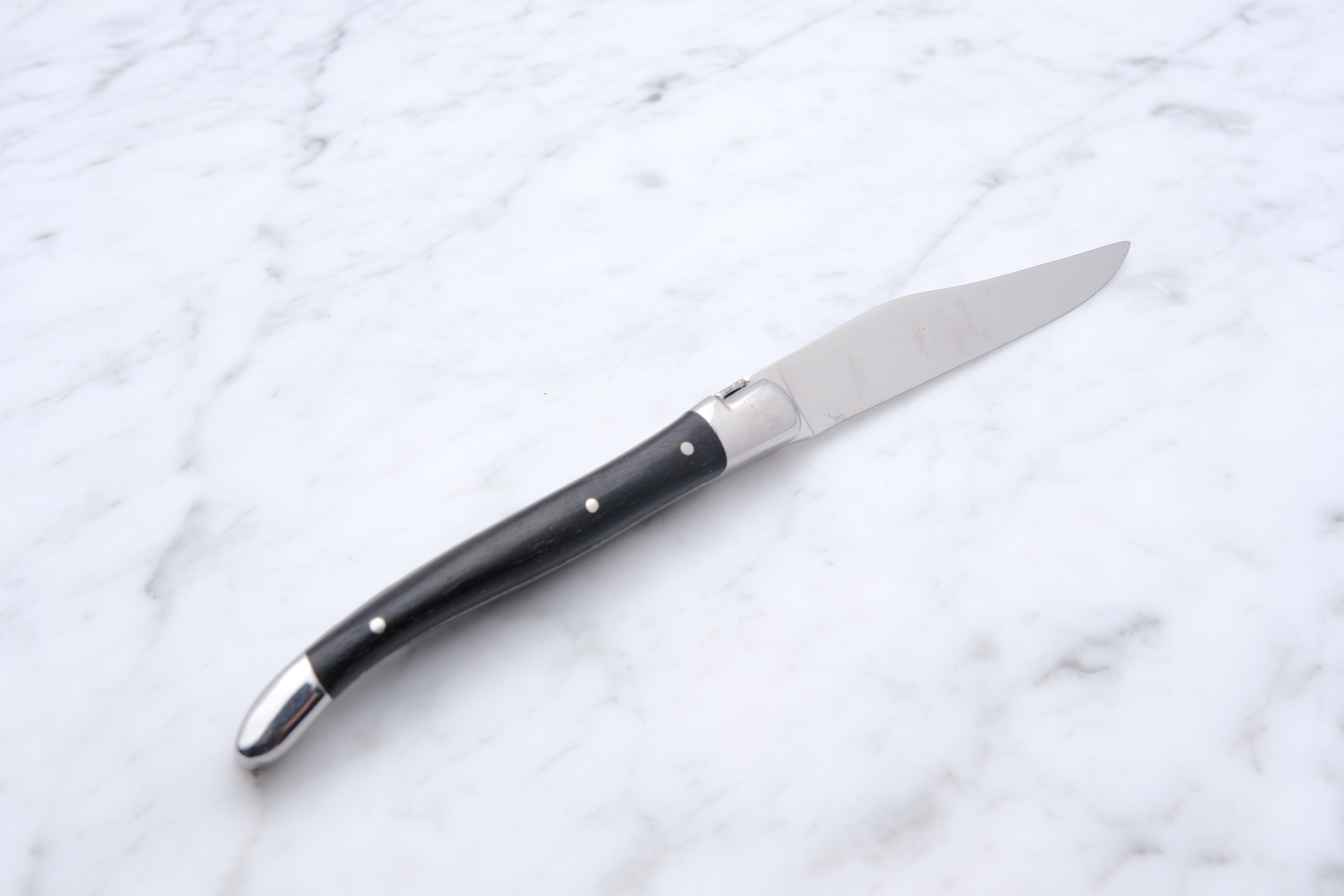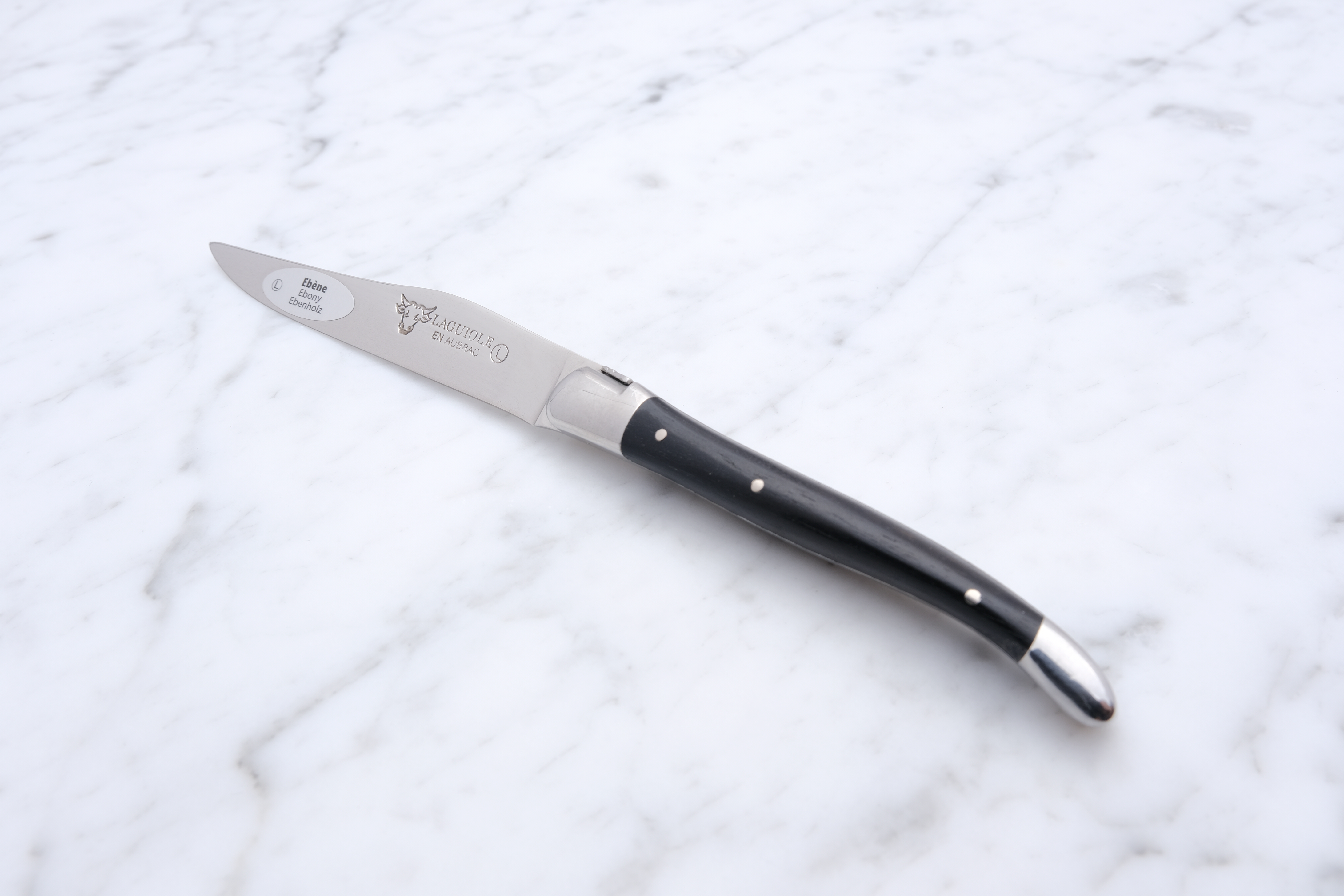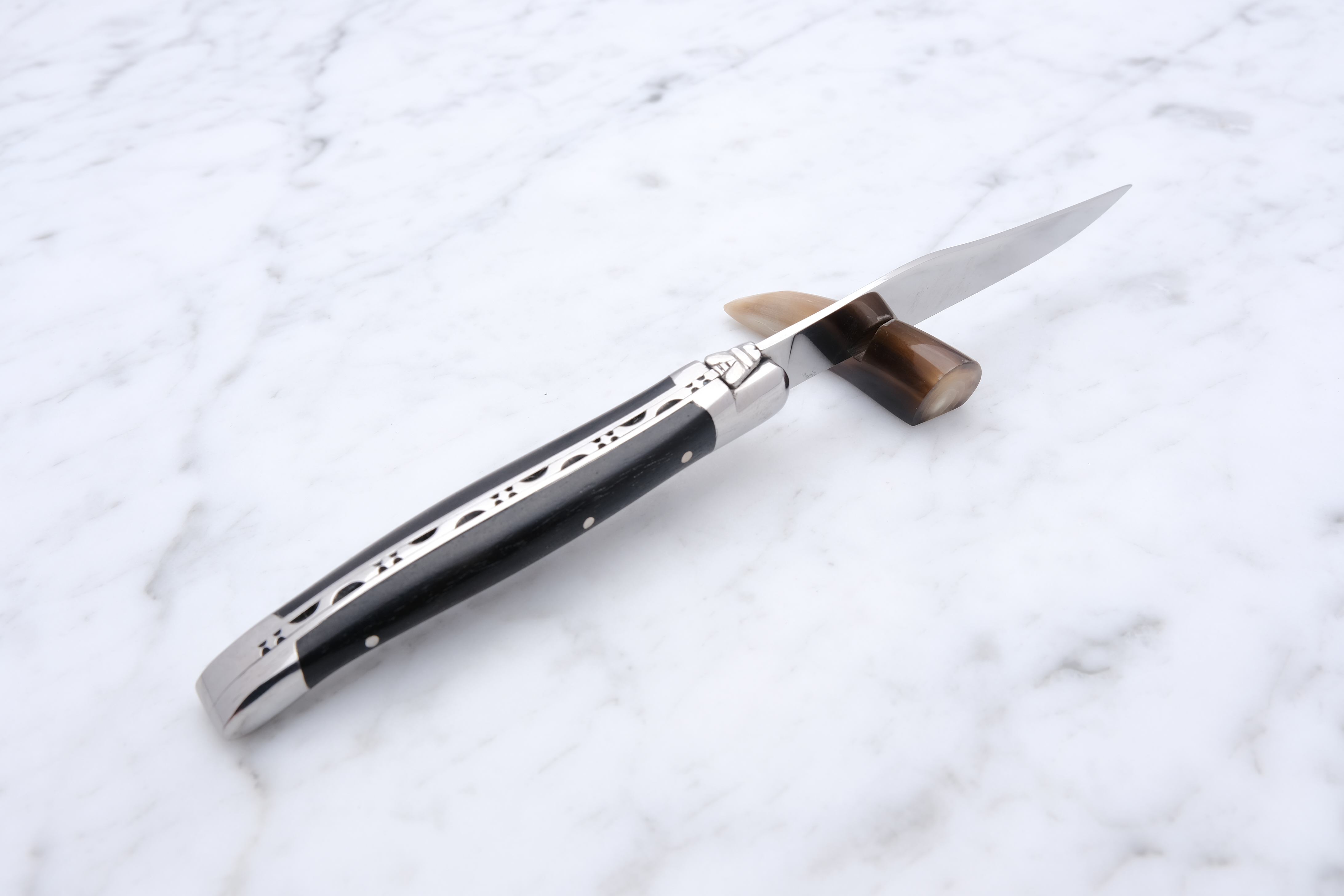 Børnekniv - Ibenholt fra Laguiole En Aubrac er den perfekte gave til den lille, bevidste gourmand. Denne kniv er designet specielt til børn og kombinerer funktionalitet med et elegant design. Med sit smukke ibenholtstræ og høje kvalitet, gør den måltider til en fornøjelse for de små. Kniven er ikke kun et praktisk redskab, men også et stykke kunsthåndværk, der vil glæde både børn og forældre. Forkæl dit barn med denne unikke kniv, der opfordrer til madlavning og nydelse af måltider på en sjov og sikker måde.