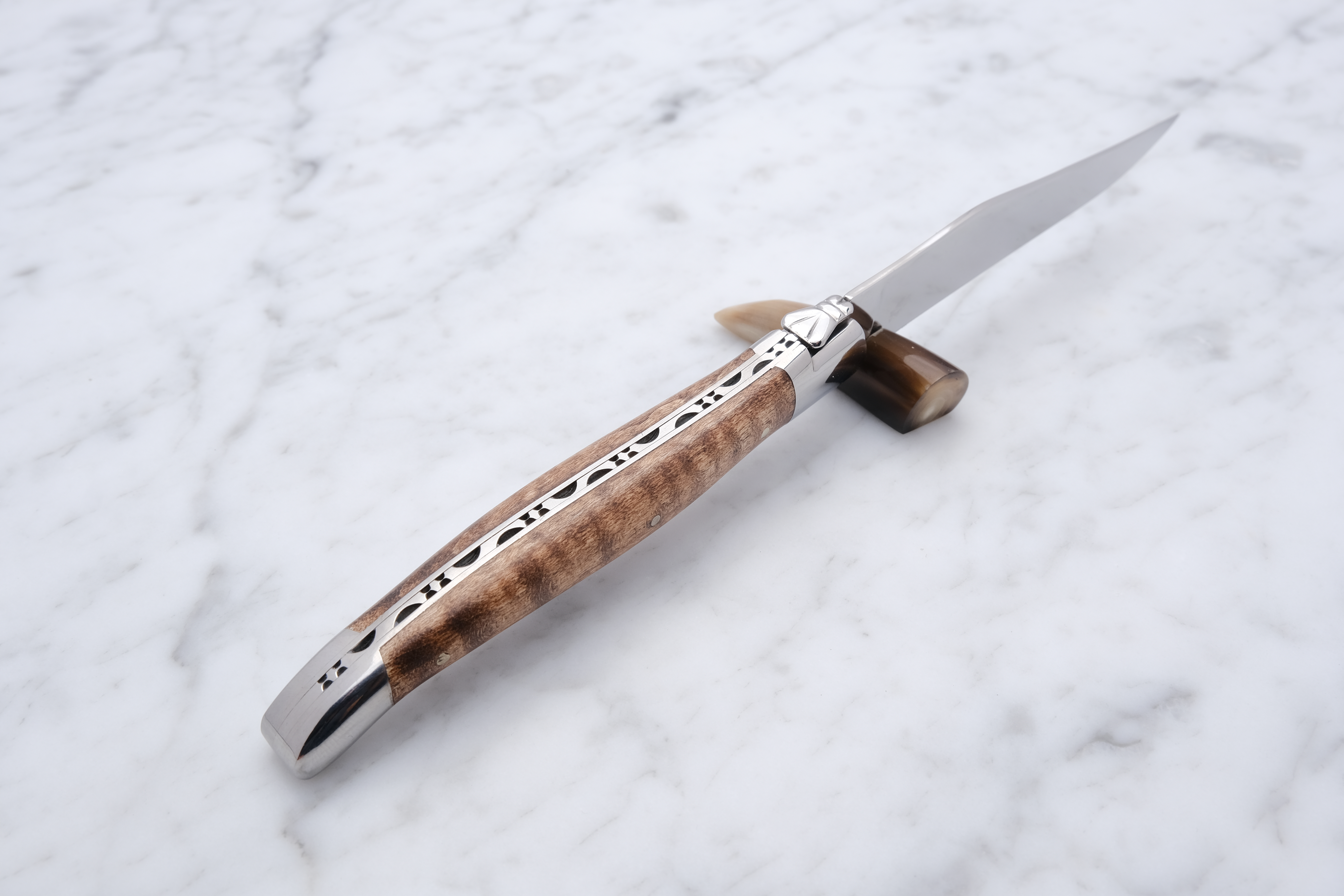 Knive fra Laguiole en Aubrac er fremstillet med naturmaterialer. Derfor vil den kniv du køber ikke nødvendigvis være fuldstændigt magen til den viste på billedet her.