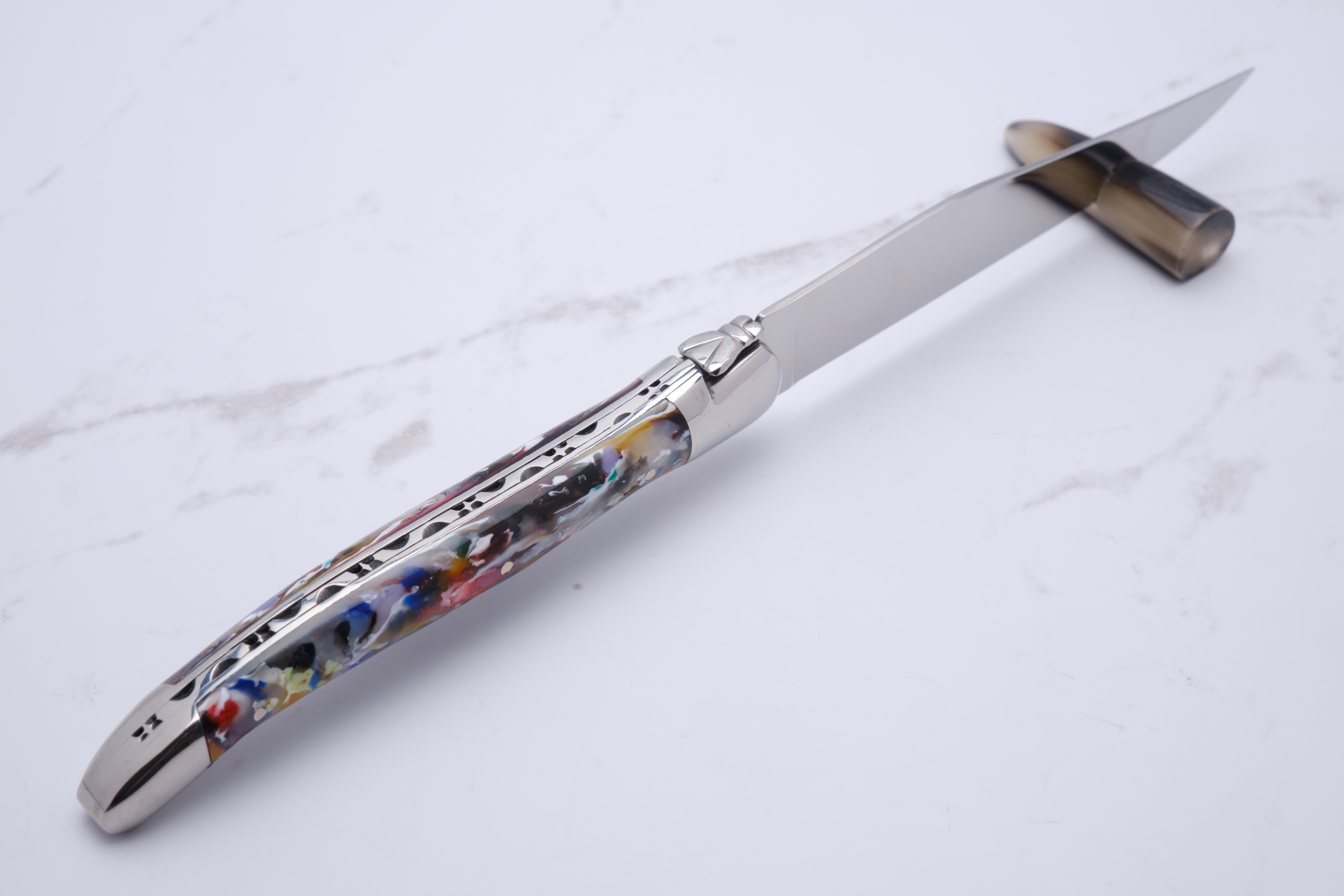 Knive fra Laguiole en Aubrac er fremstillet med naturmaterialer. Derfor vil den kniv du køber ikke nødvendigvis være fuldstændigt magen til den viste på billedet her.