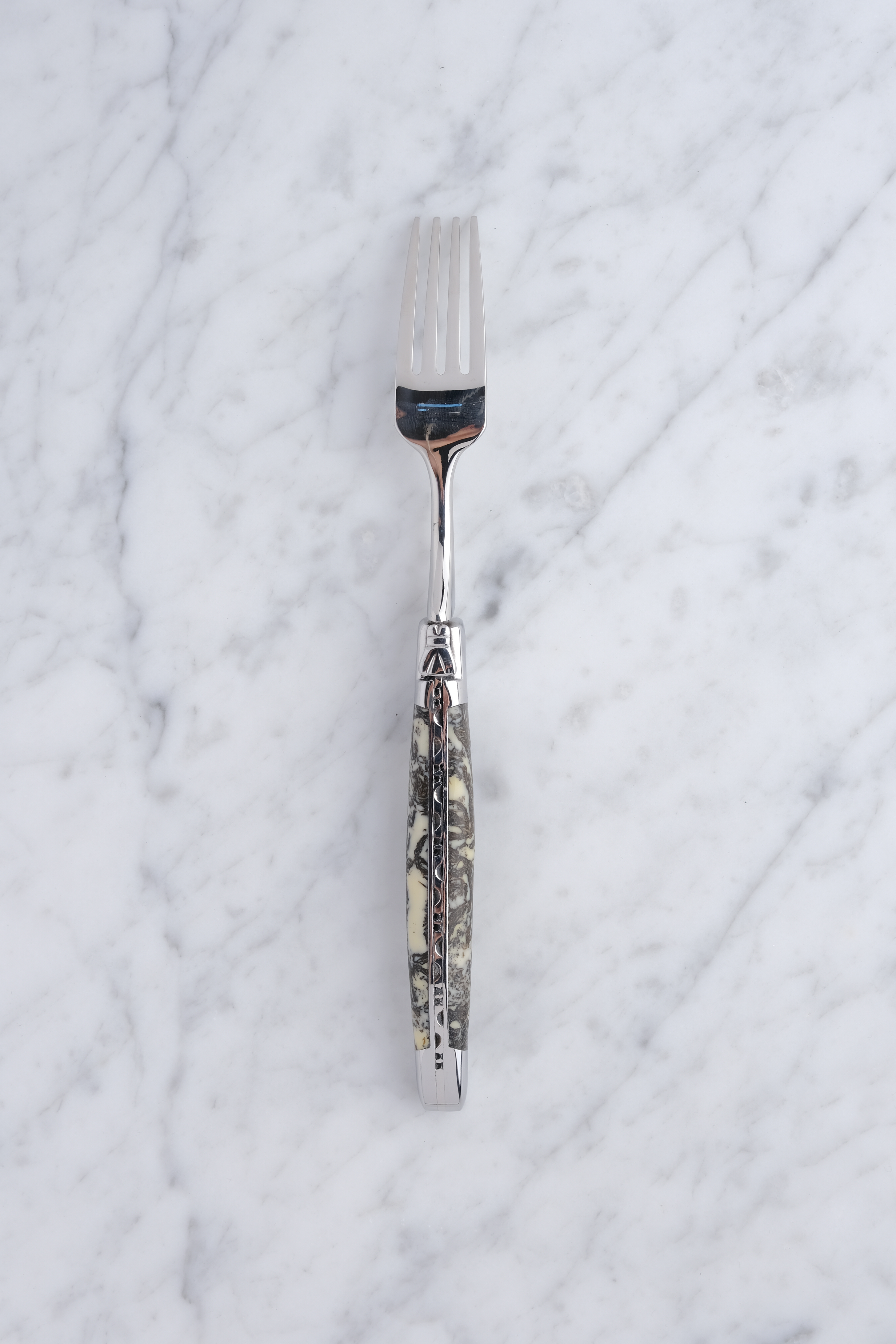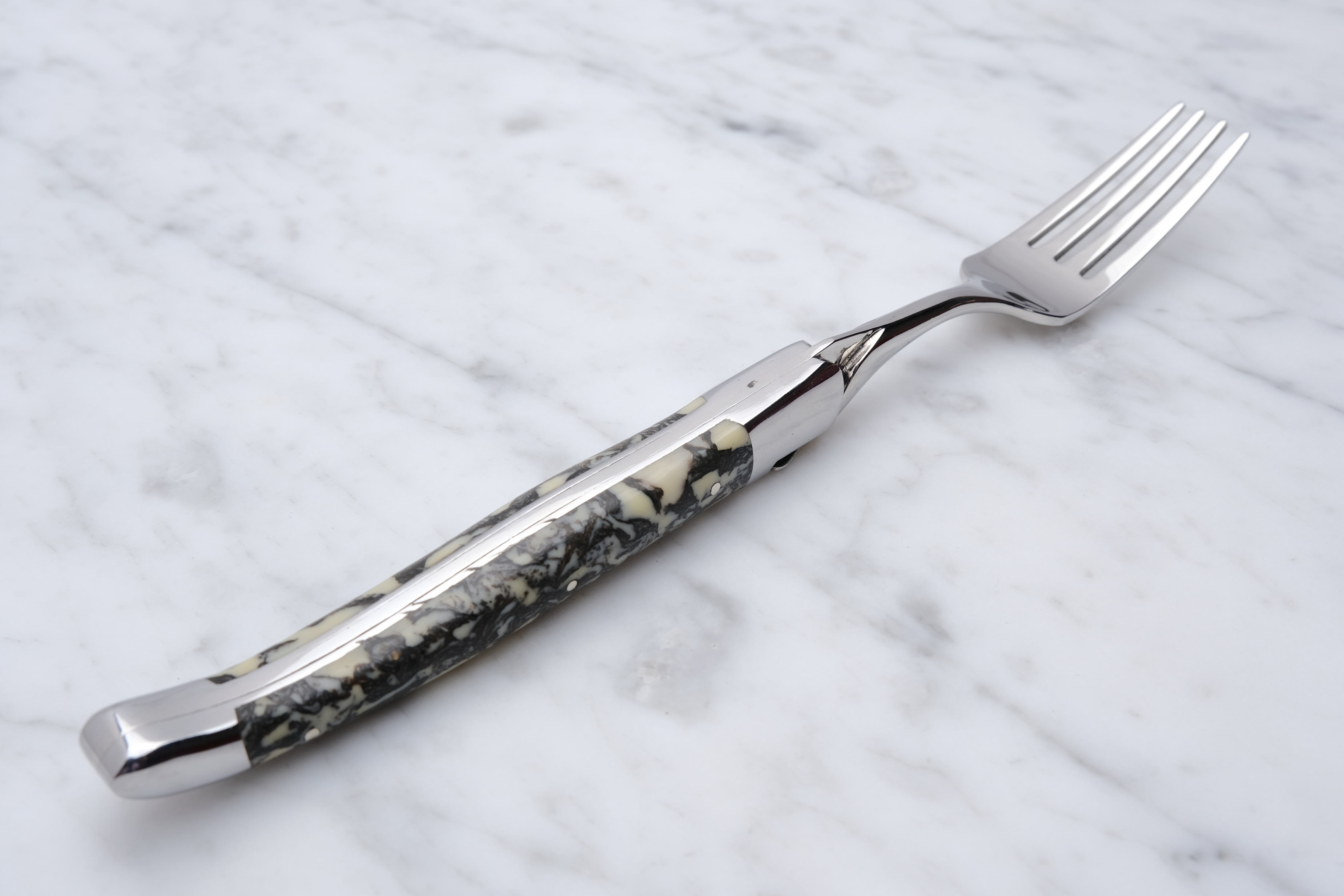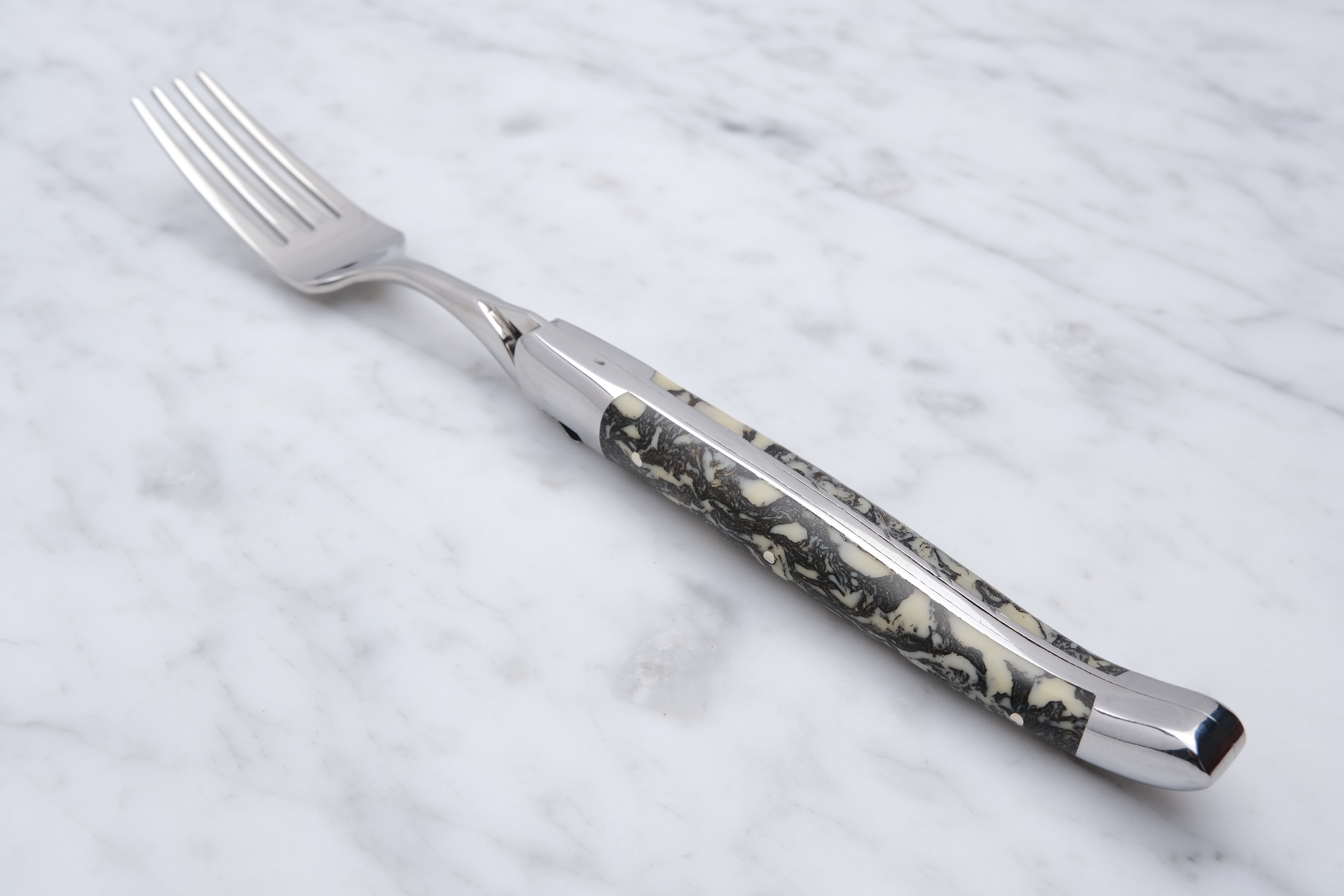 Laguiole En-Aubrac har en lang og stolt tradition for at smede foldeknive, steakknive og proptrækkere, her til har de lavet elegante gafler der harmonere godt med deres folde- og steakknive på spisebordet, med samme klassiske design.