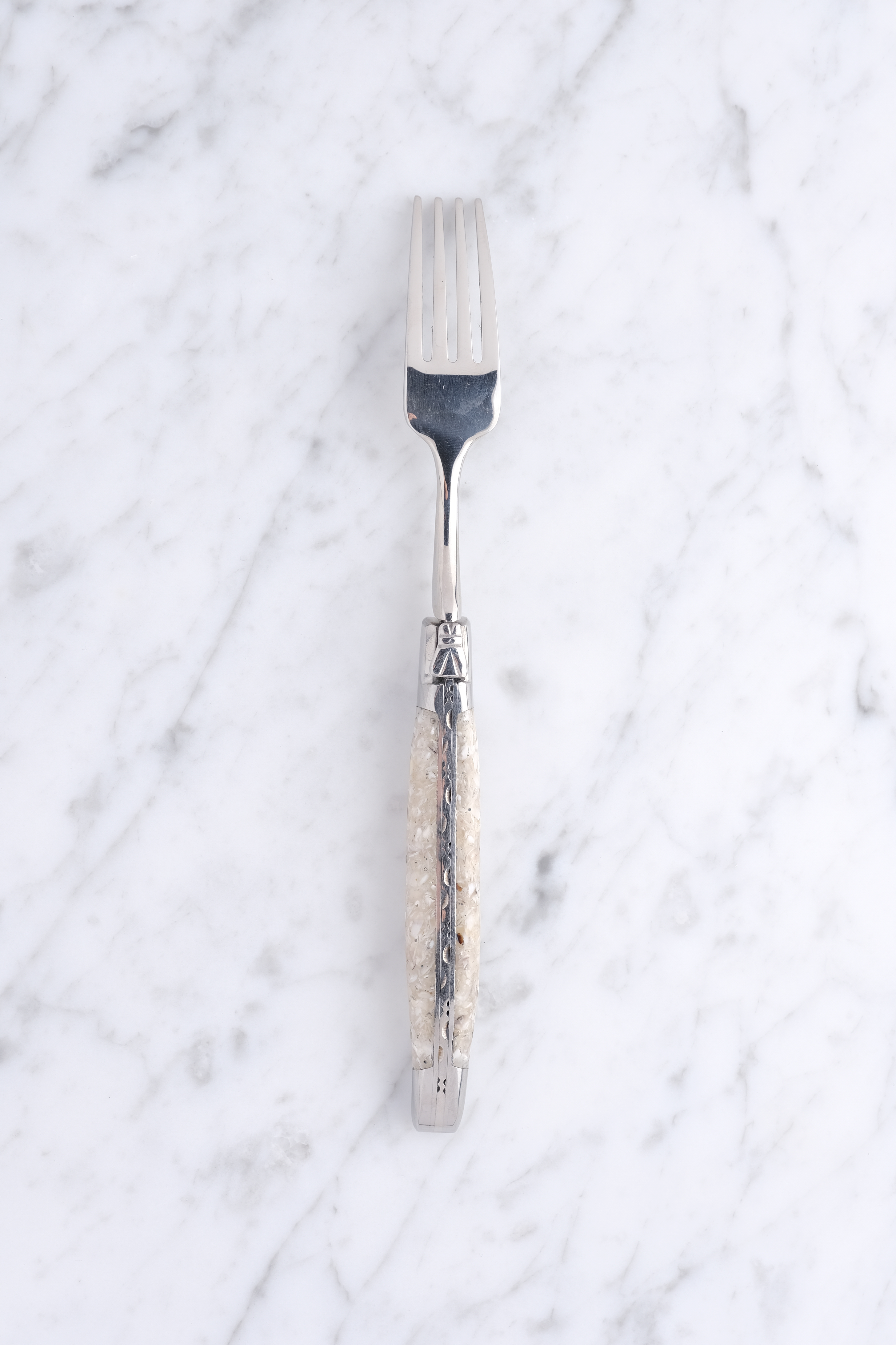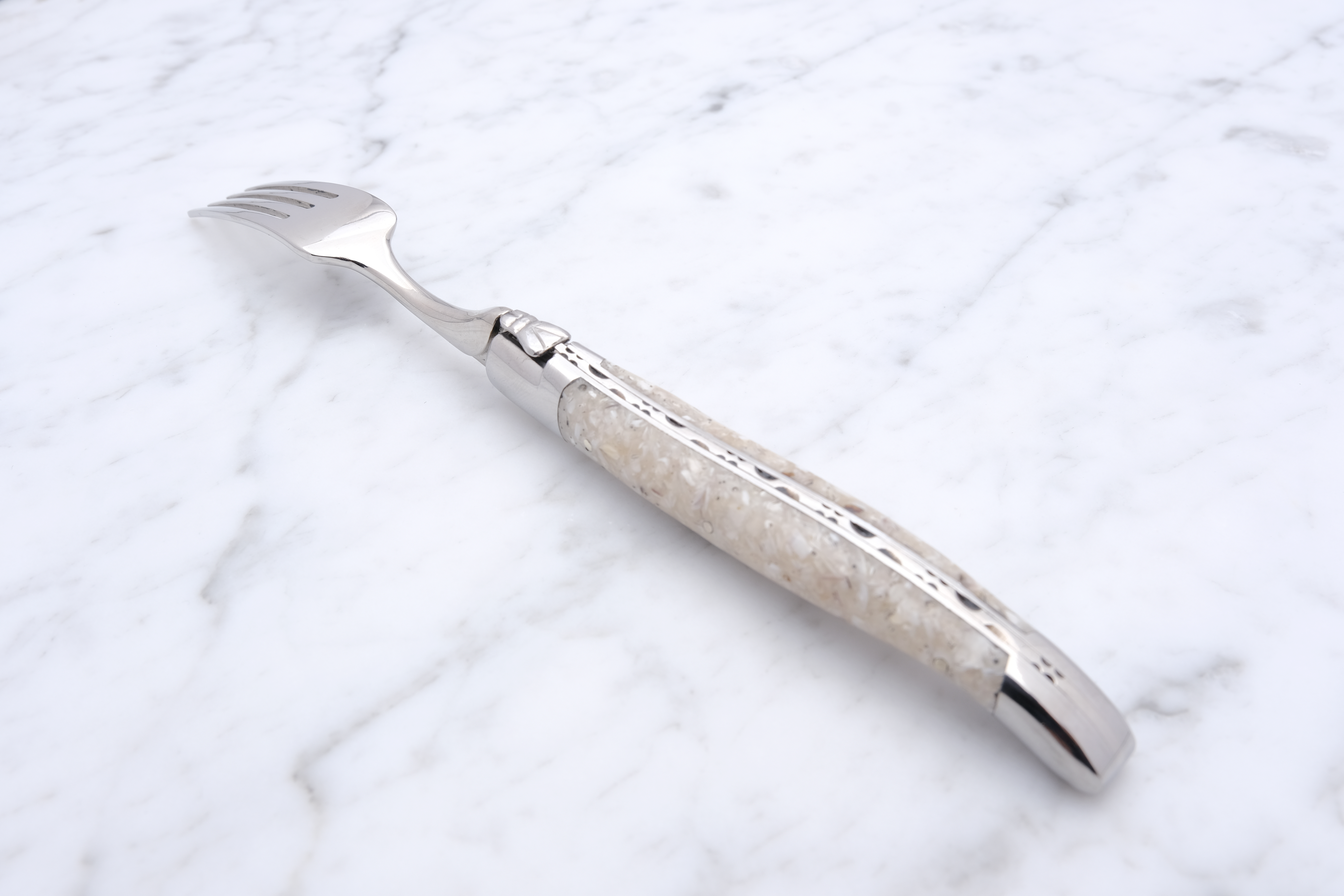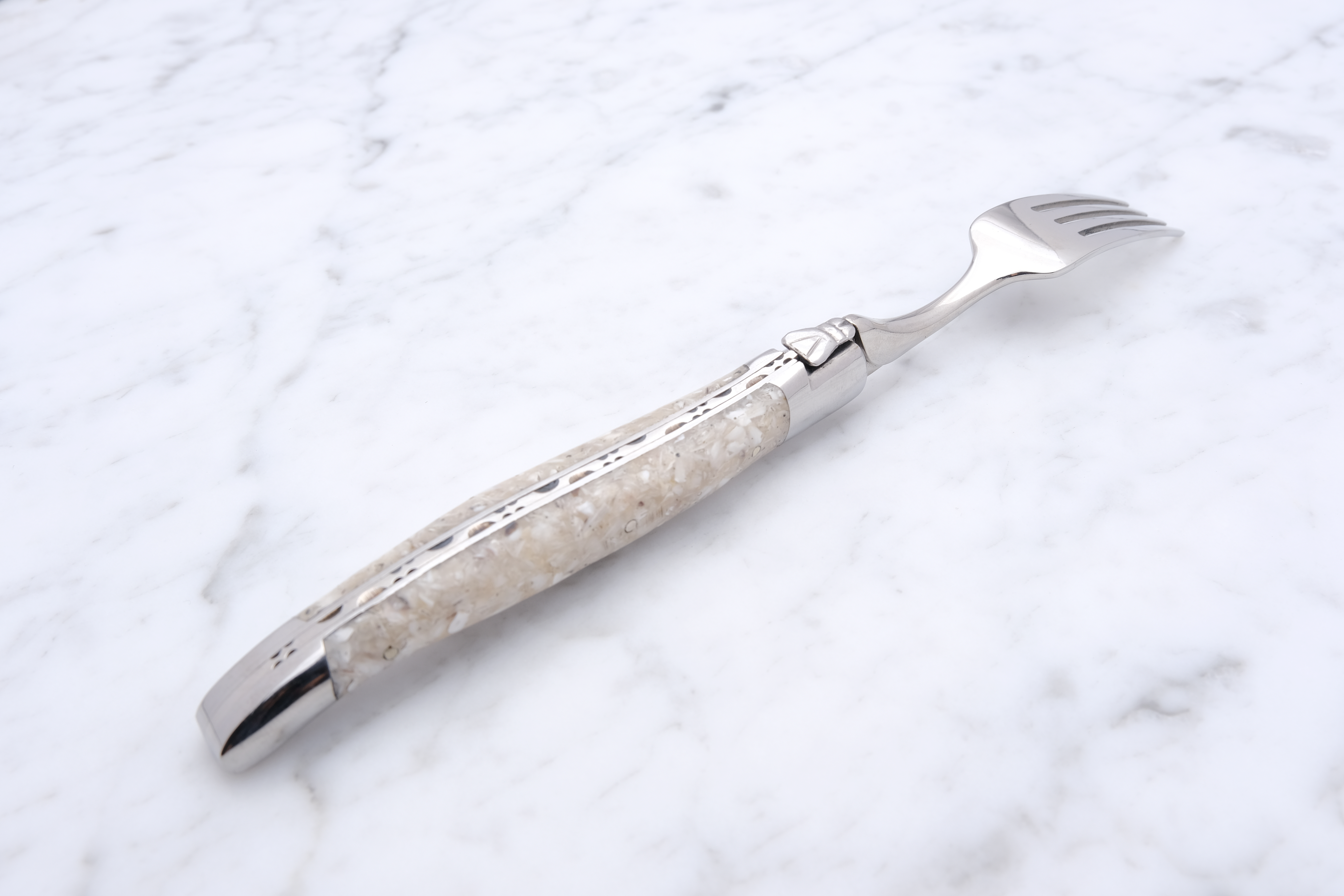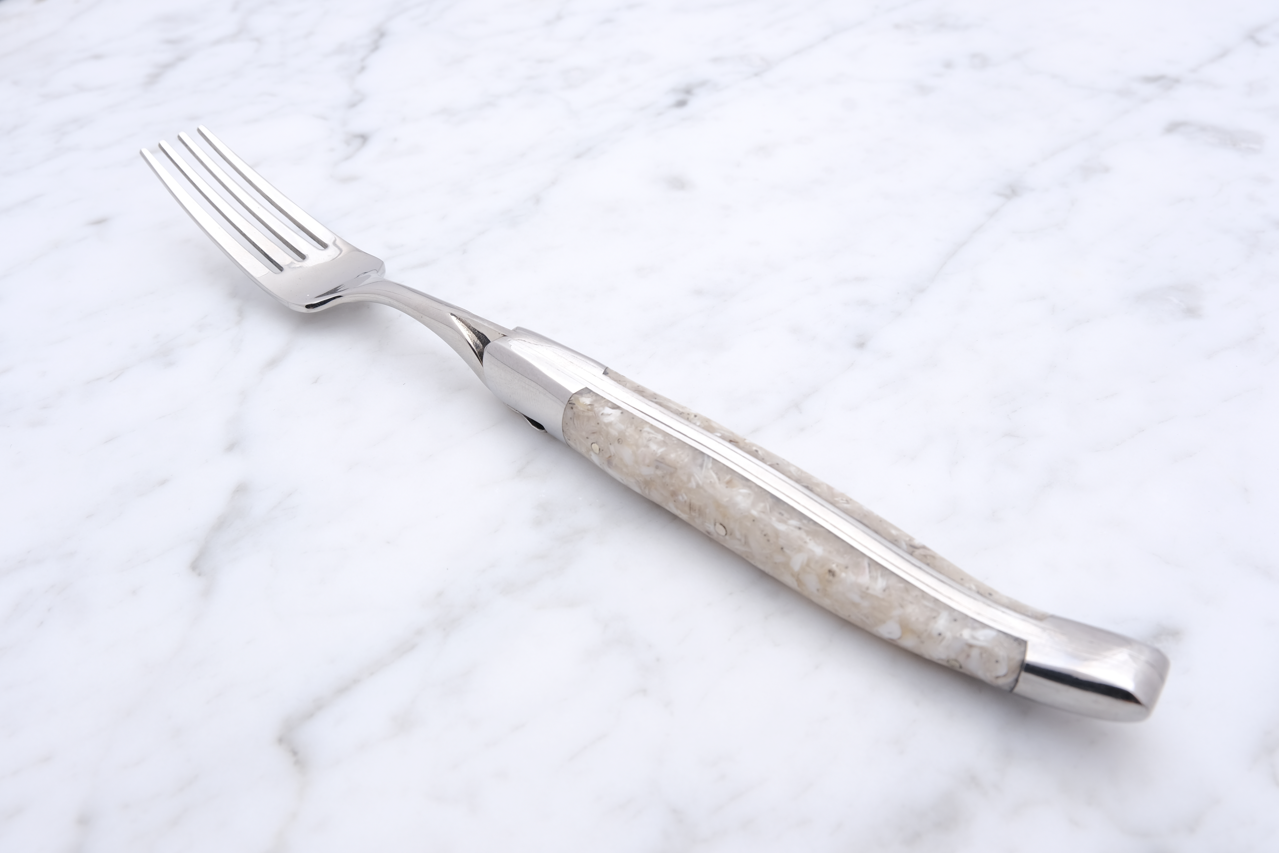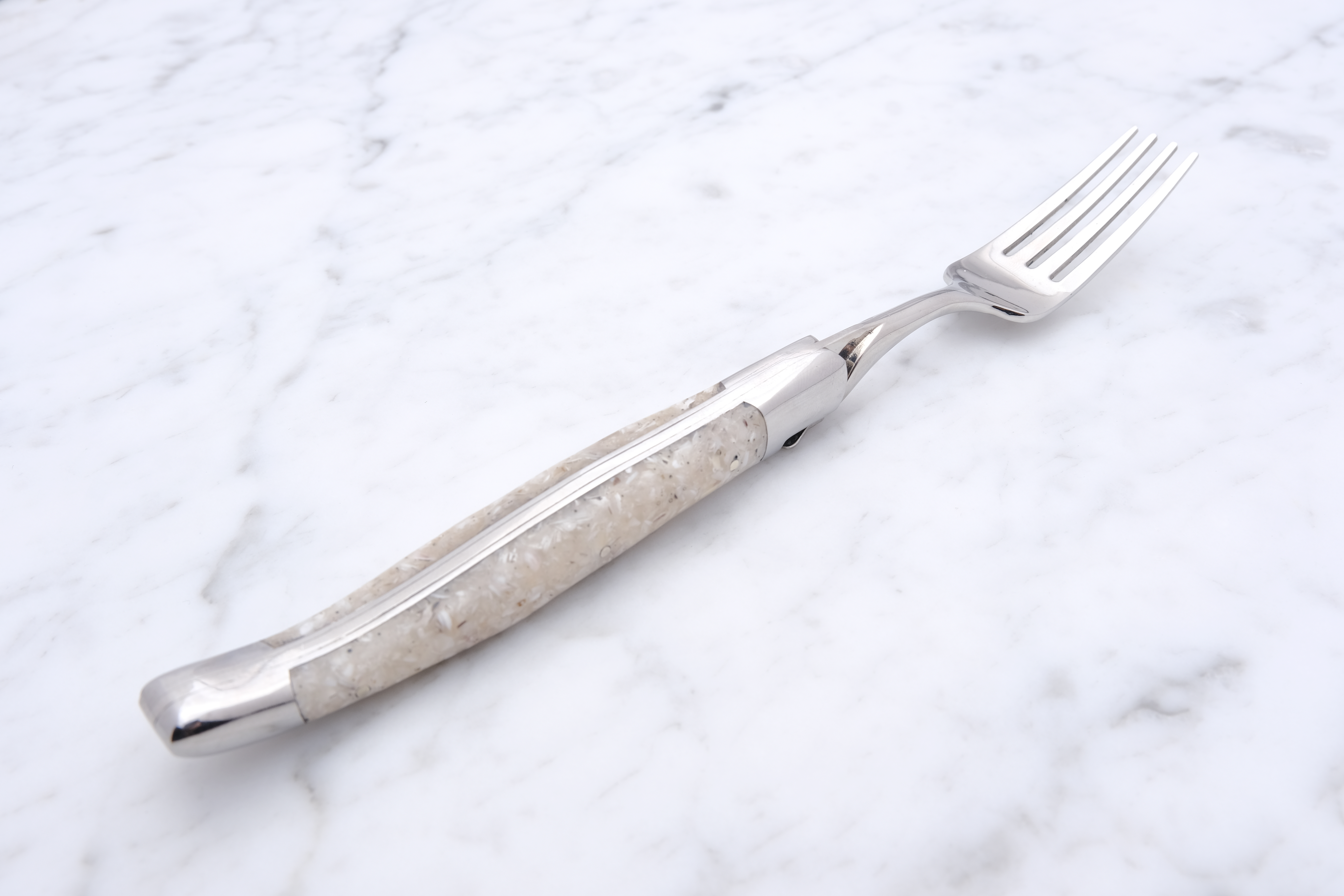 Laguiole En-Aubrac har en lang og stolt tradition for at smede foldeknive, steakknive og proptrækkere, her til har de lavet elegante gafler der harmonere godt med deres folde- og steakknive på spisebordet, med samme klassiske design.