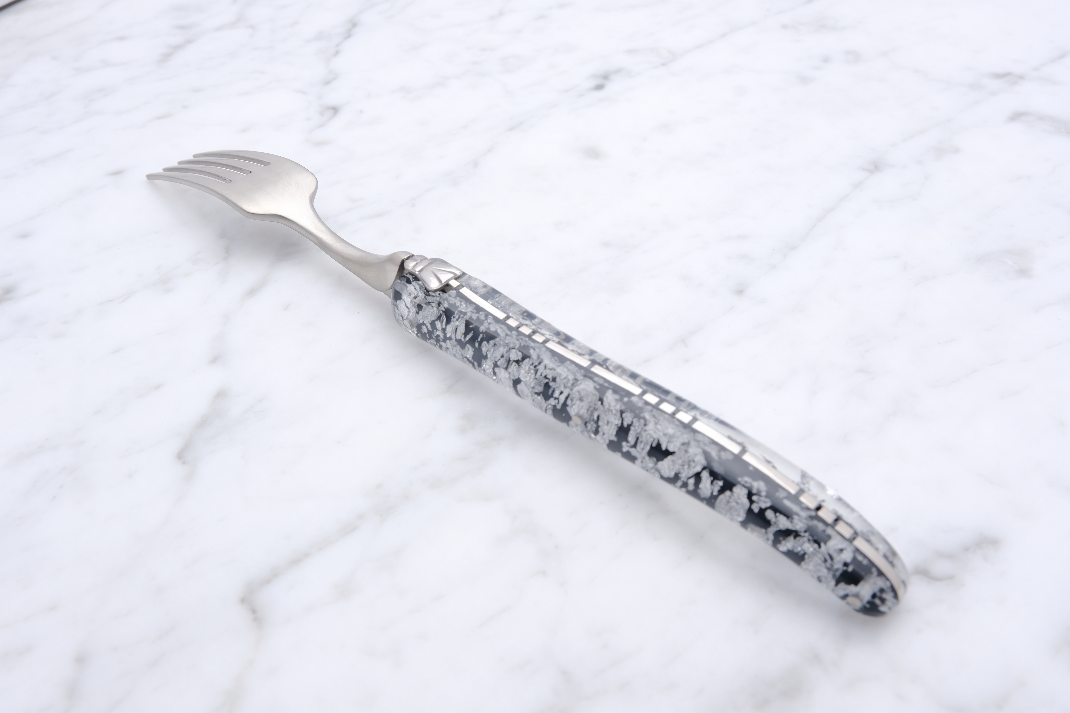 Laguiole En-Aubrac har en lang og stolt tradition for at smede foldeknive, steakknive og proptrækkere, her til har de lavet elegante gafler der harmonere godt med deres folde- og steakknive på spisebordet, med samme klassiske design.