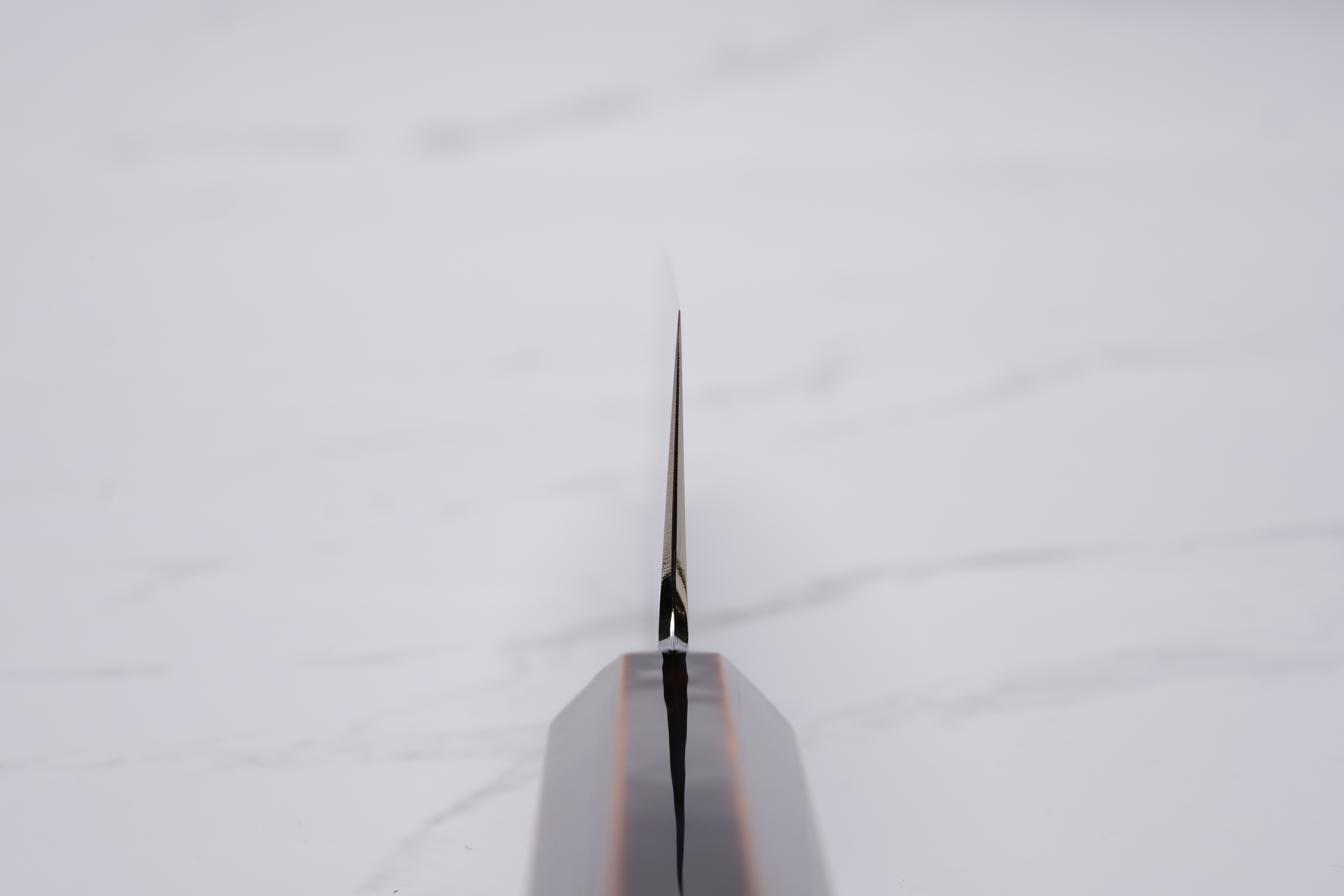 Med en slibning, der er udført til perfektion af Tadataka Maruyama, tilbyder denne kniv en imponerende præcision og en fantastisk kasumi finish. Den alsidige Bunka form gør den ideel til at skære kød, fisk og grøntsager, hvilket gør den til et uundgåeligt redskab i ethvert køkken. Oplev den enestående kvalitet og skønhed i HADO Ginsan Bunka kniven, som vil forvandle din madlavning.