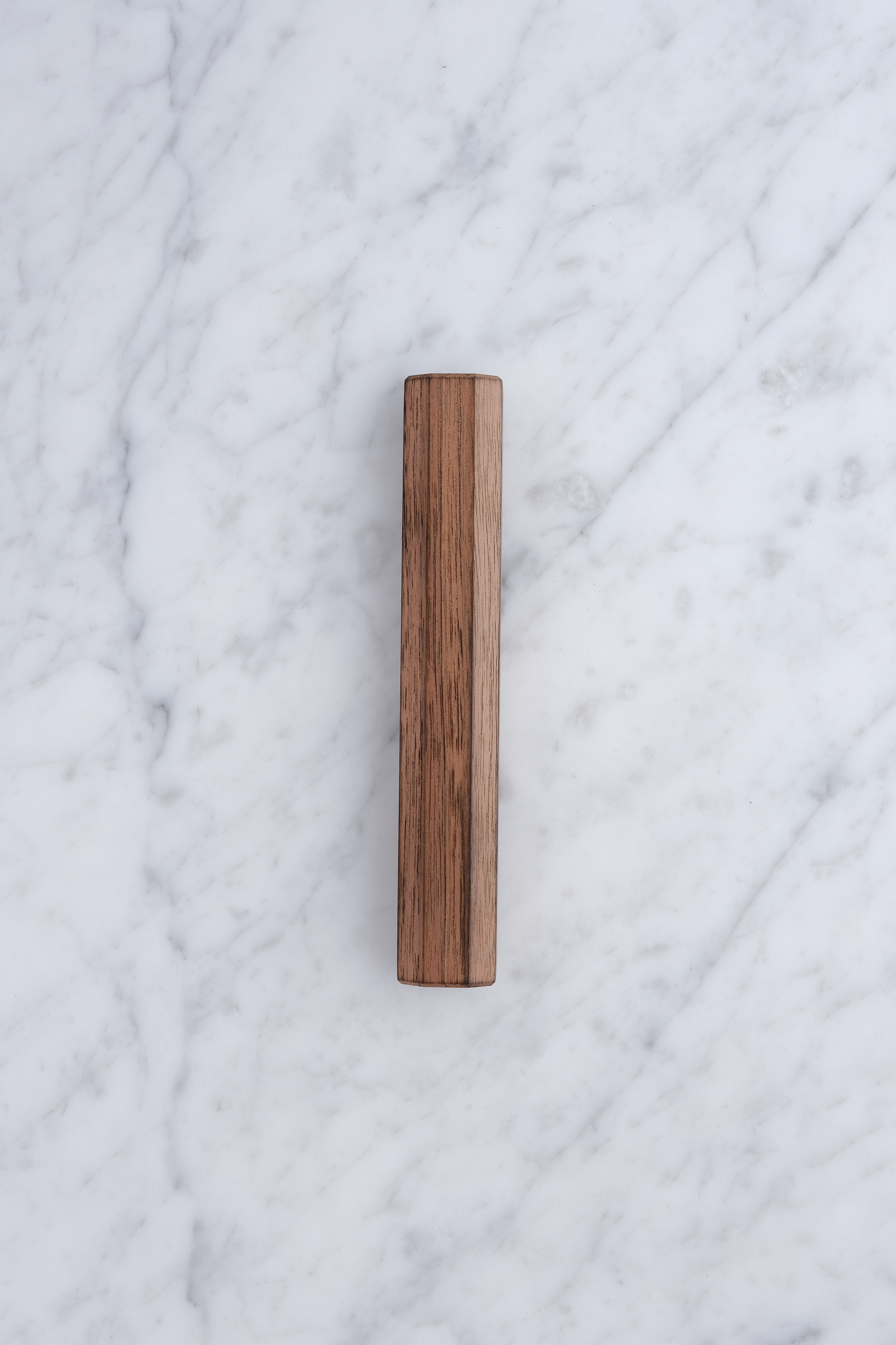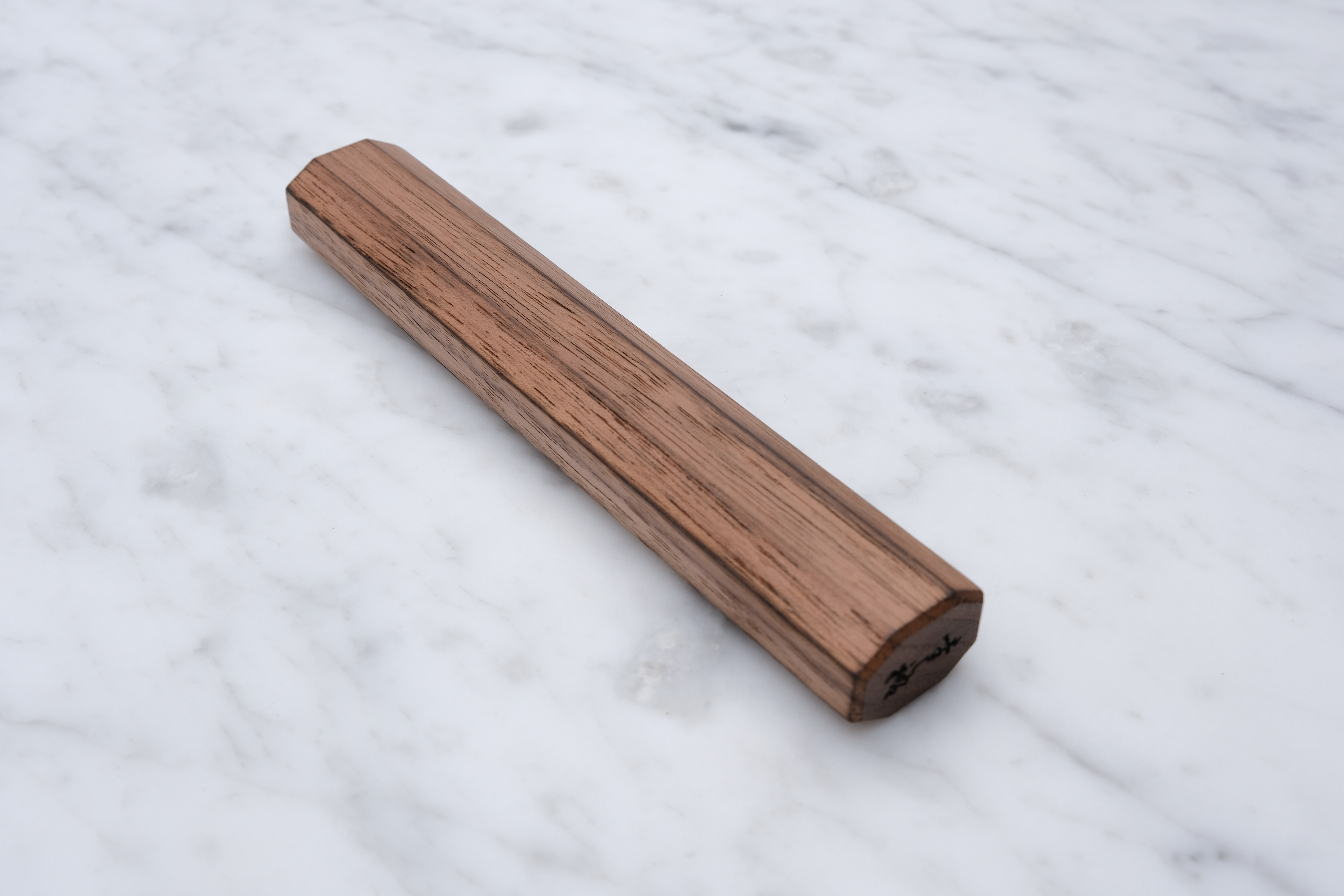 Dette skæfte er lavet i Valnød. Det er 8-kantet (WA) og er en smule smallere end andre klassiske WA-skæfter man måske er vant til. Skæftet mener vi, passer bedst til 210mm Gyuto/240mm Gyuto/270mm Yanagiba