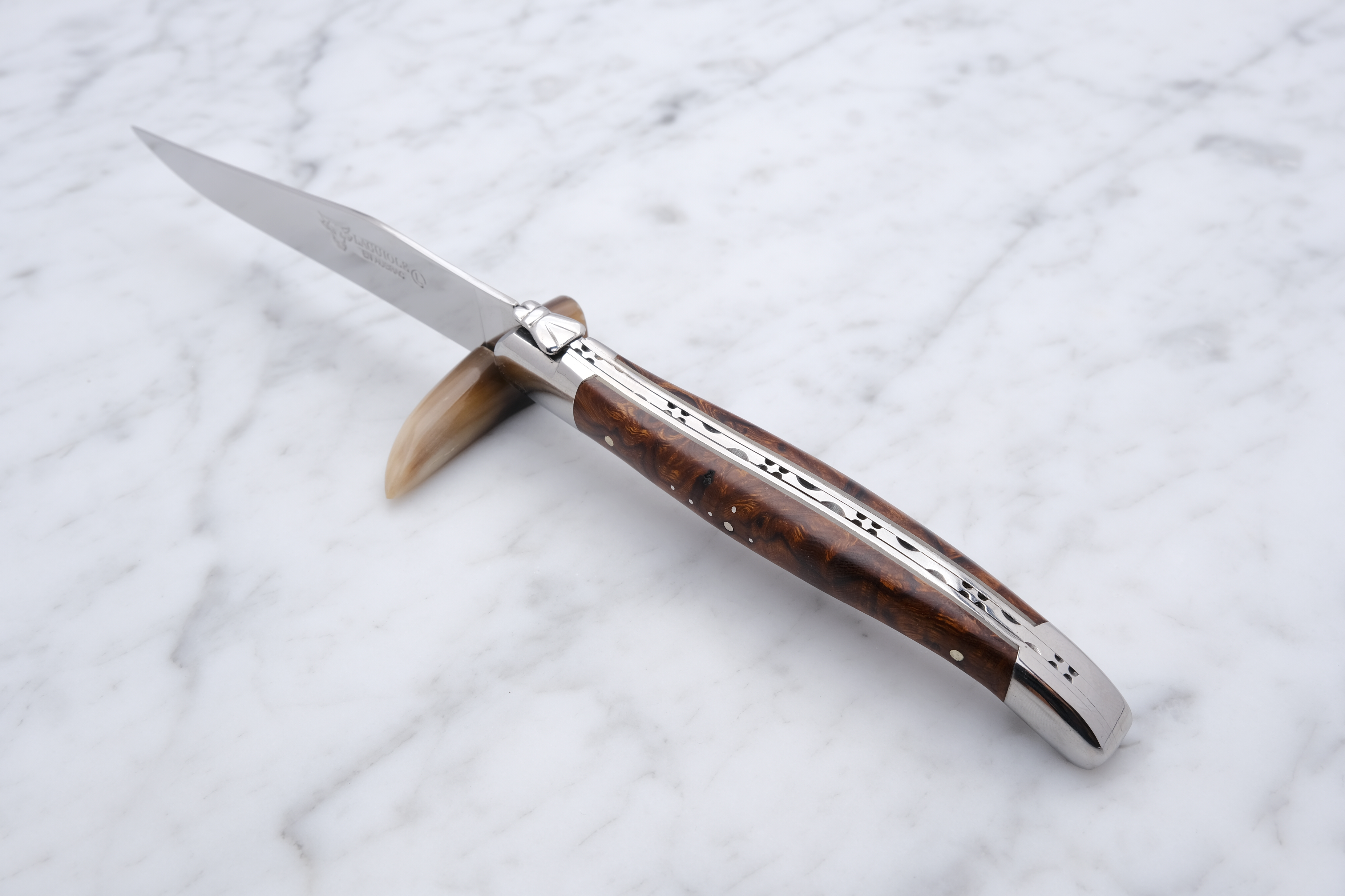 Knive fra Laguiole en Aubrac er fremstillet med naturmaterialer. Derfor vil den kniv du køber ikke nødvendigvis være fuldstændigt magen til den viste på billedet her.
