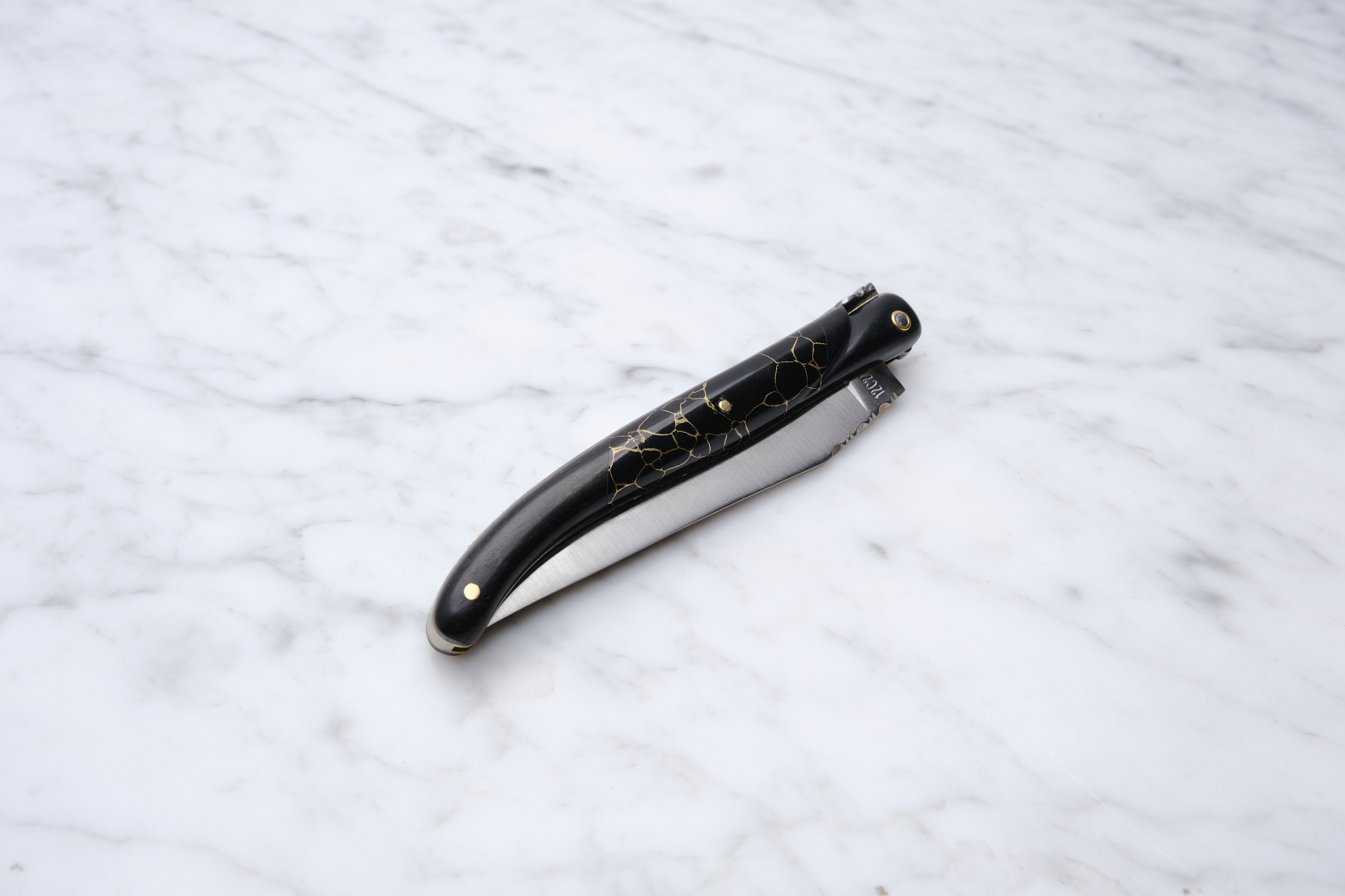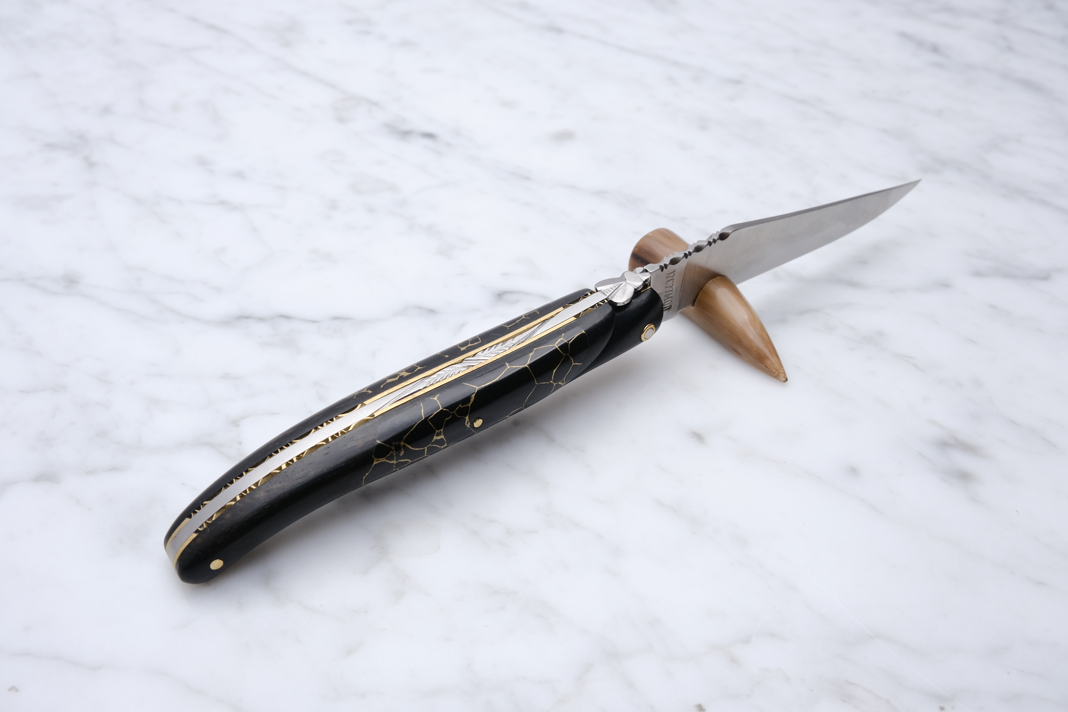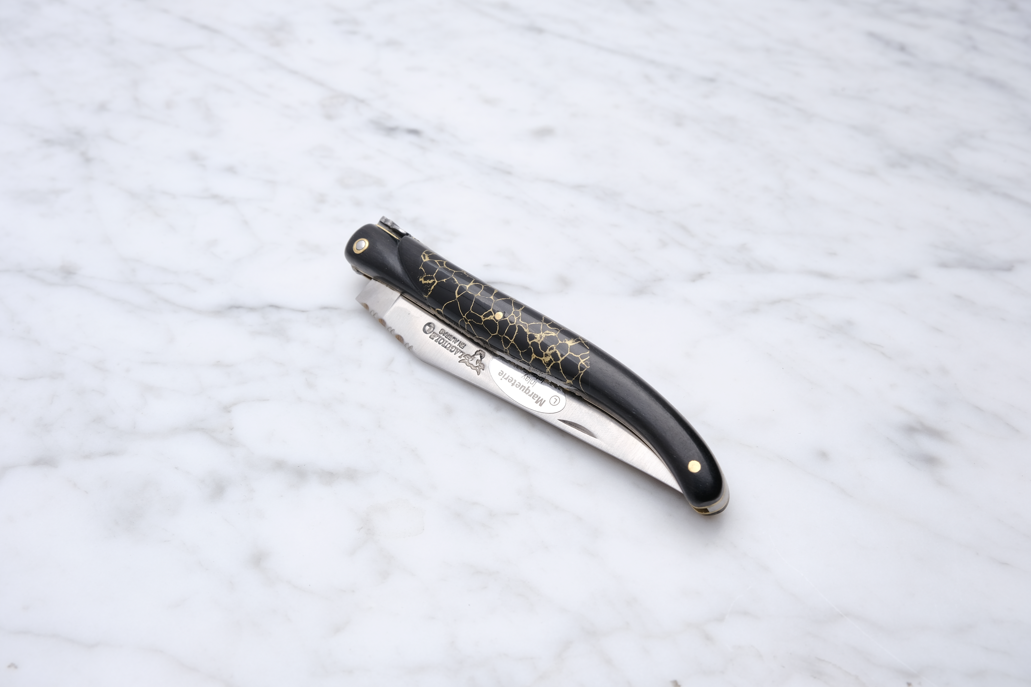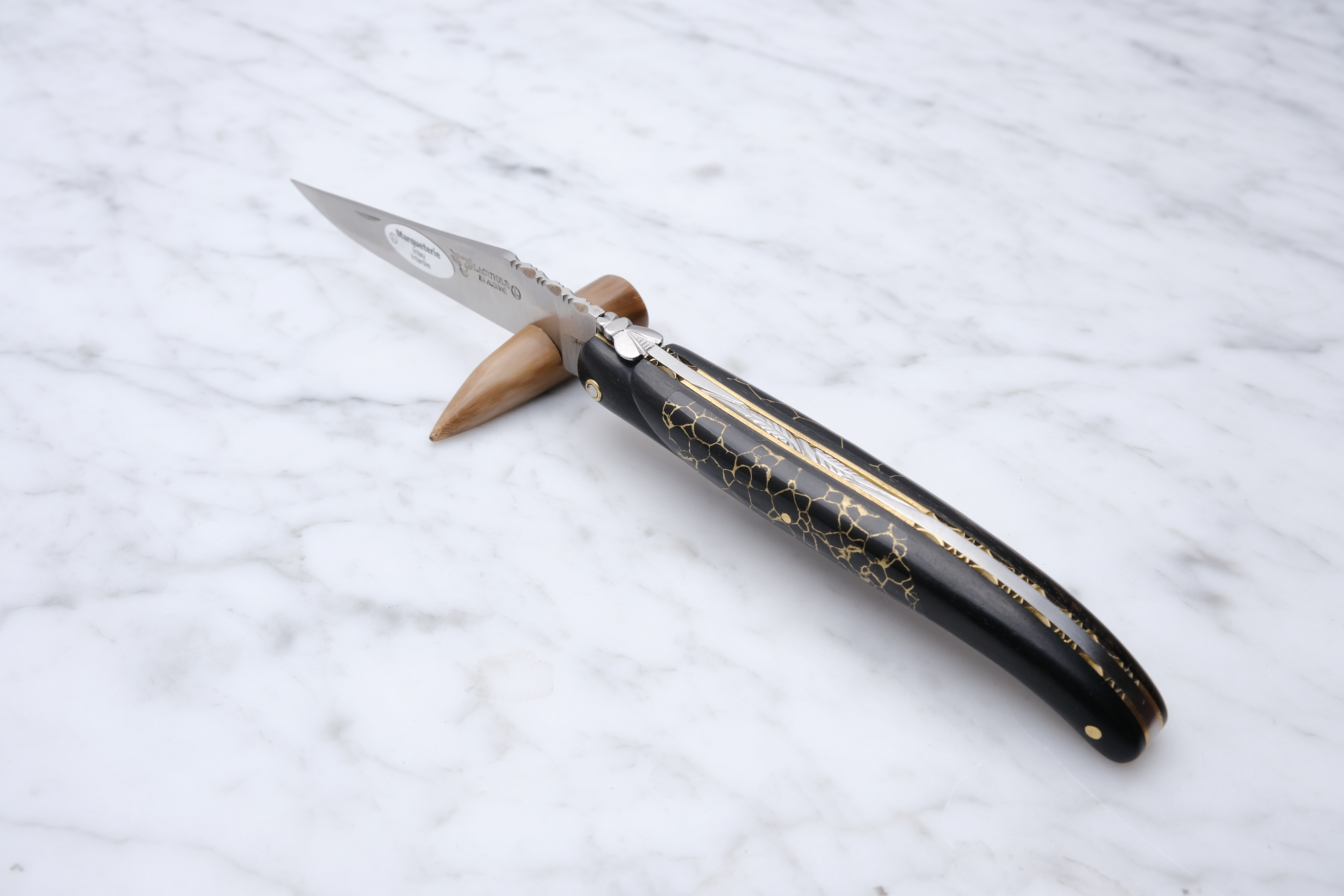 Laguiole Foldekniv 12cm. - Ibenholt M. Guld Indlæg