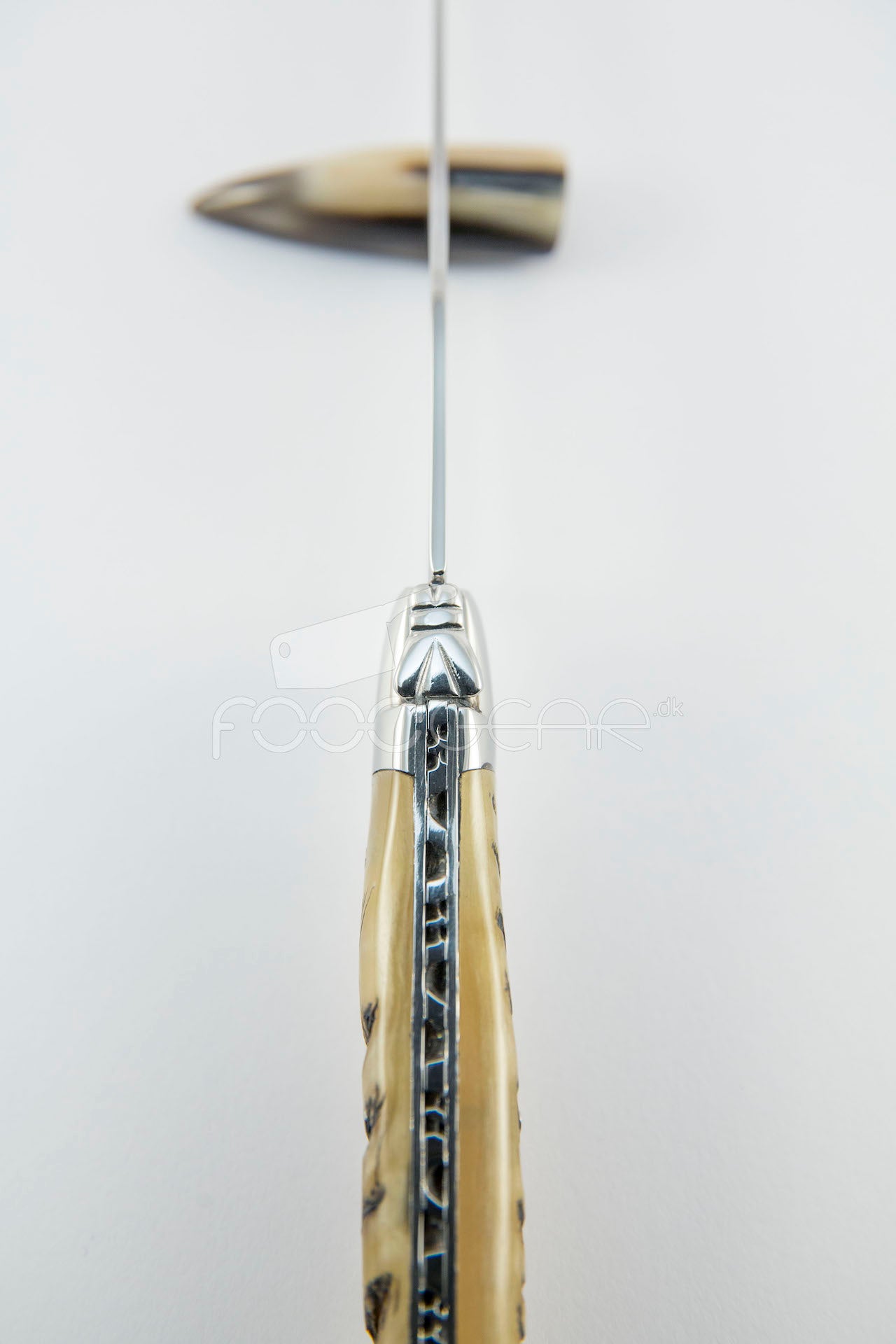 Blankpoleret steakkniv med skæfte af vædderhorn