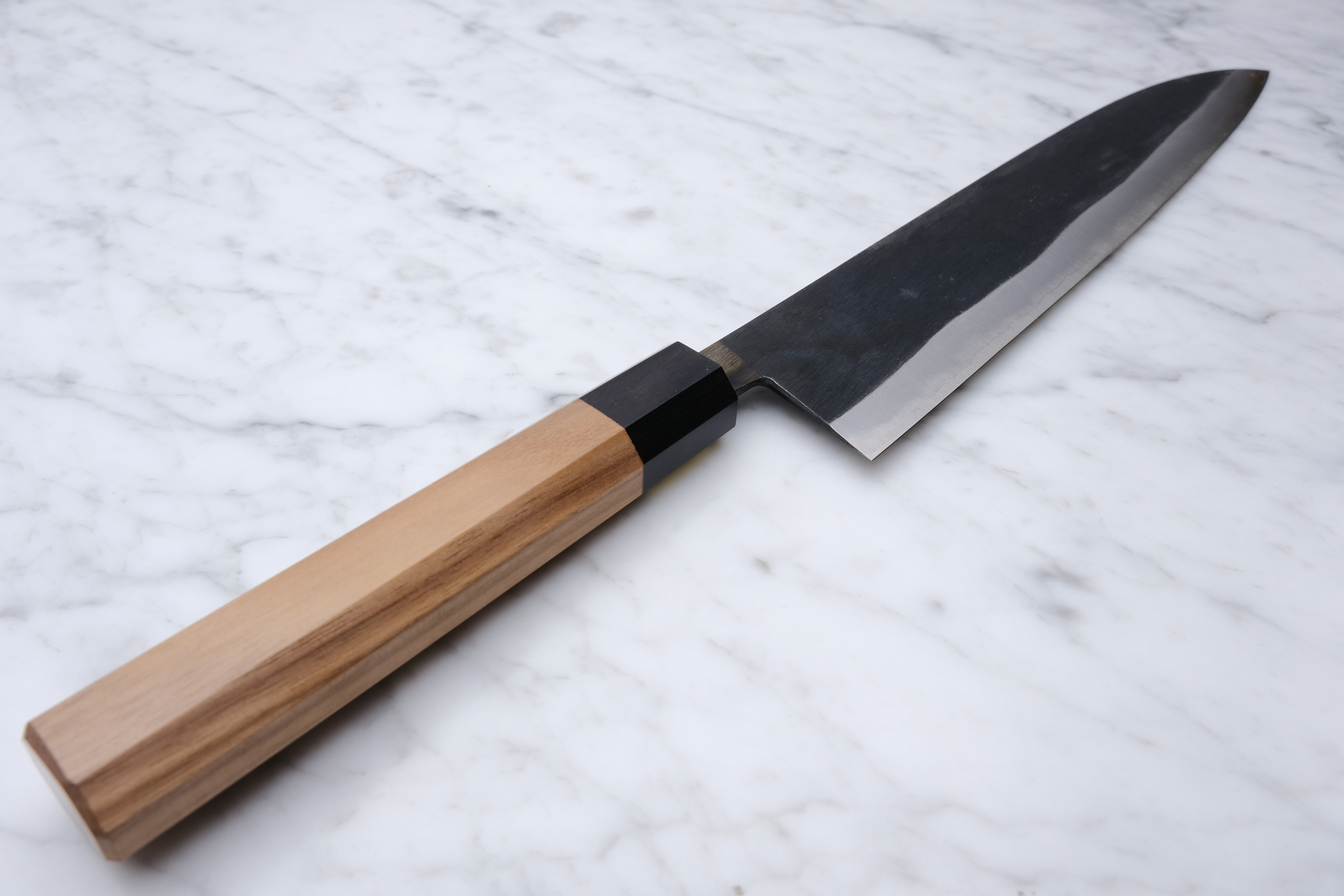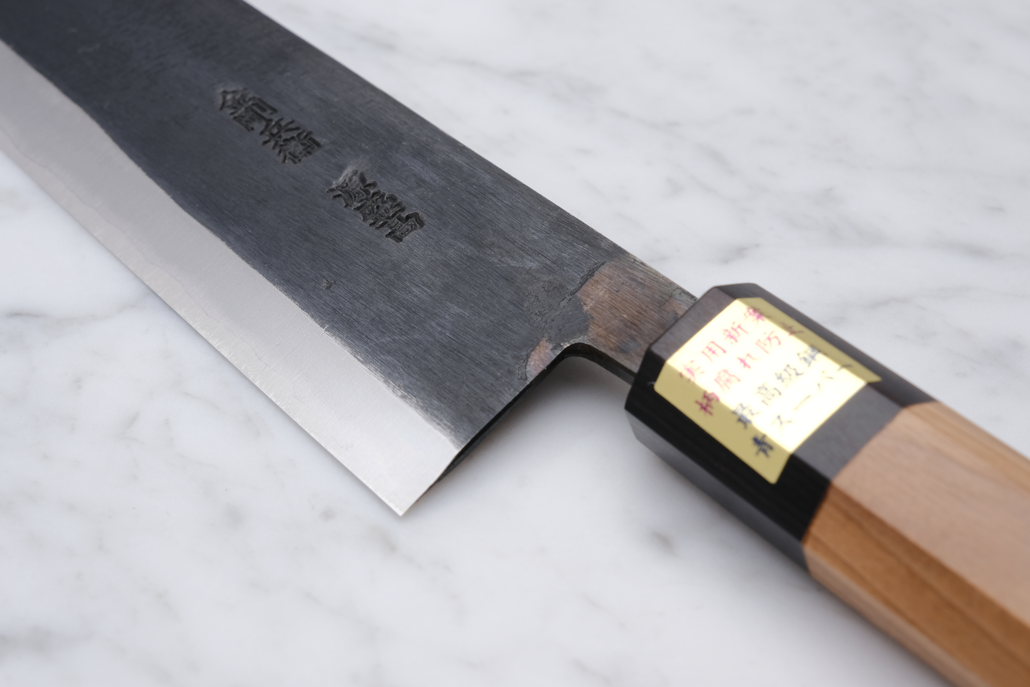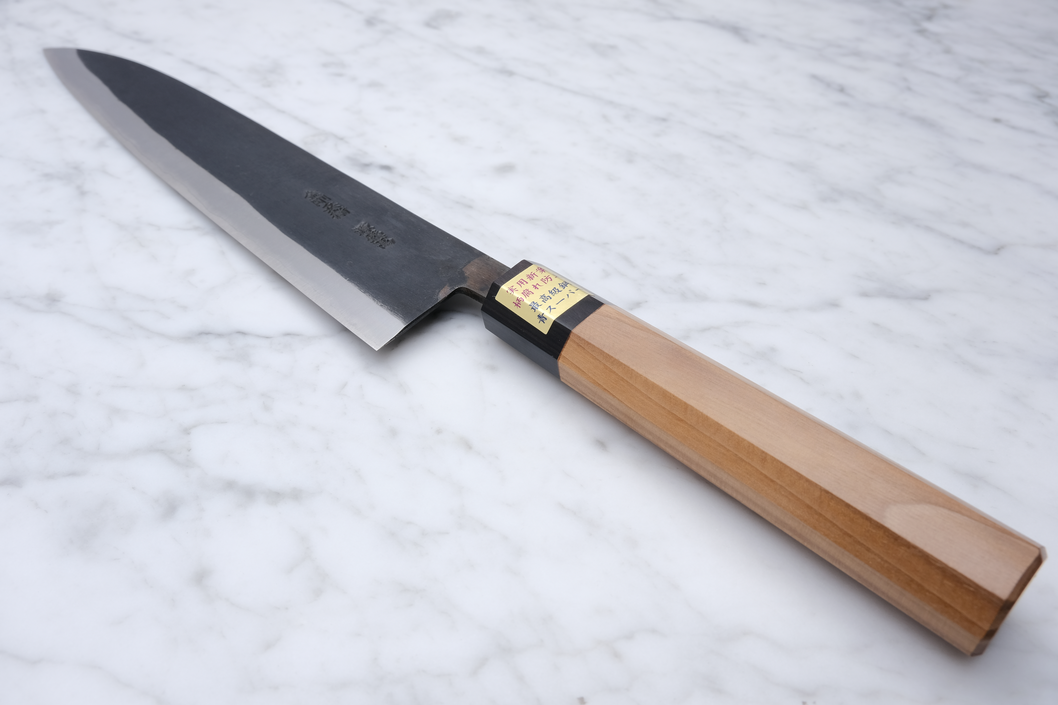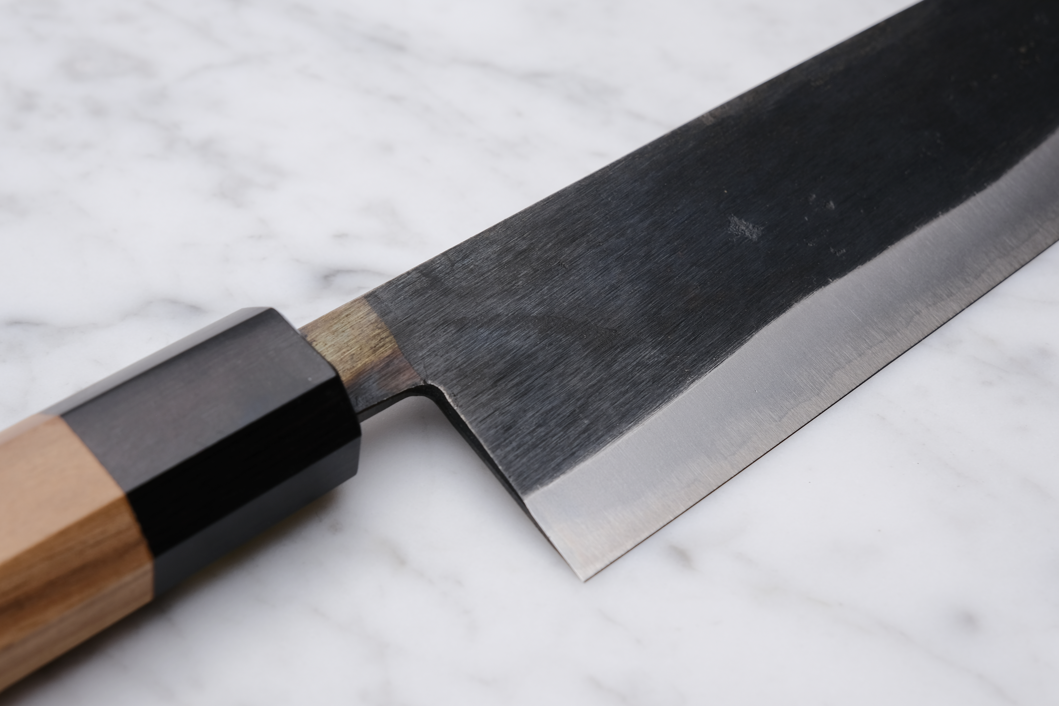 Kernestålet er som nævnt aogami-super. Aogami er kategorien af såkaldt blåt stål, og "Super" er den hårdeste af disse legeringer. Af samme årsag er det ikke en kniv, man bør tage chancer med ved at skære i alt for hårde emner. Knogler/, ben, brusk, frosne emner mv. er naturligvis bandlyst.