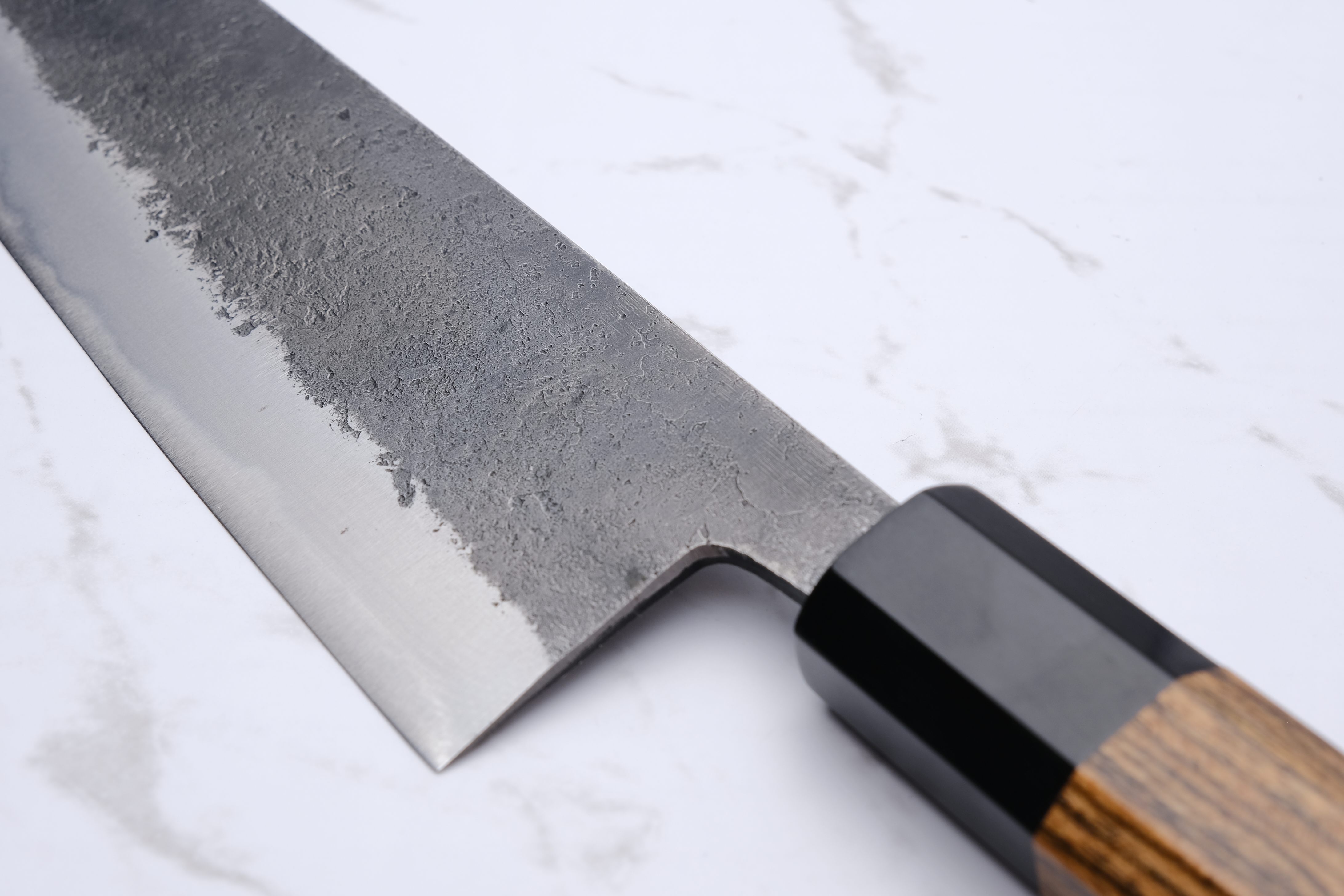 Fit'n Finish på knivene er rustikt da det er vigtigt for Kouichi-san at knivene kan tåle at blive brugt og derfor er det hærdningen og slibningen der er prioriteret højt.