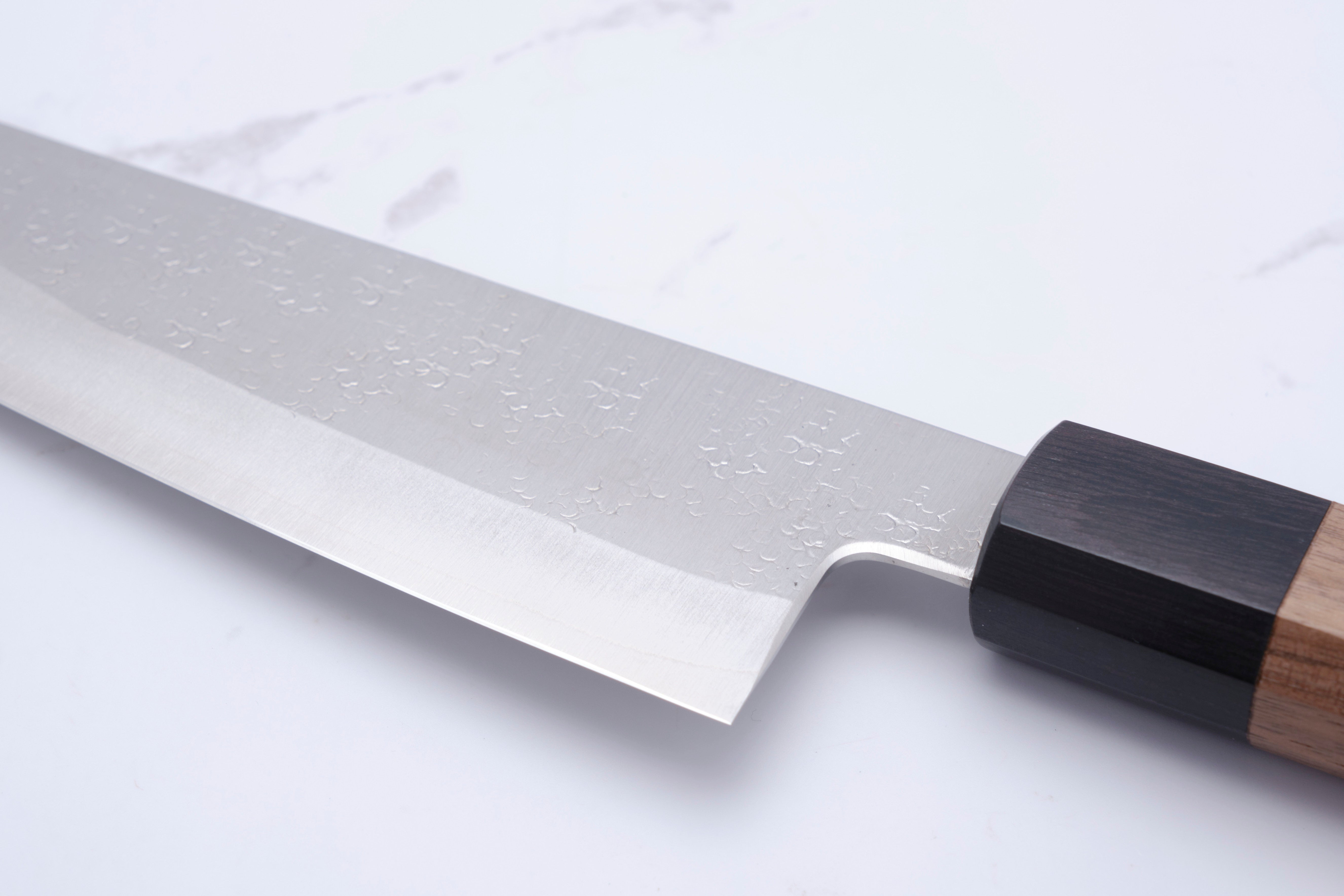 Gin-3 stål er kendt for sine fremragende egenskaber, der kombinerer fordelene ved rustfrit stål med de skarpe egenskaber fra carbonstål. Med 13% krom i sammensætningen, er denne kniv både let at slibe og modstandsdygtig over for rust, hvilket sikrer en langvarig skarphed. Okeya Bunka kniven er ideel til at skære i mindre stykker kød, fisk og grøntsager, hvilket gør den til et uundgåeligt redskab i ethvert køkken.