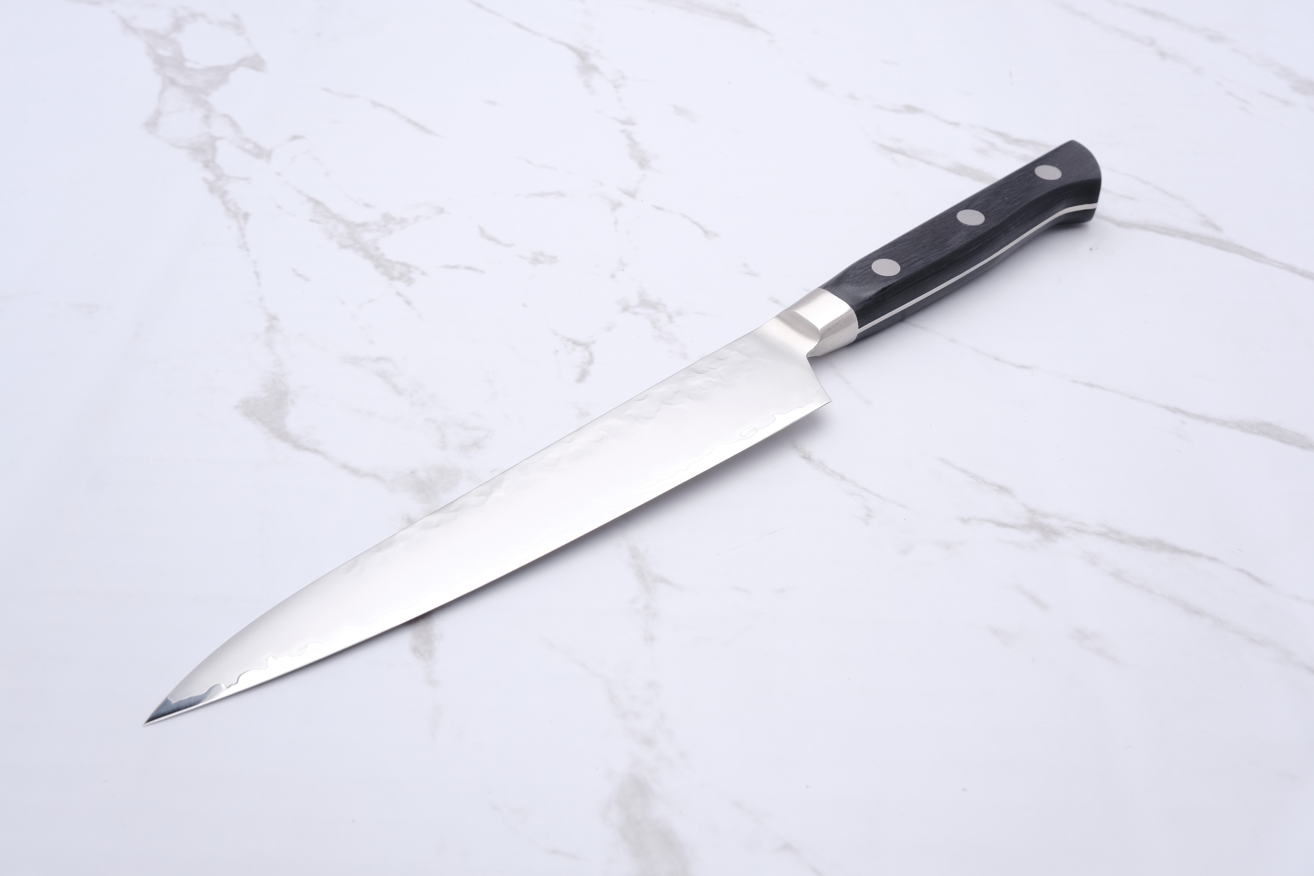 Kniven må aldrig vaskes i opvaskemaskine, må ikke skære i hårde emner såsom ben, brusk, knogler og frosne emner samt hårde oste. Husk, at en det er en egenskab ved tyndt, hårdt metal, at det kan brække.