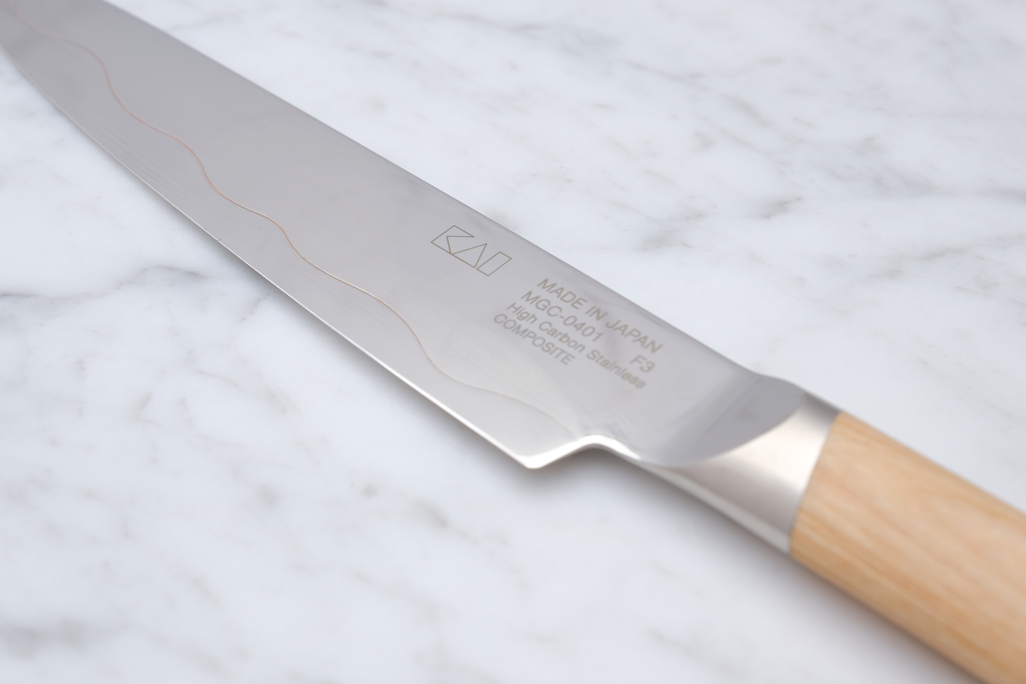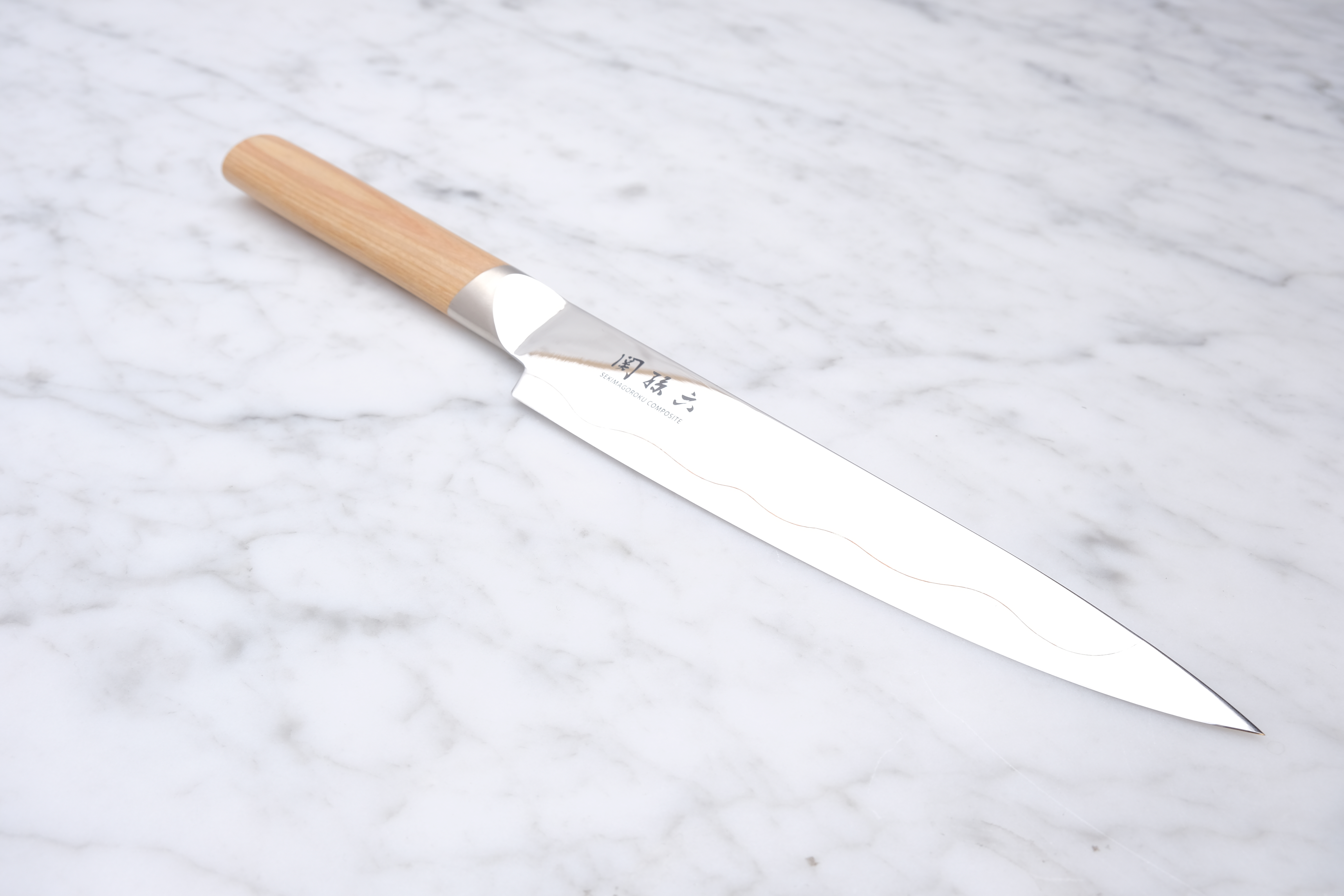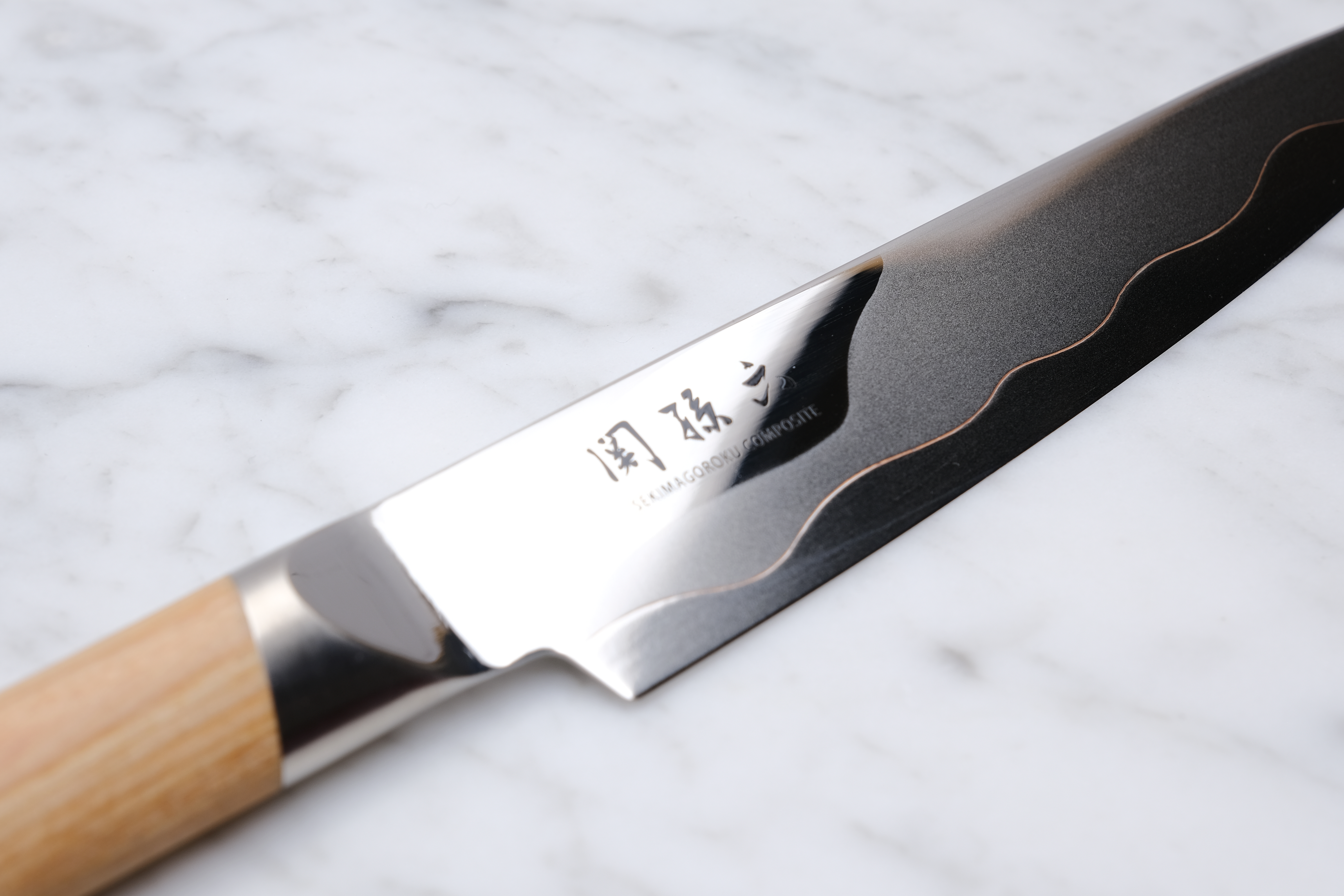 kompositbladet består af to forskellige typer stål der er lamineret med kobber. Dette giver en smuk kobbertråd, der løber ned gennem bladet på kniven. Det resulterende udseende er imponerende og gør klingen til et højdepunkt inden for højteknologisk teknik. I kombination med det lyse træhåndtag fremstår serien futuristisk, let og sofistikeret. Ud over det sikrer VG10 stålet ultimativ skarphed og en ekstraordinær samlet ydeevne.