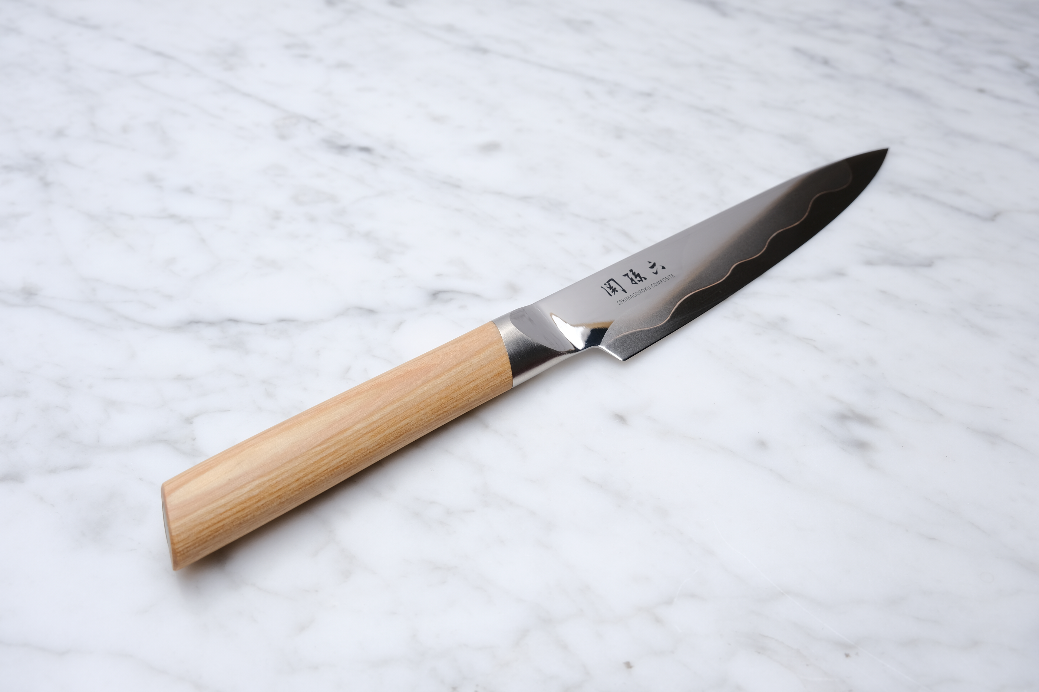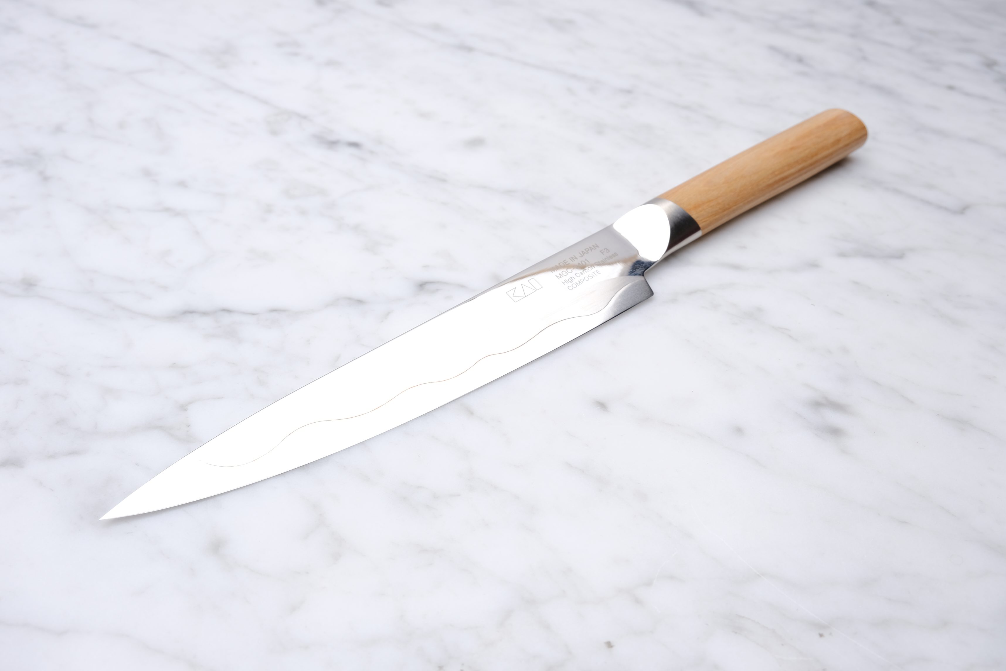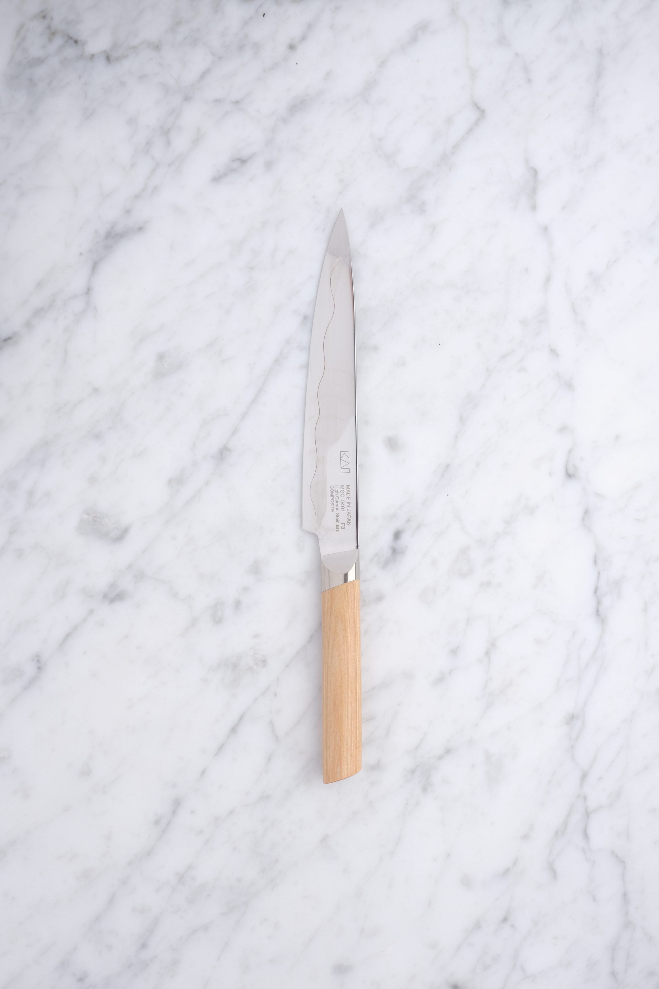 kompositbladet består af to forskellige typer stål der er lamineret med kobber. Dette giver en smuk kobbertråd, der løber ned gennem bladet på kniven. Det resulterende udseende er imponerende og gør klingen til et højdepunkt inden for højteknologisk teknik. I kombination med det lyse træhåndtag fremstår serien futuristisk, let og sofistikeret. Ud over det sikrer VG10 stålet ultimativ skarphed og en ekstraordinær samlet ydeevne.