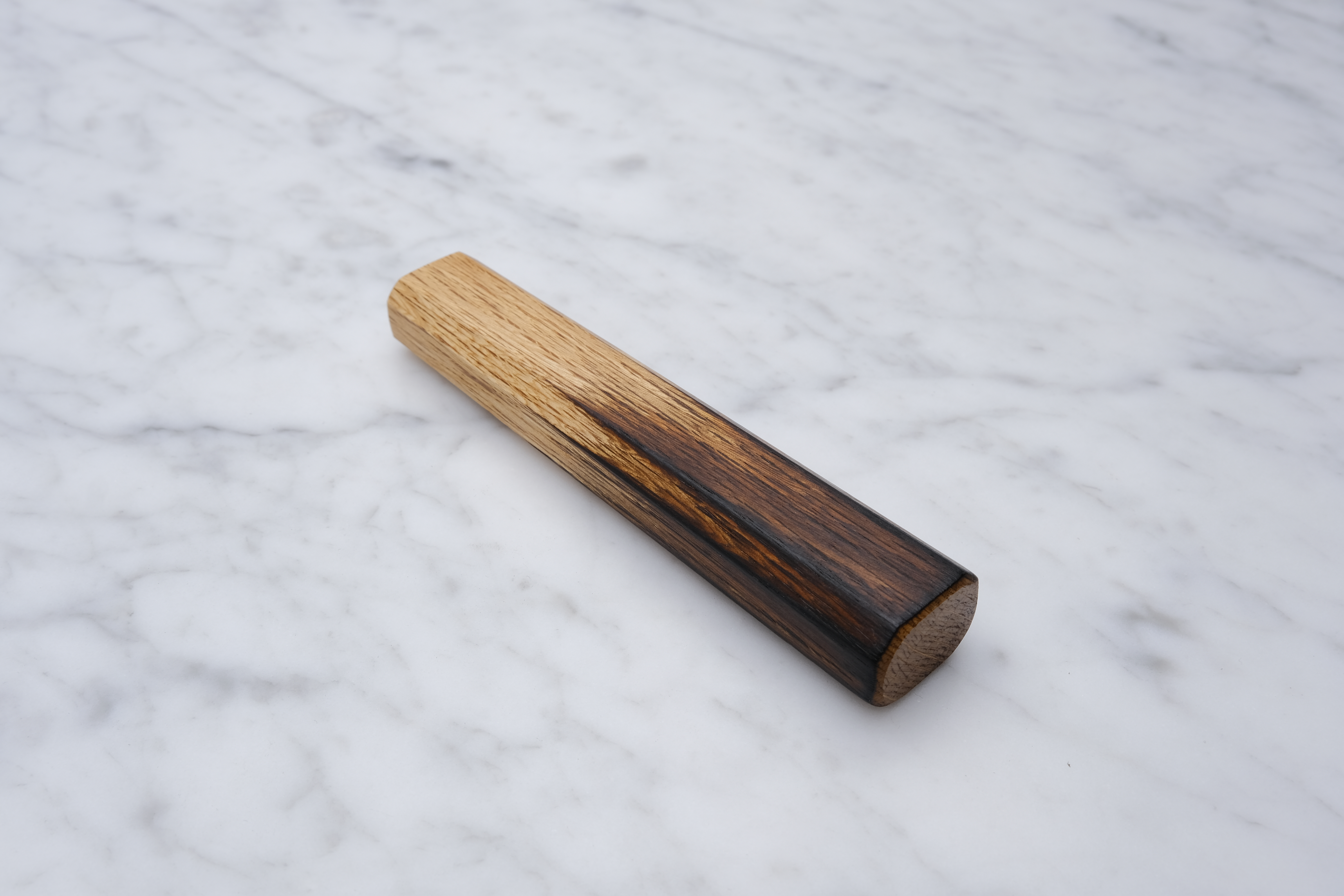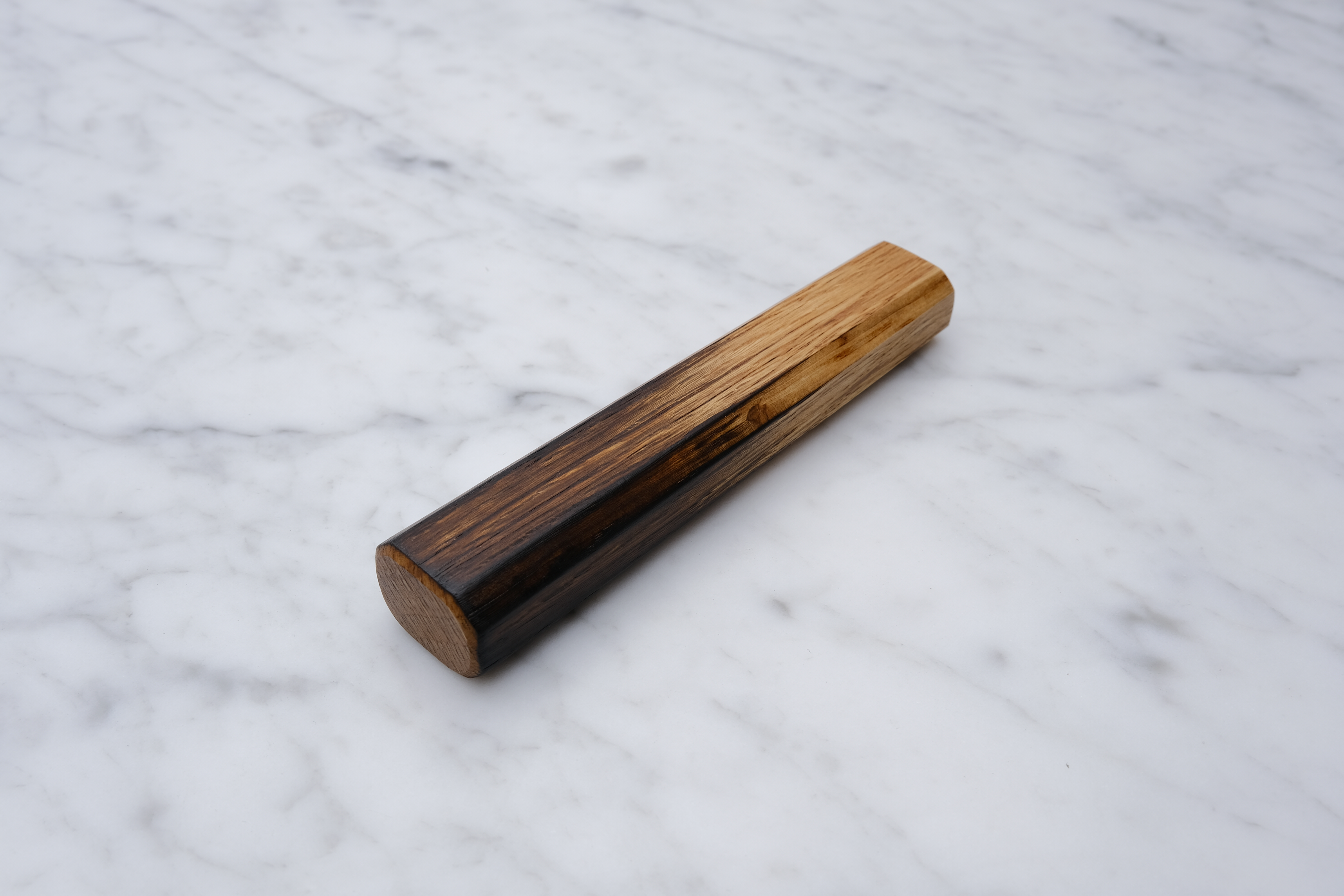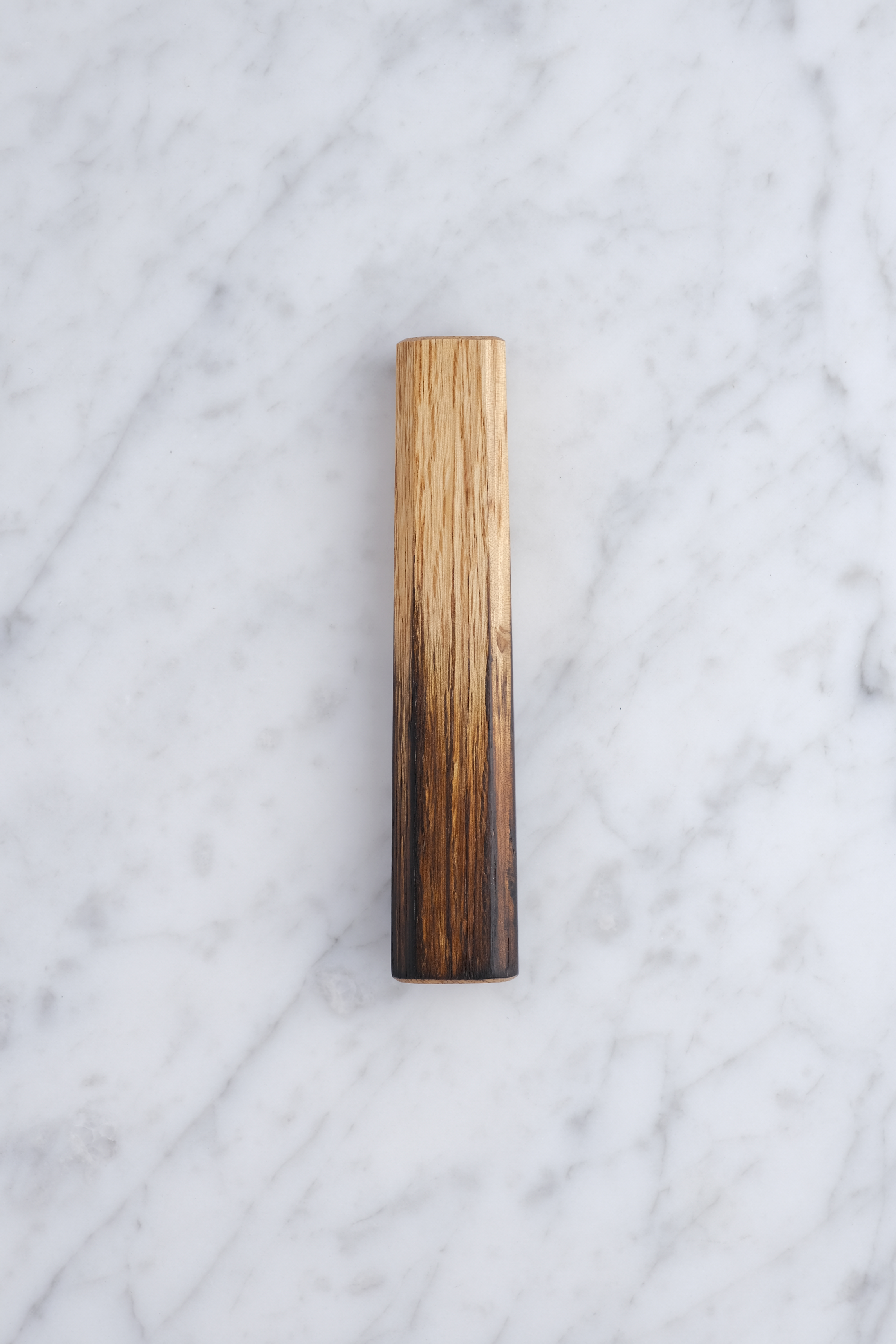 Håndtag i Egetræ med brændt overflade til mindre knive som petty'er