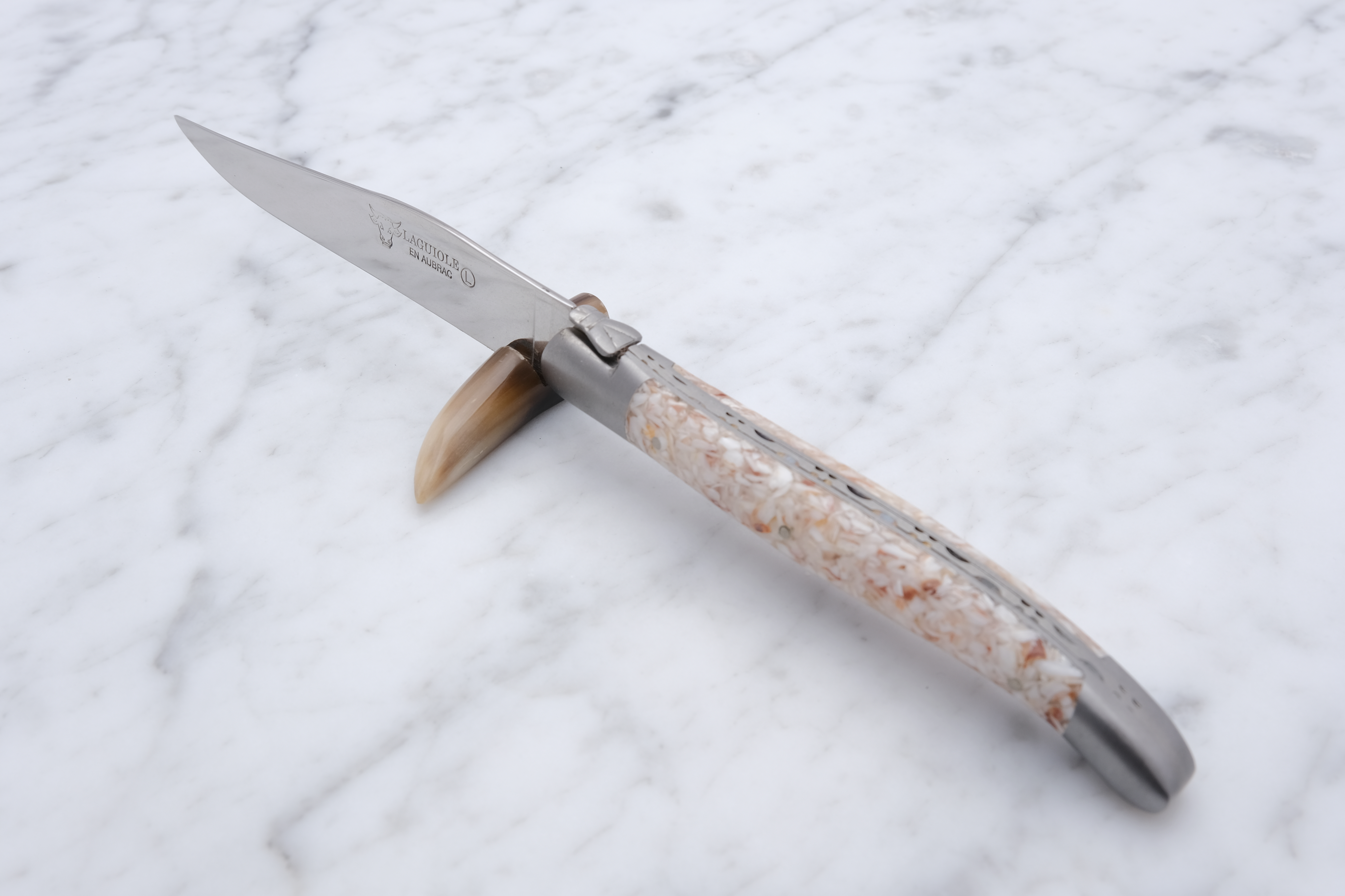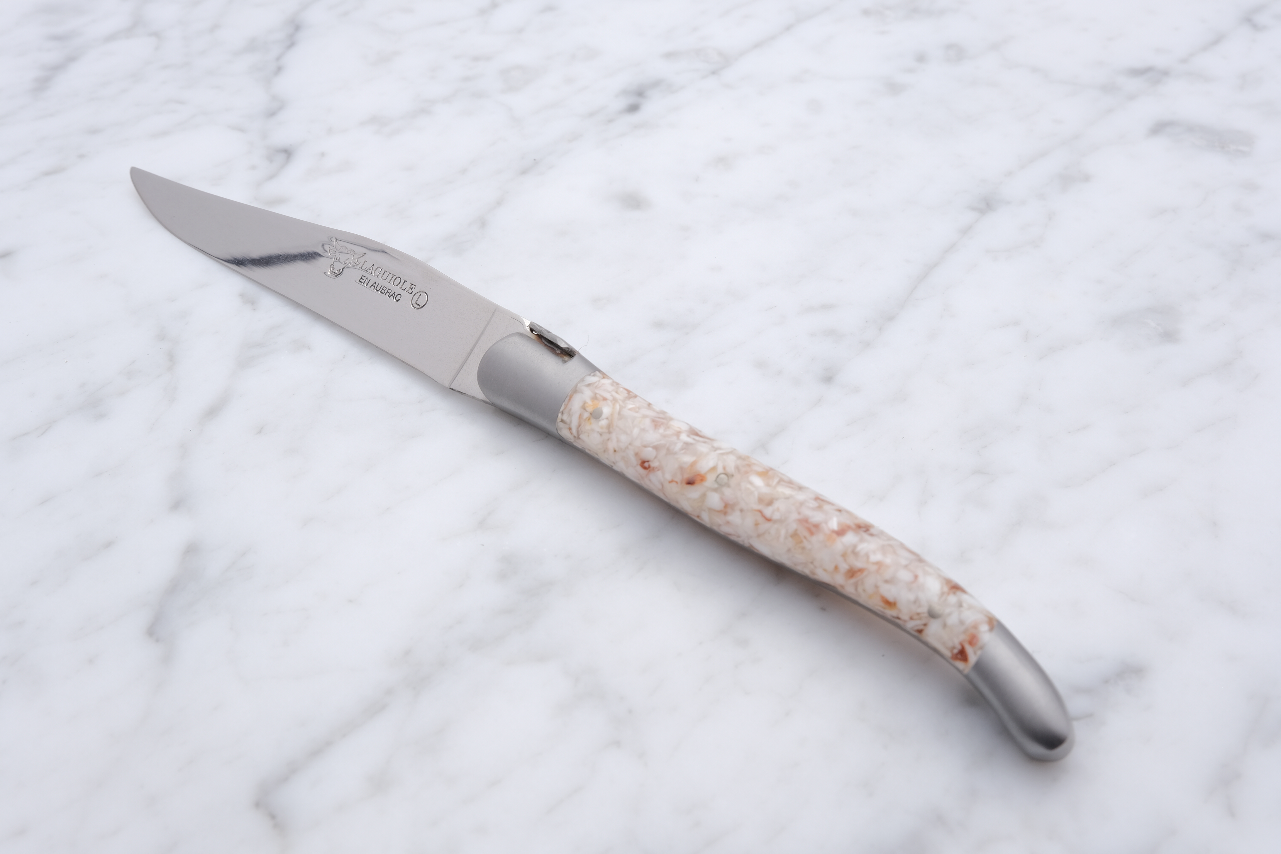 Knive fra Laguiole en Aubrac er fremstillet med naturmaterialer. Derfor vil den kniv du køber ikke nødvendigvis være fuldstændigt magen til den viste på billedet her.