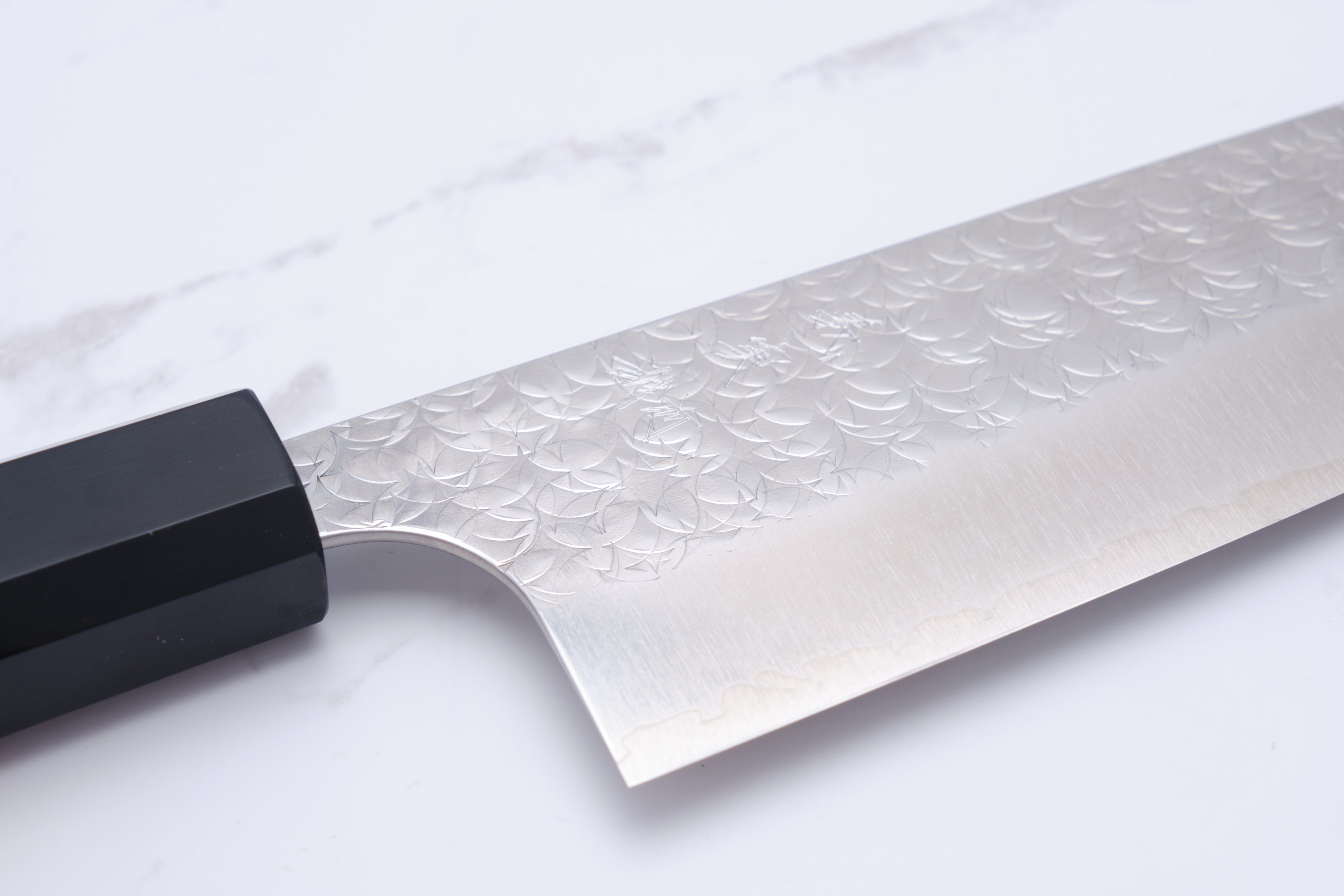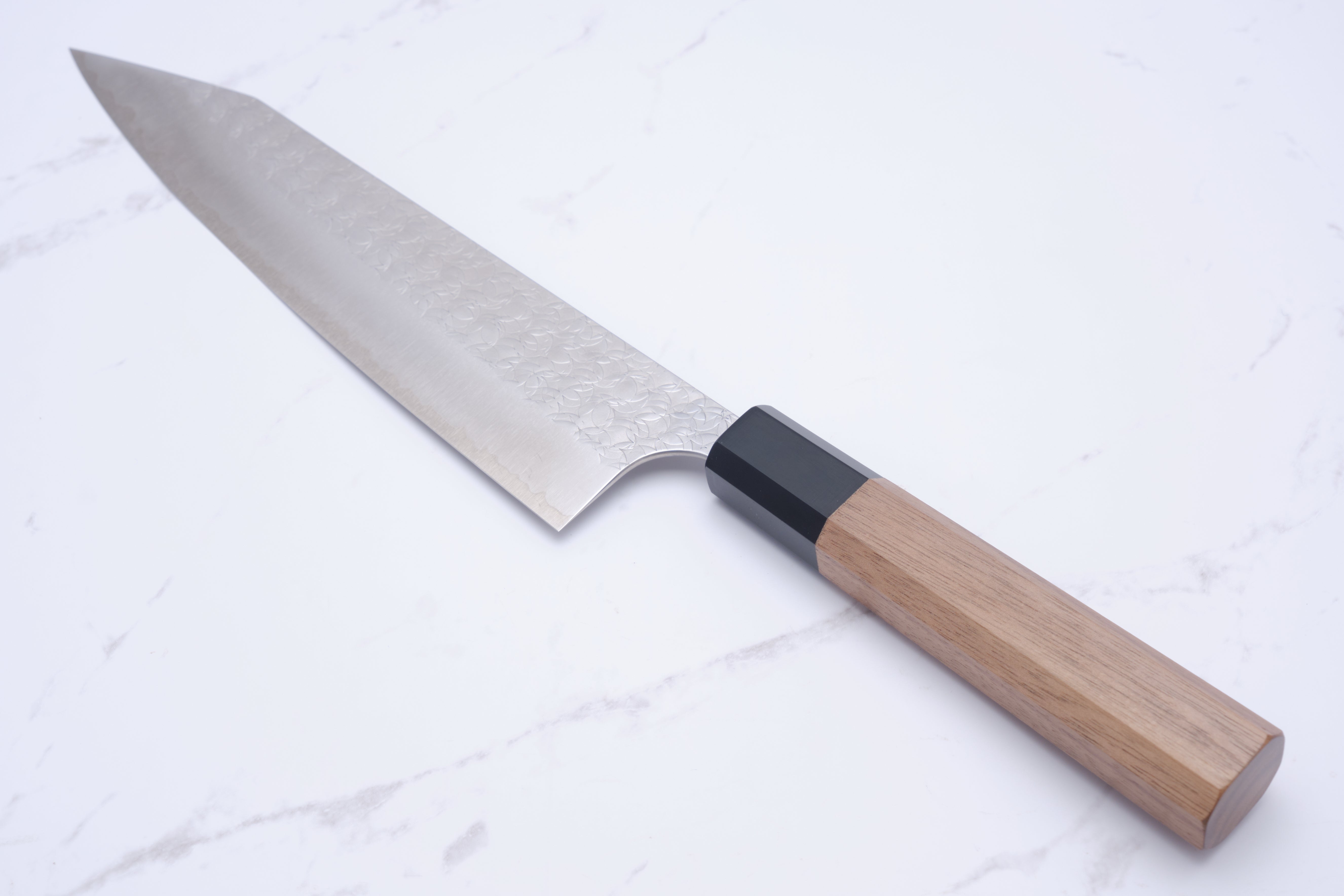 Kniven er en 210mm K-Tip Gyuto og er en 'all-around' kokkekniv, som kan bruges til kød, fisk og grøntsager.